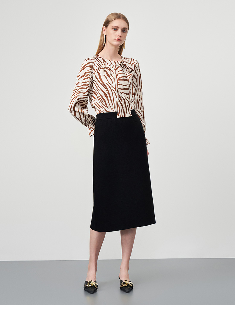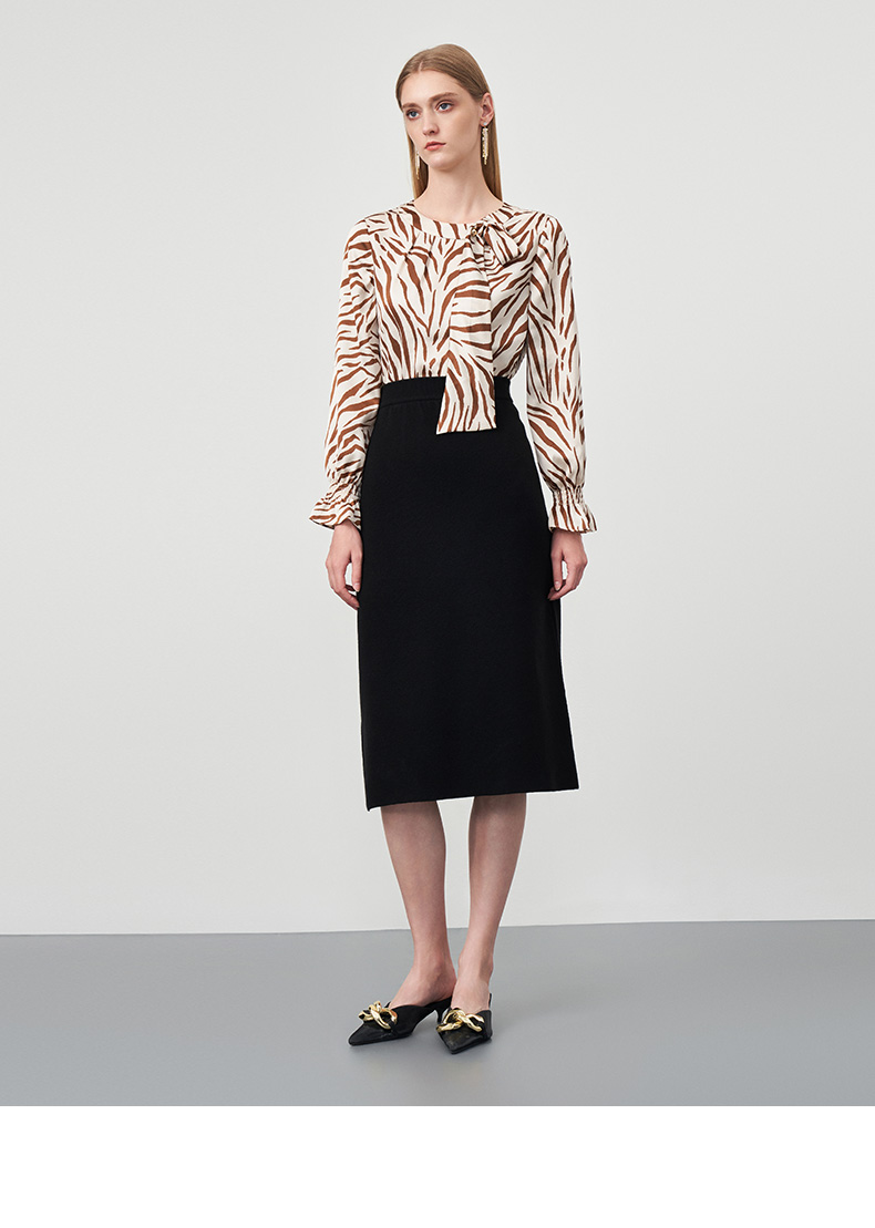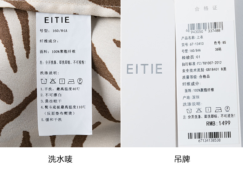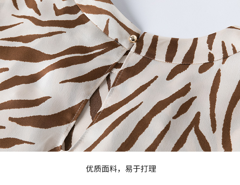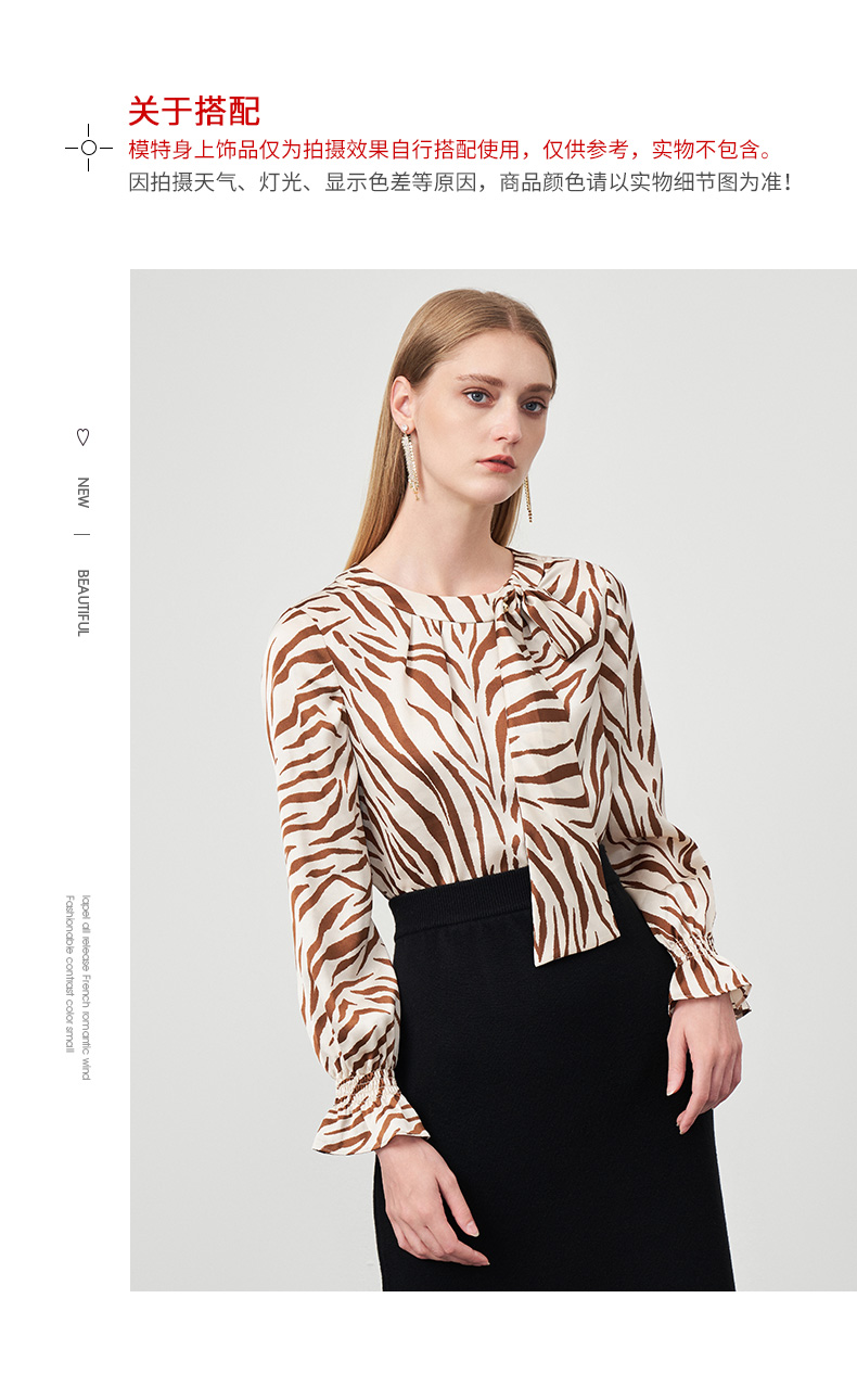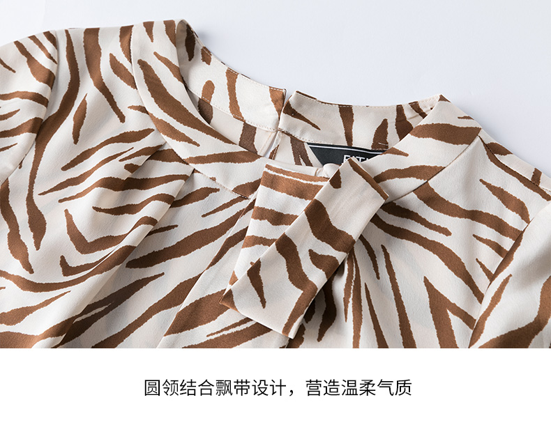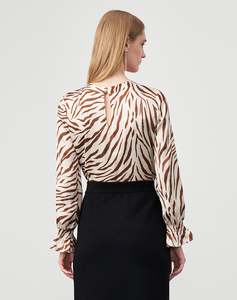 EITIE爱特爱秋季新款修身显瘦百搭印花松紧袖口衬衣上衣6713413
