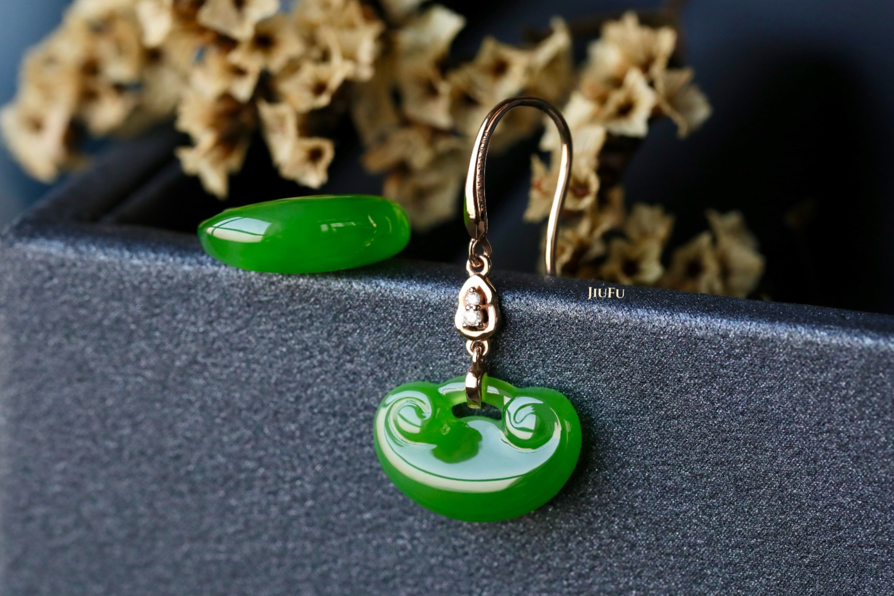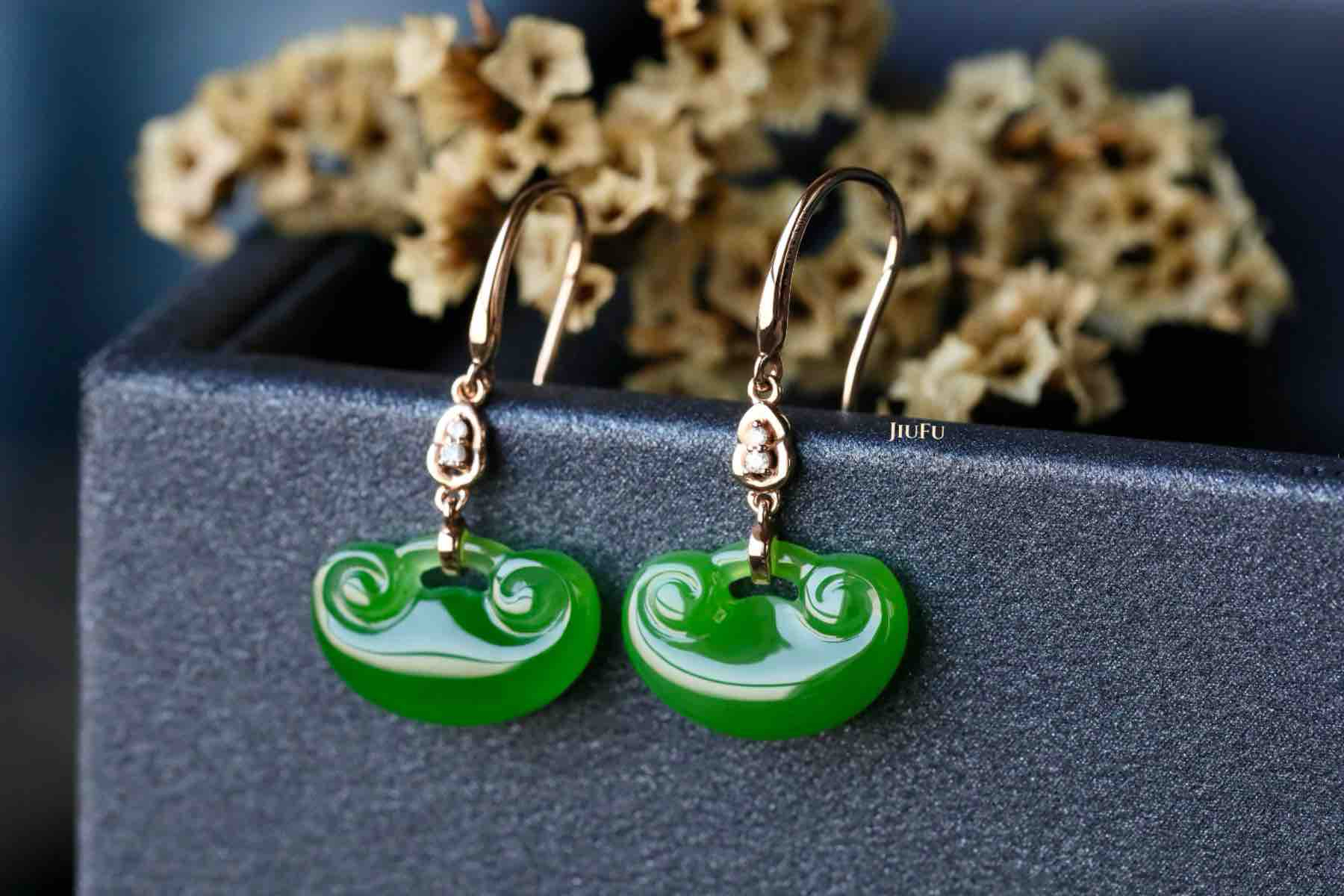 18K玫瑰金和田玉(碧玉)耳饰