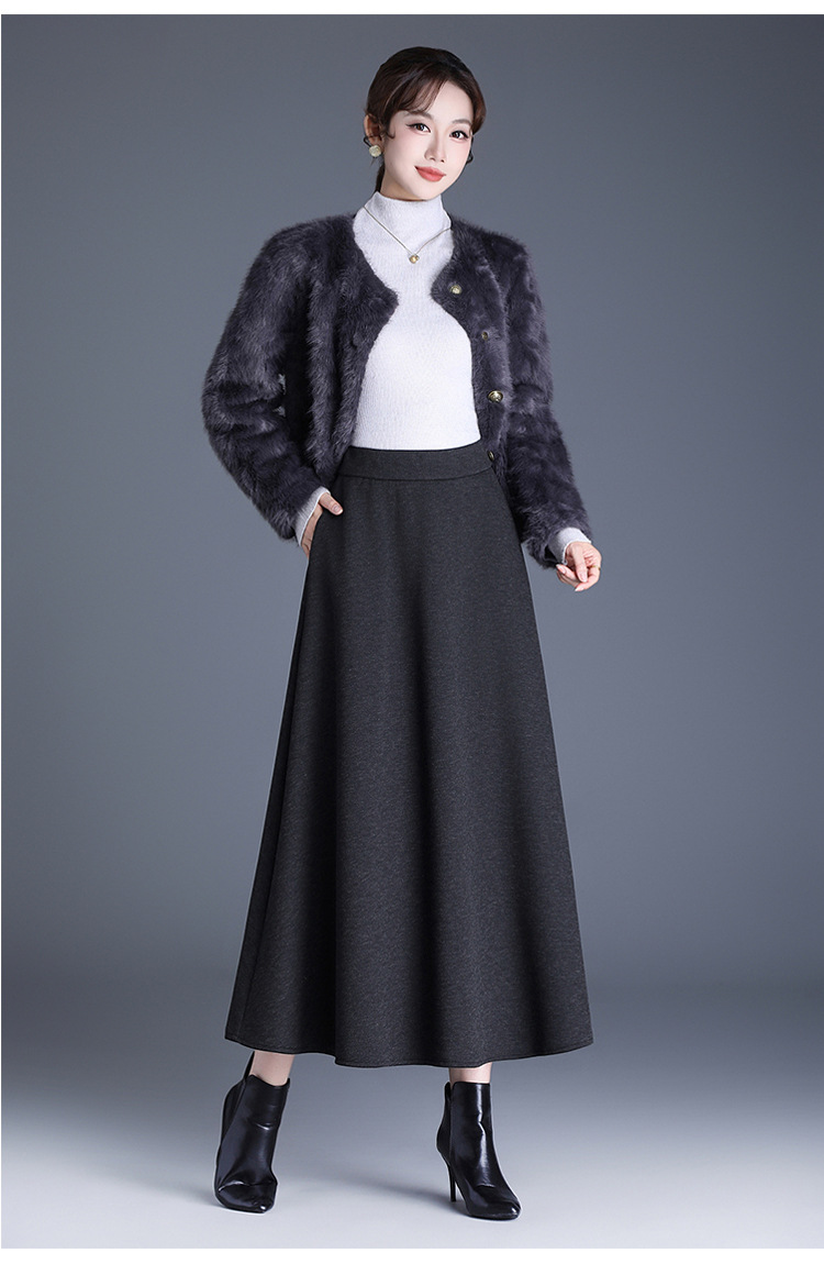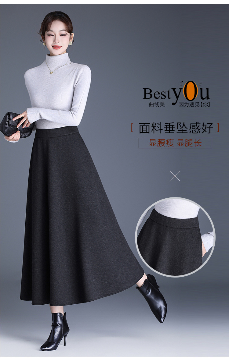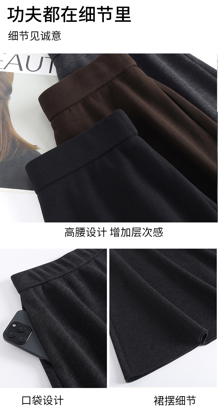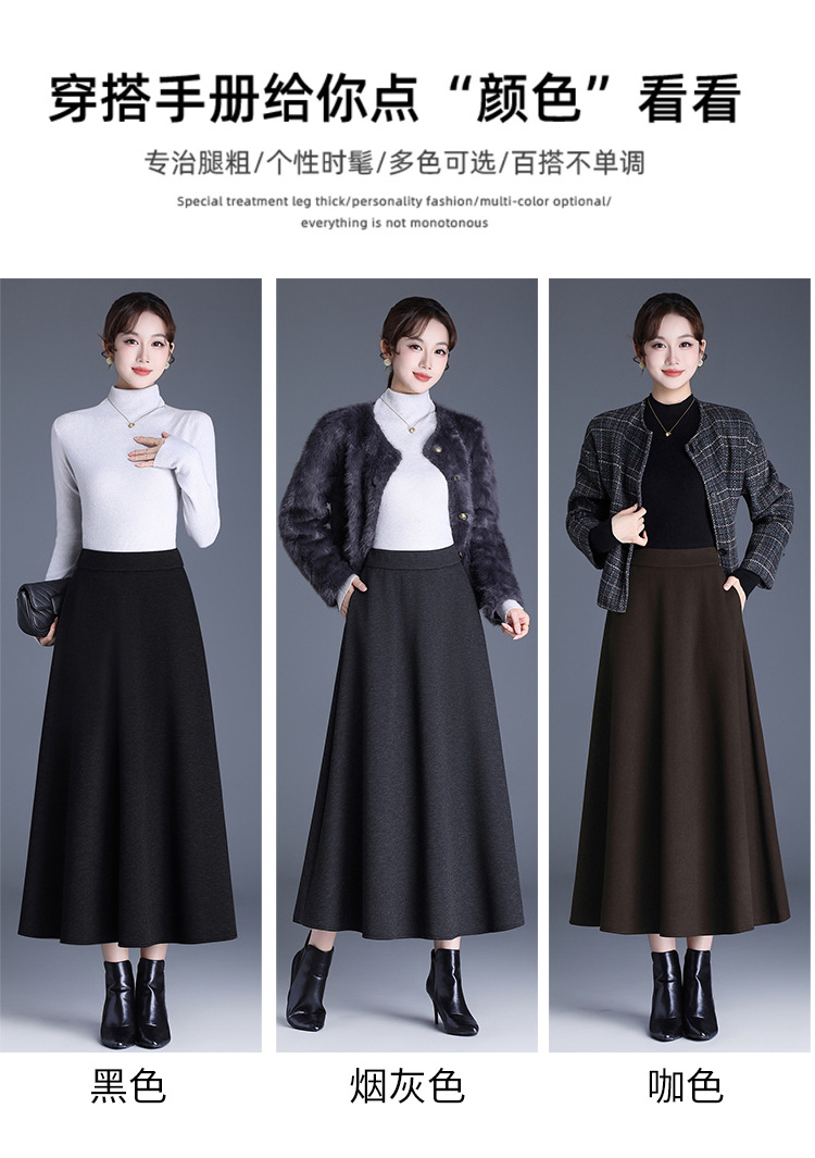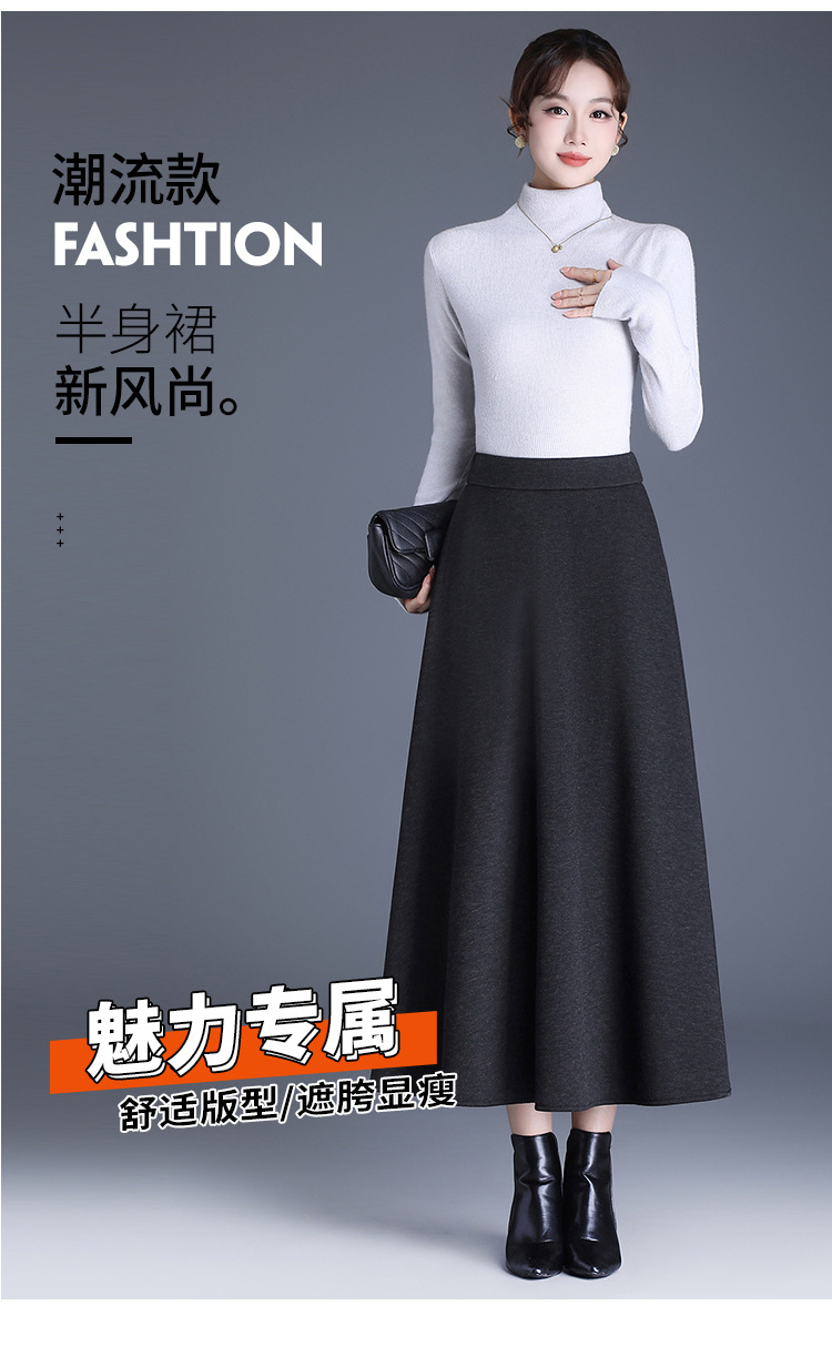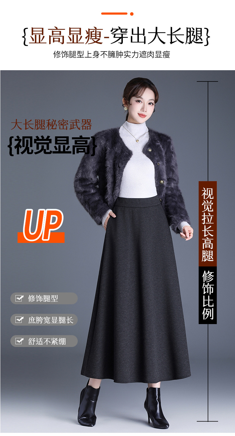 QYM 2568-Y高腰口袋A字裙中长款厚款半身裙