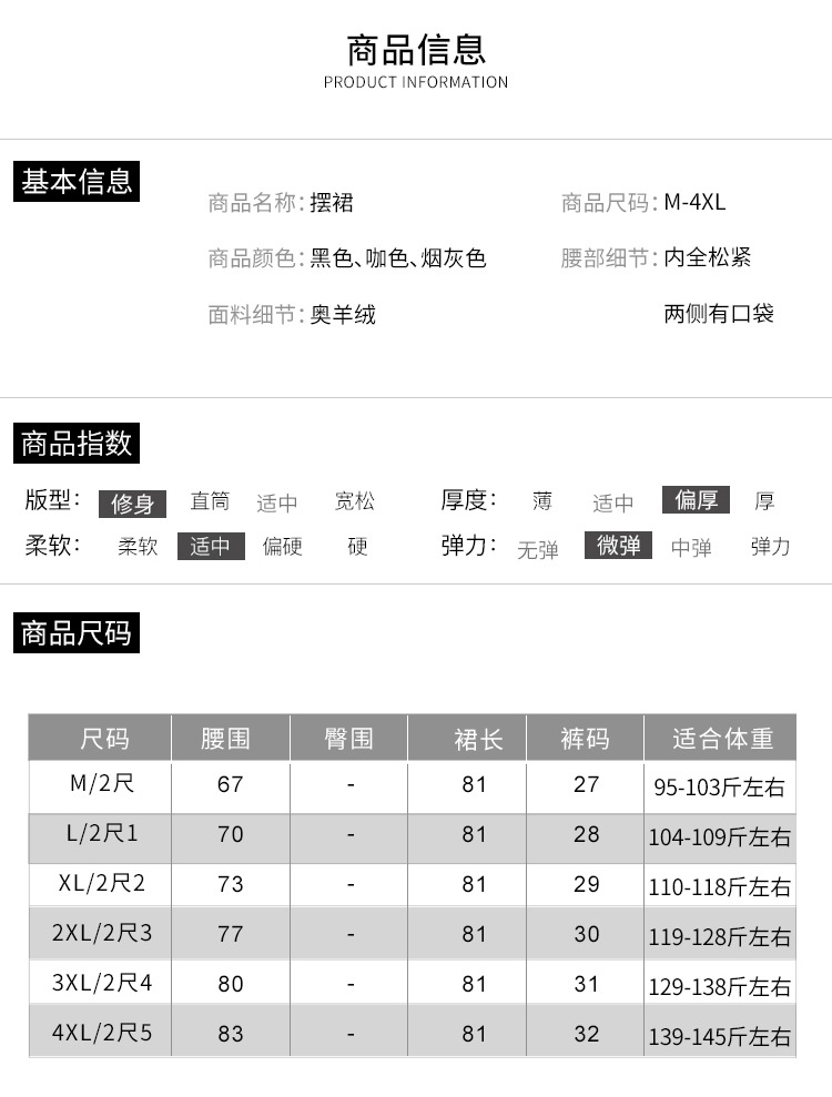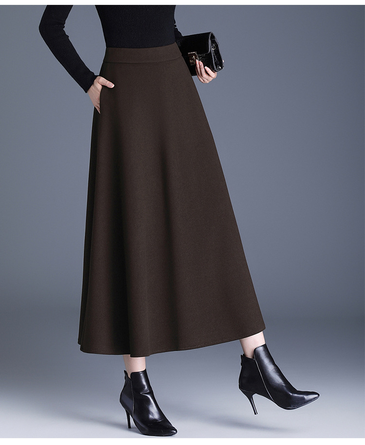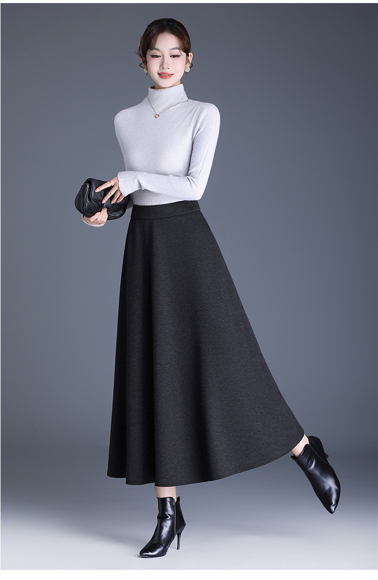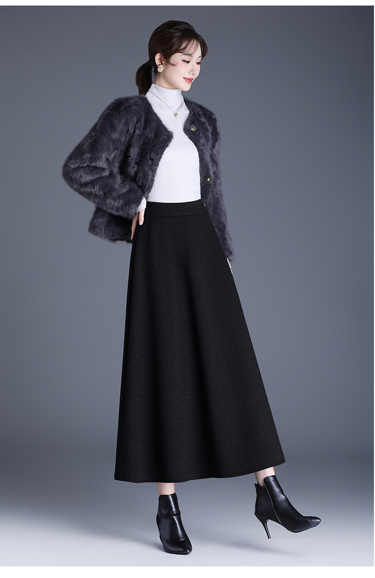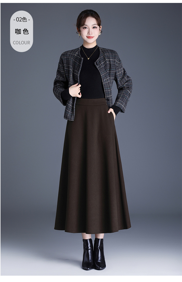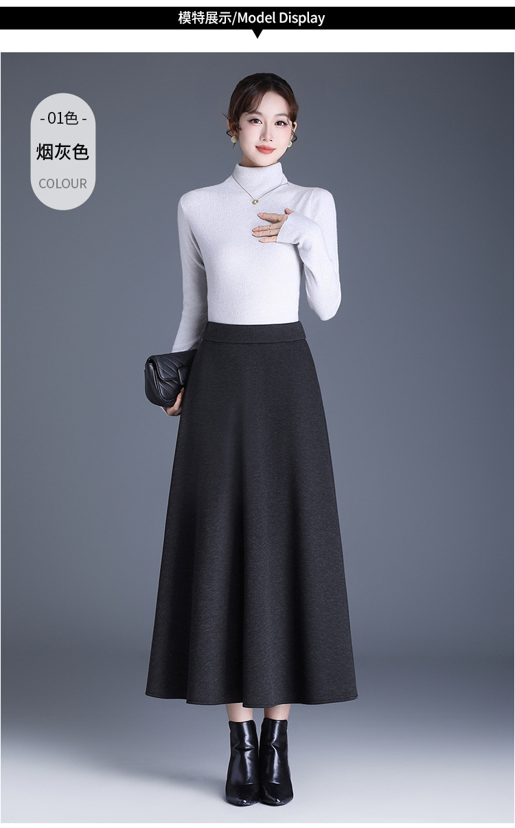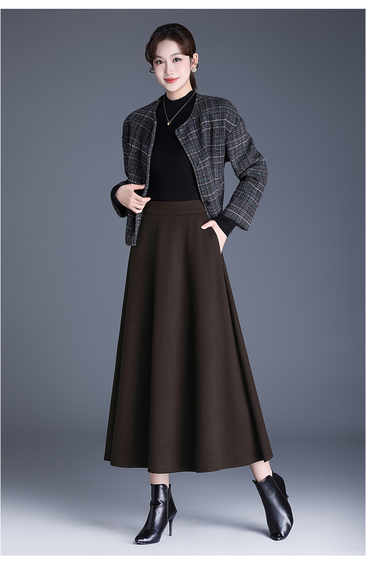 QYM 2568-Y高腰口袋A字裙中长款厚款半身裙