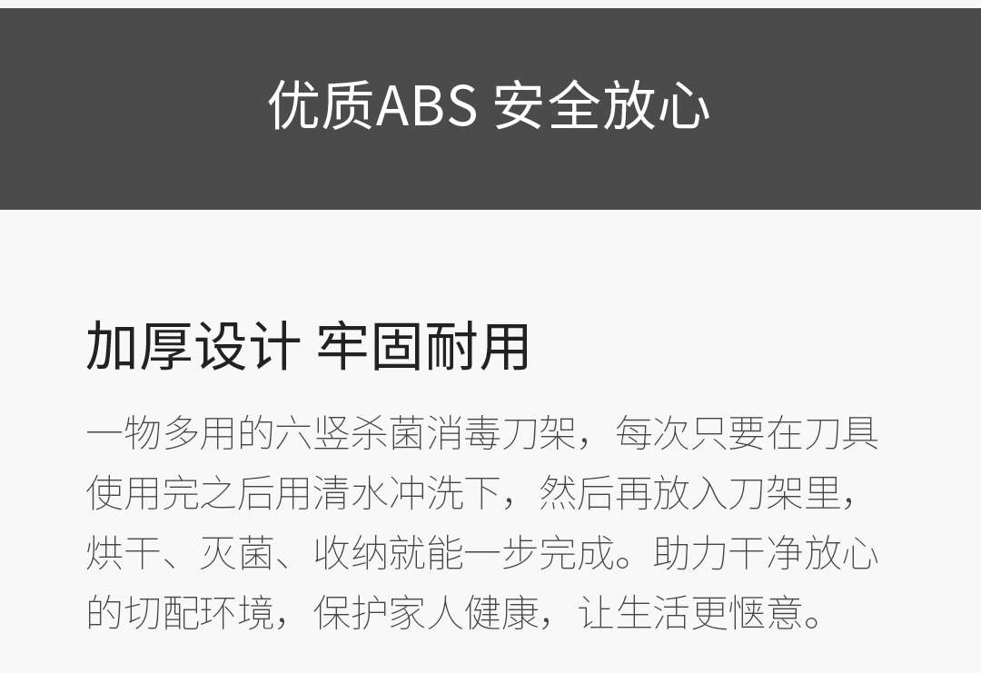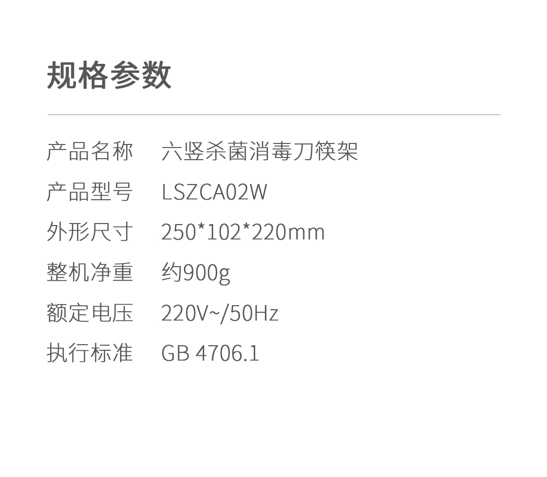 【品名】六竖杀菌消毒刀筷架 【整机尺寸】250*102*220mm 【整机净重】900g 【产品材质】ABS 【额定电压】220V~/50Hz 【额定功率】30W 【产地】无锡 【发货地】无锡 【发货快递】申通/韵达 【不发货区域】新疆、西藏、港澳台地区不发 【发货时效】48小时,节假日顺延 |