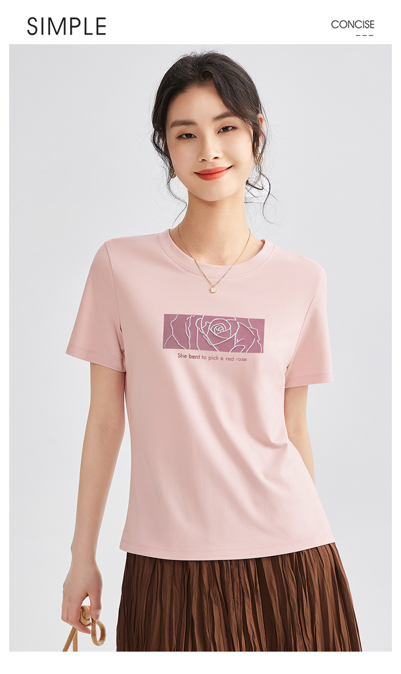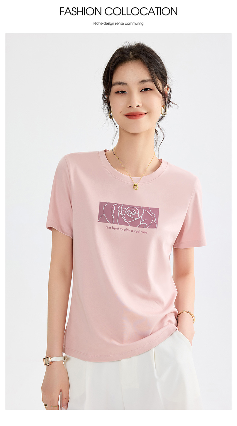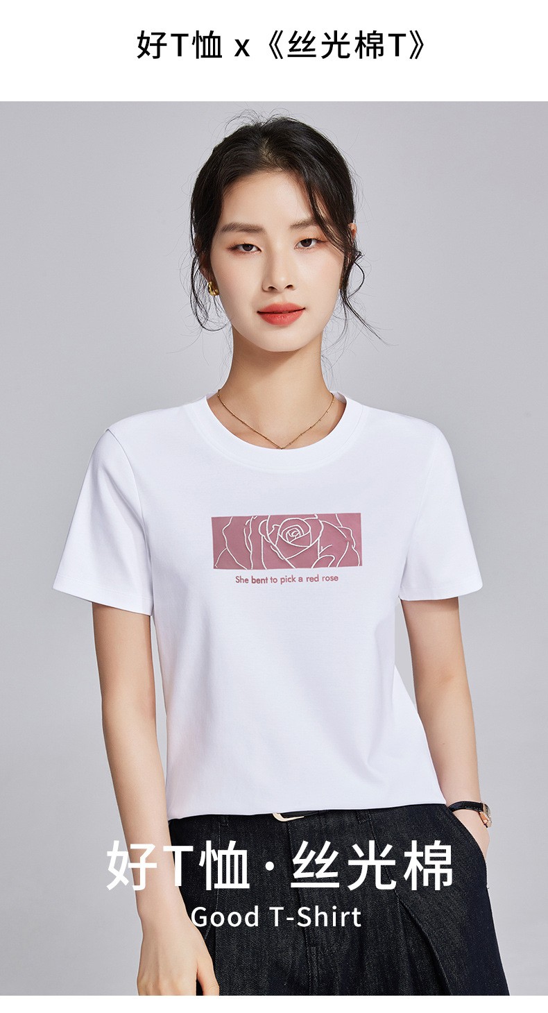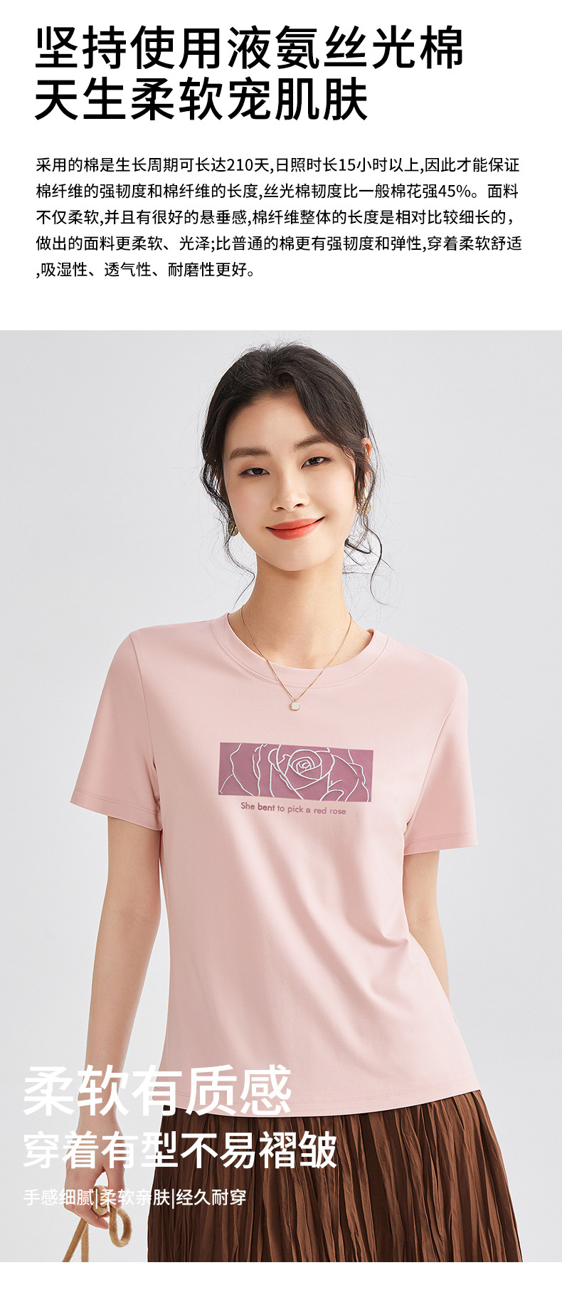 「自」全新升级【铂金会员109/天猫149/差价40】(04123)洛诗琳凉感液氨丝光棉T2025夏圆领正肩显瘦凉感休闲上衣
