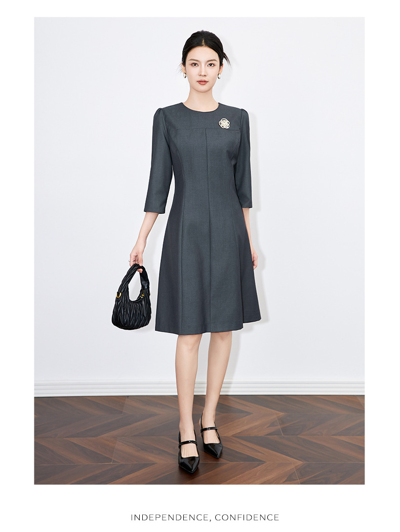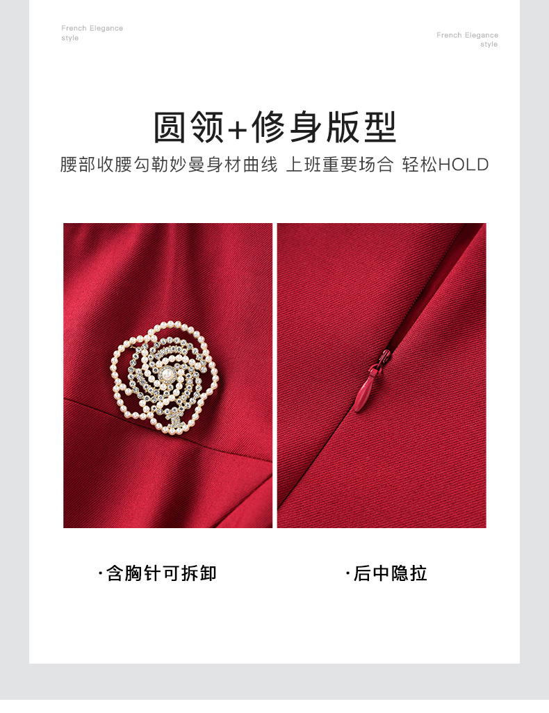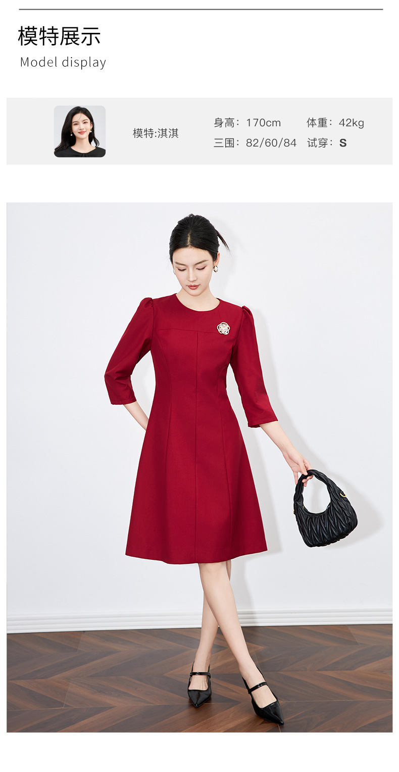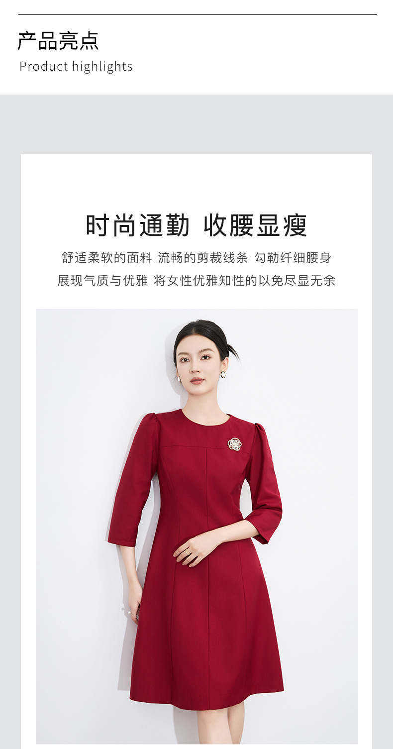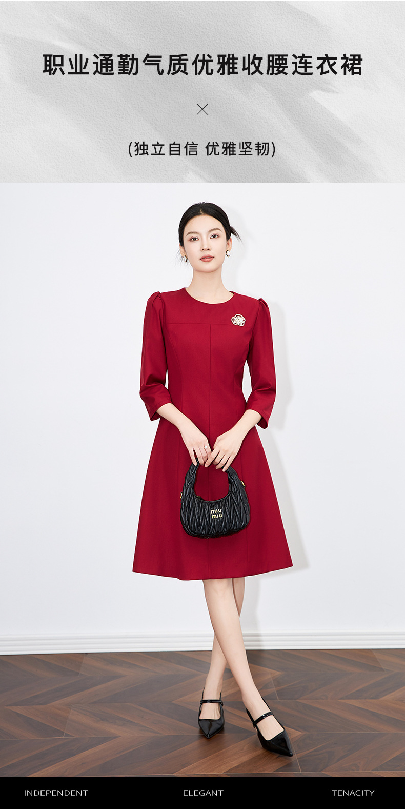 【高货wl】全新升级【铂金会员358/天猫479/差价121】(13110) 洛诗琳法式优雅通勤女神范七分袖收腰显瘦高级感连衣裙