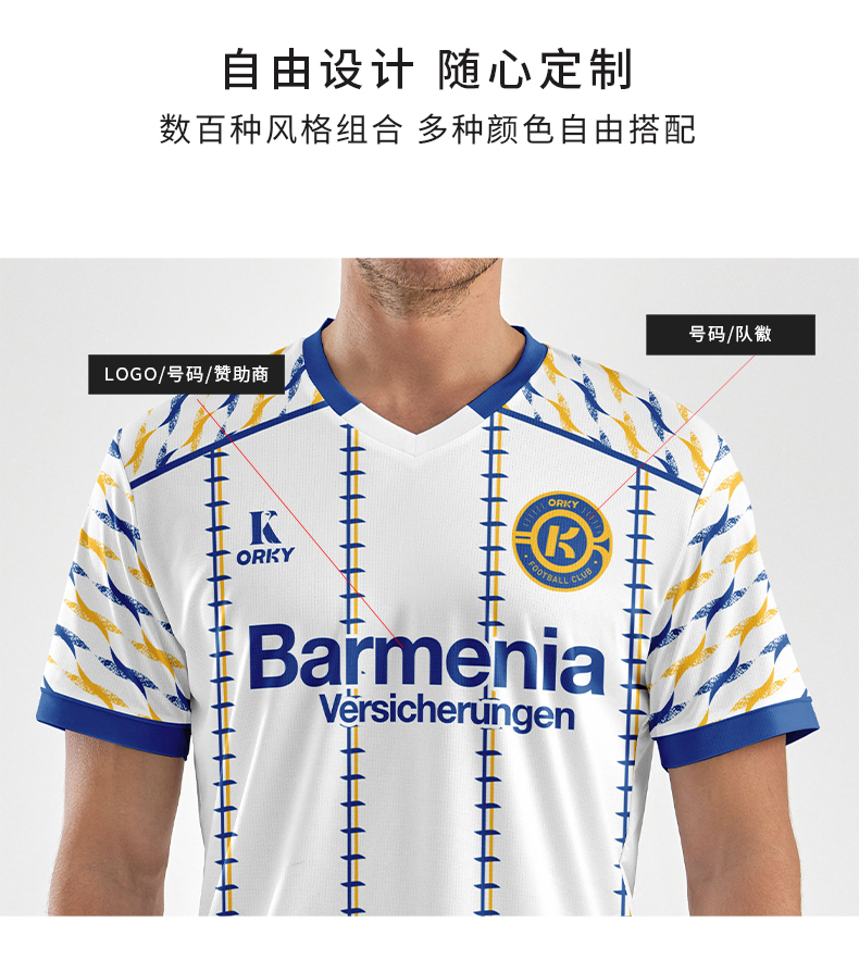 ORKY沃恺新品定制足球服套装男组队训练服成人短袖运动足球衣订制