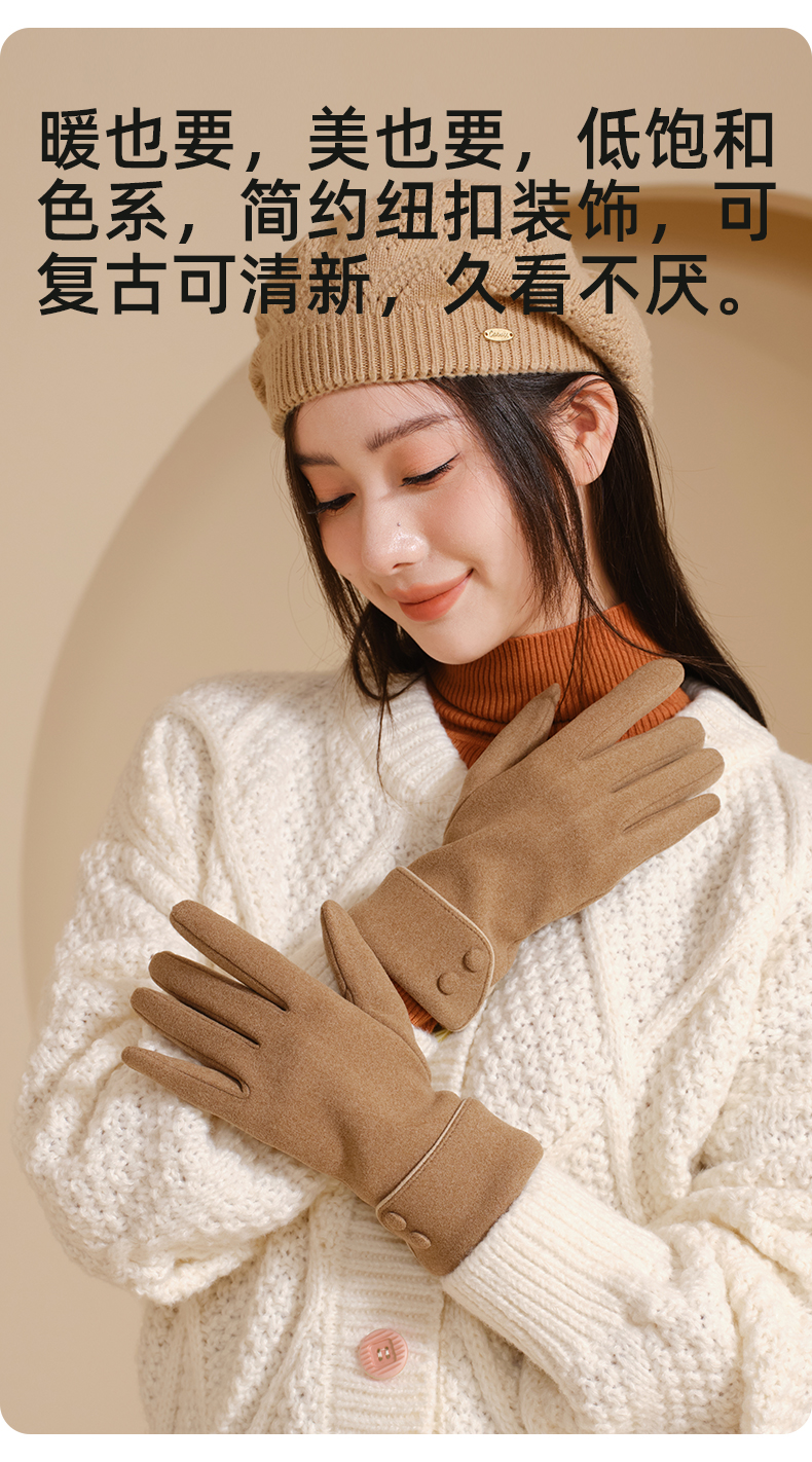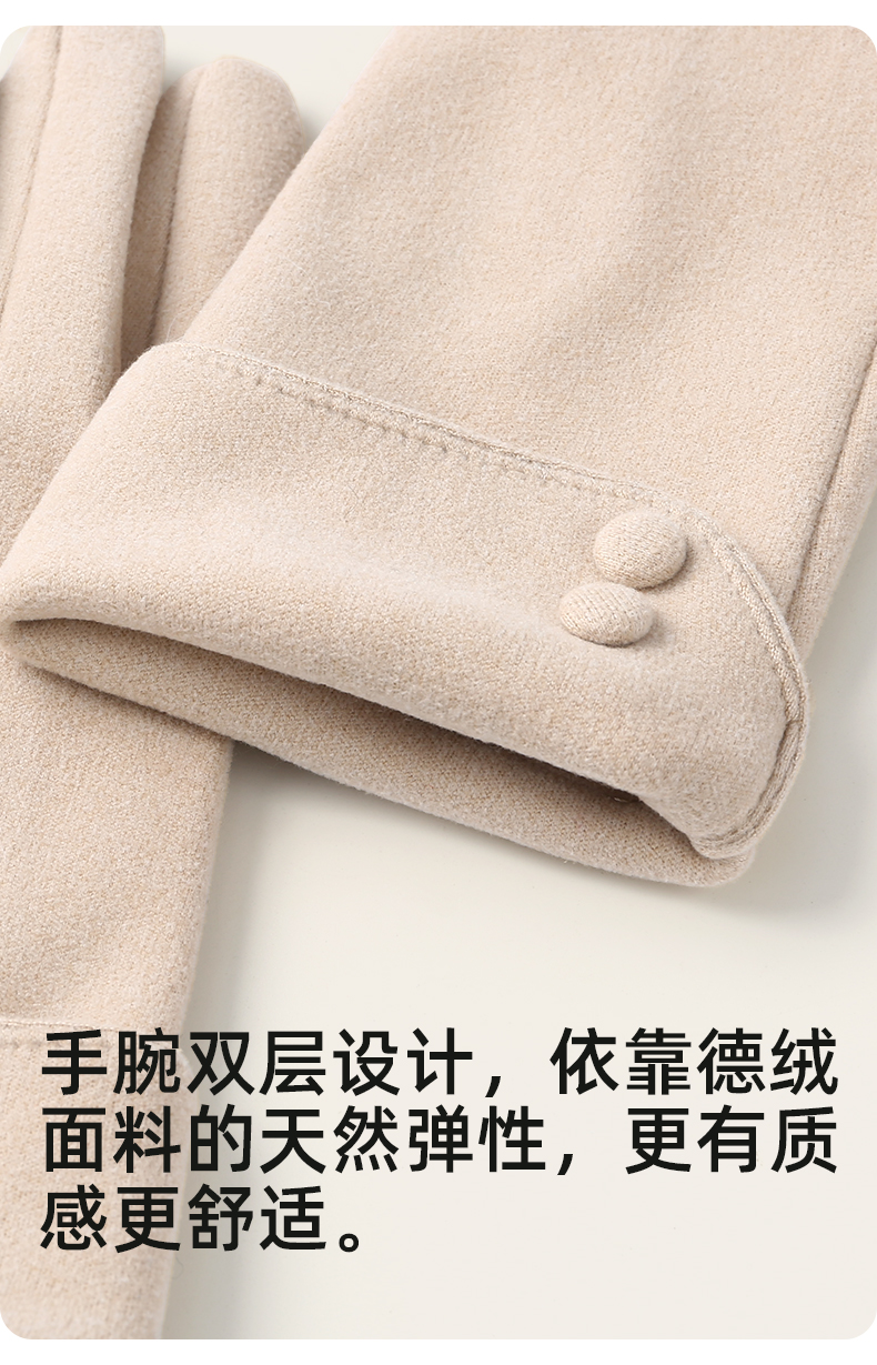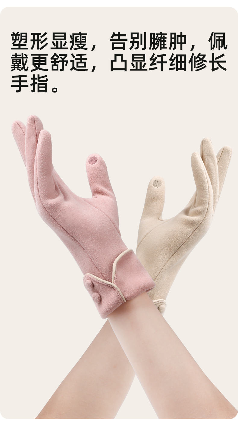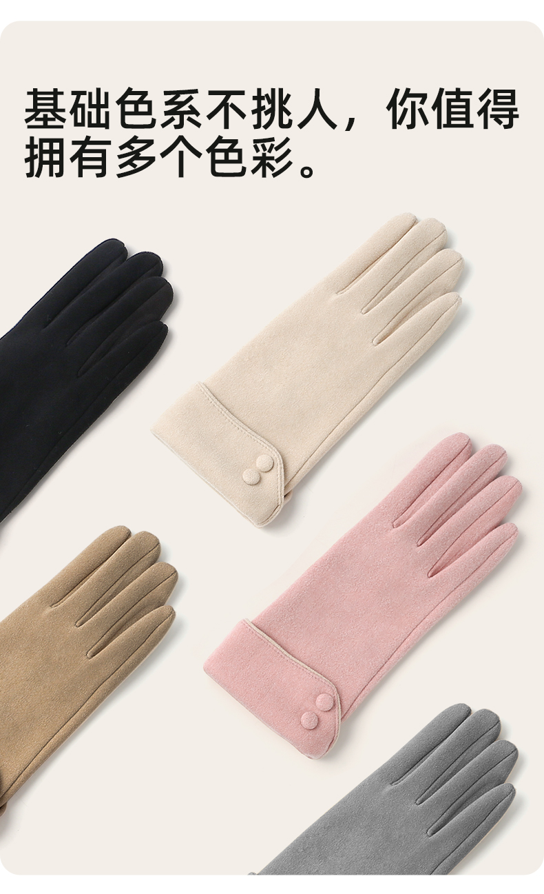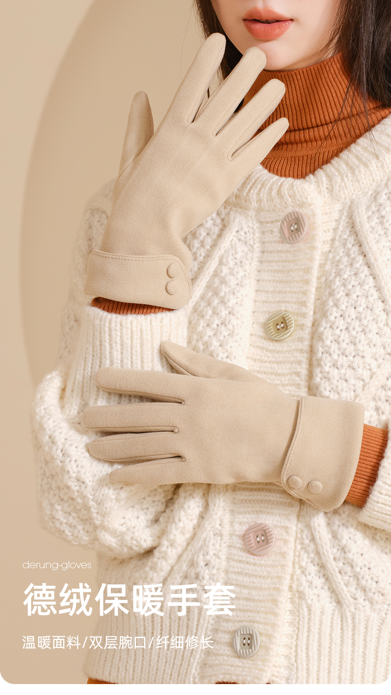 CACUSS冬季时尚多彩德绒手套女 加绒保暖纤细修长 防风防寒 拇指食指可触屏