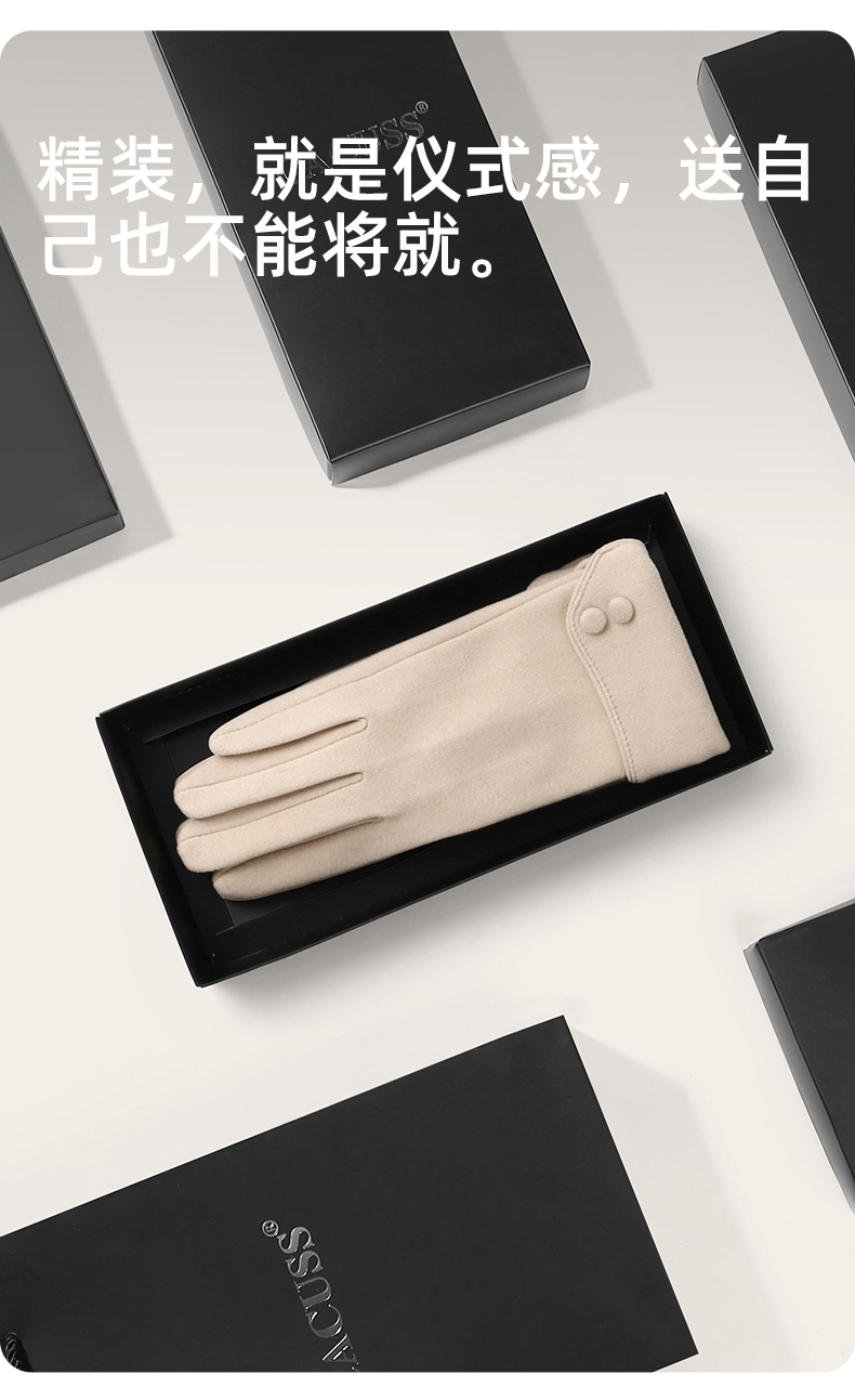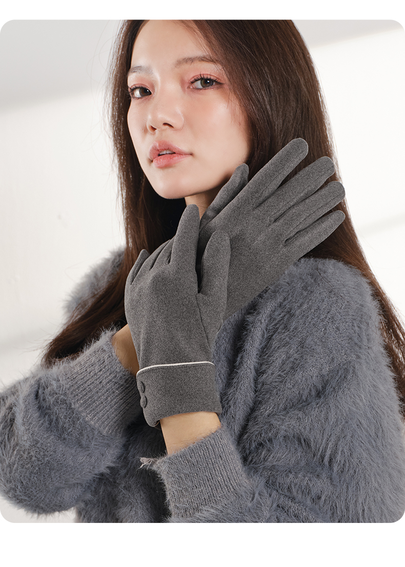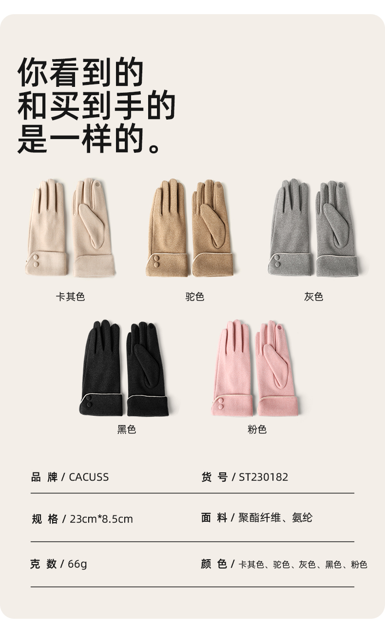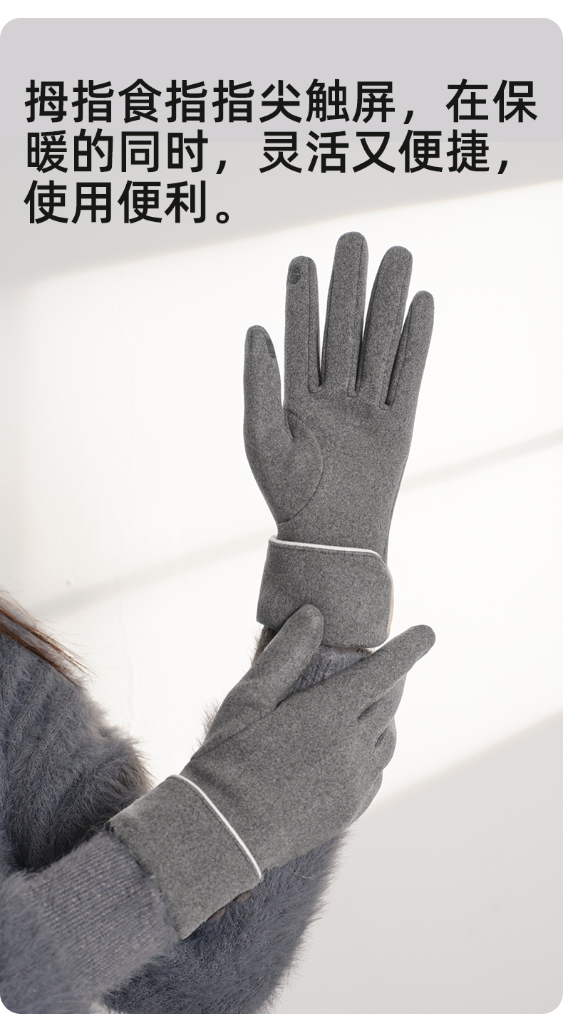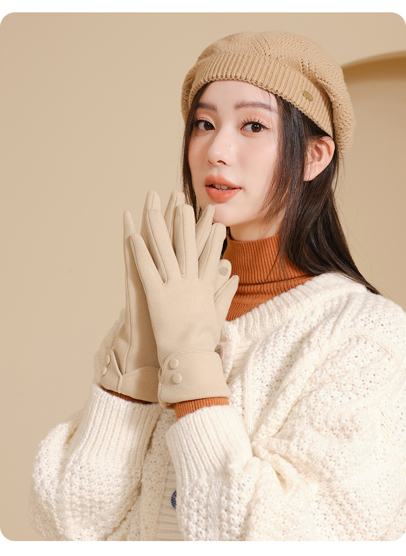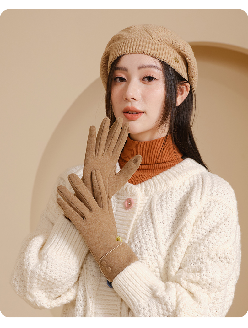 CACUSS冬季时尚多彩德绒手套女 加绒保暖纤细修长 防风防寒 拇指食指可触屏
