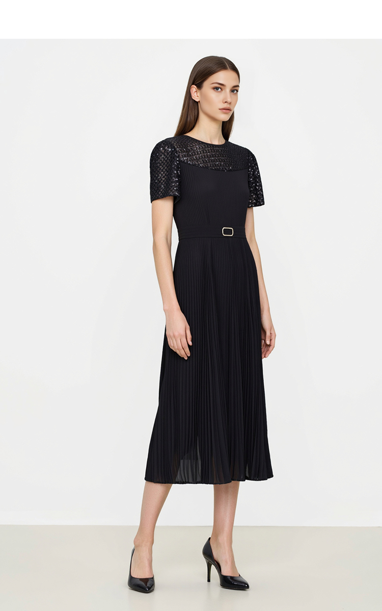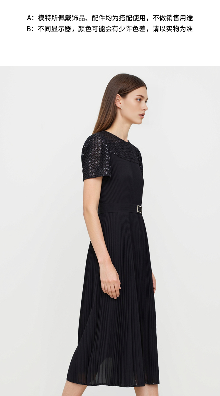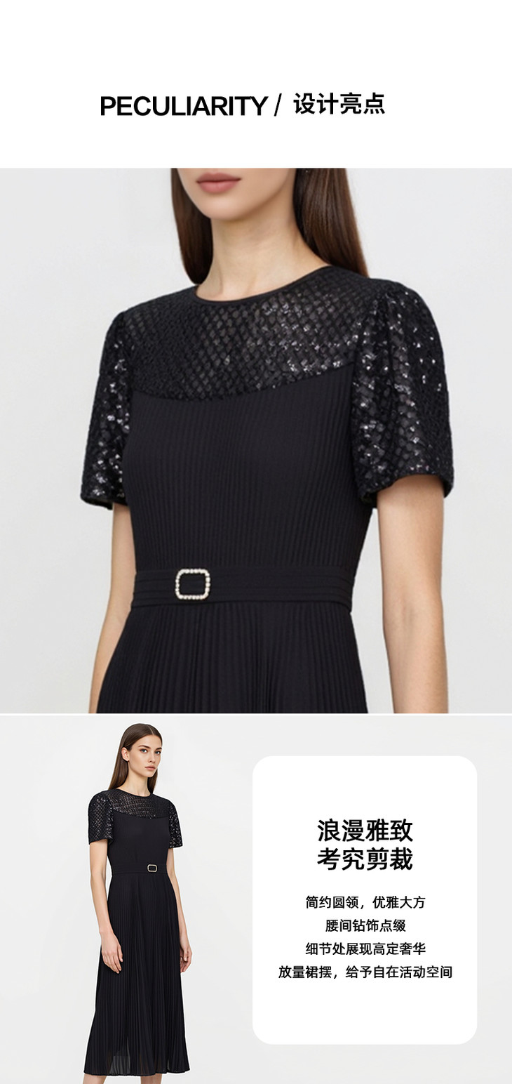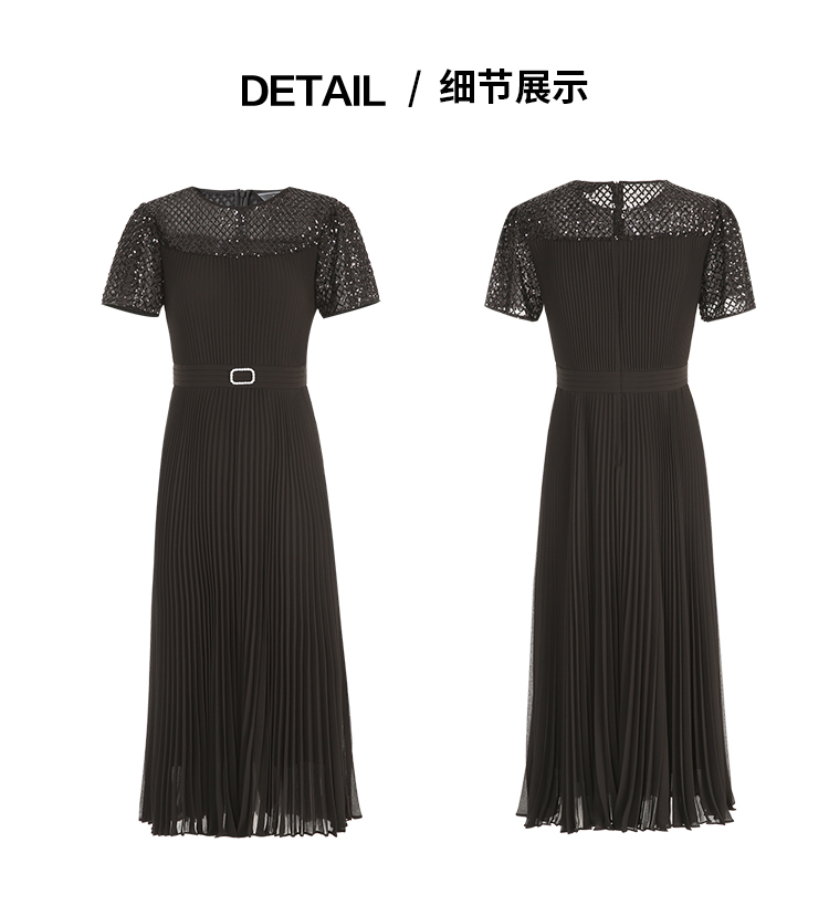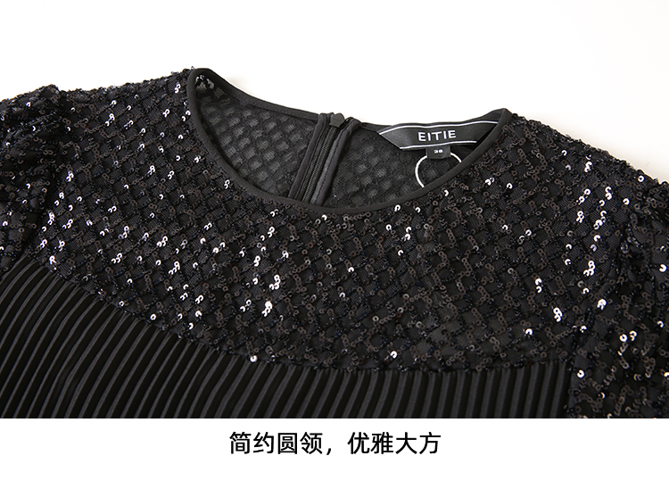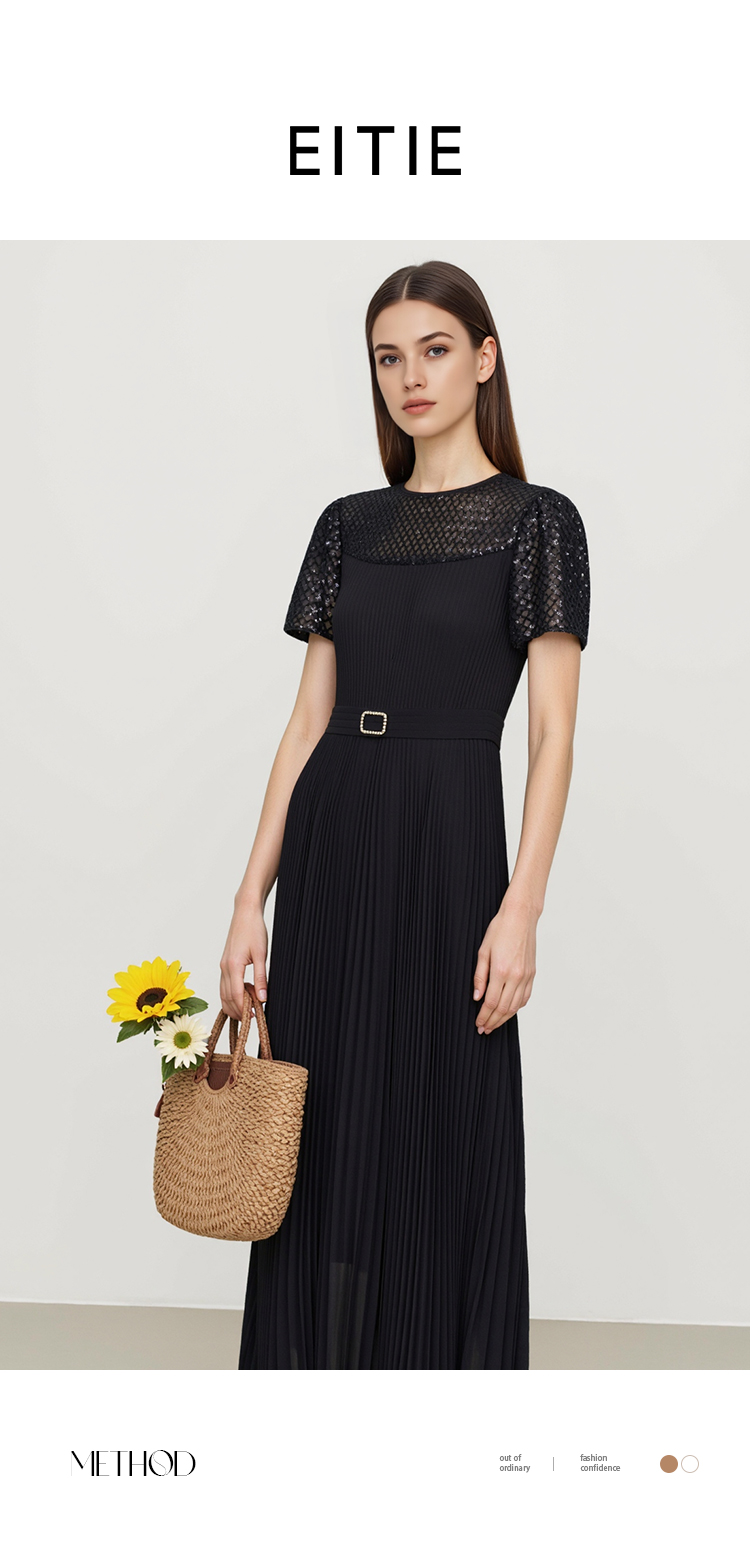 EITIE爱特爱夏季新款气质优雅设计感百褶无袖礼服连衣裙7877508