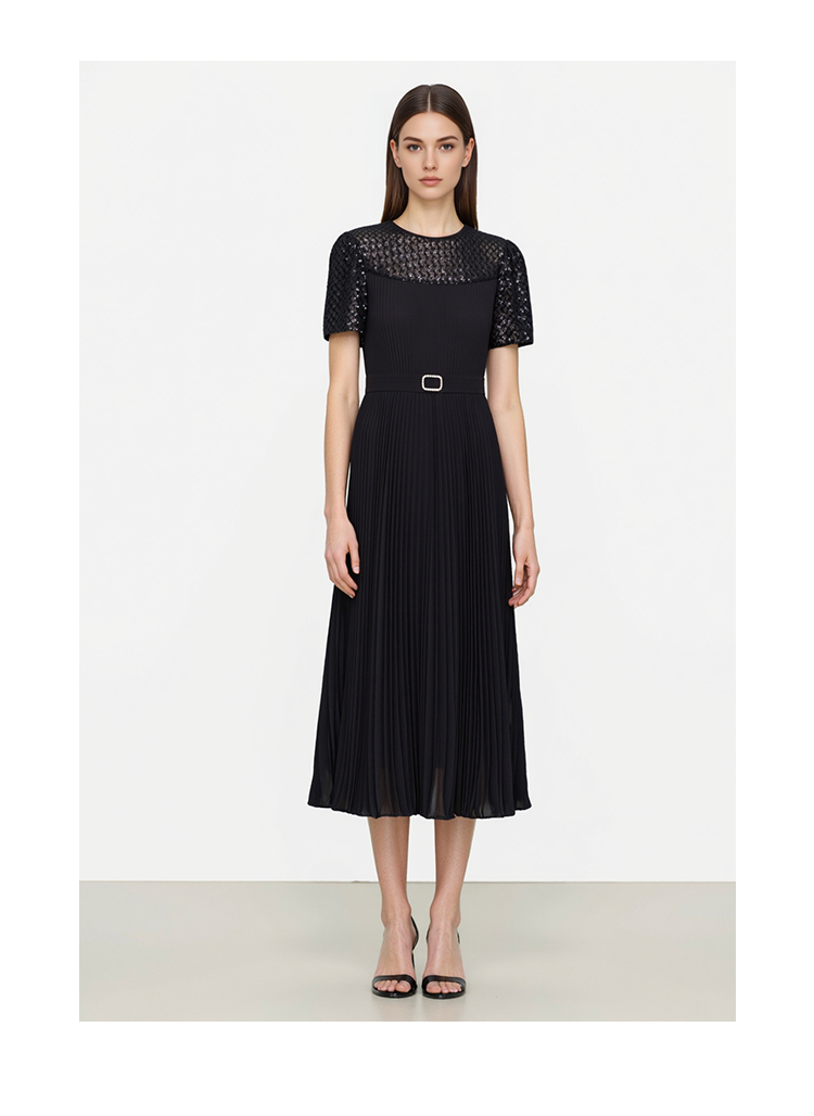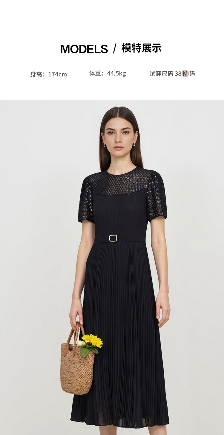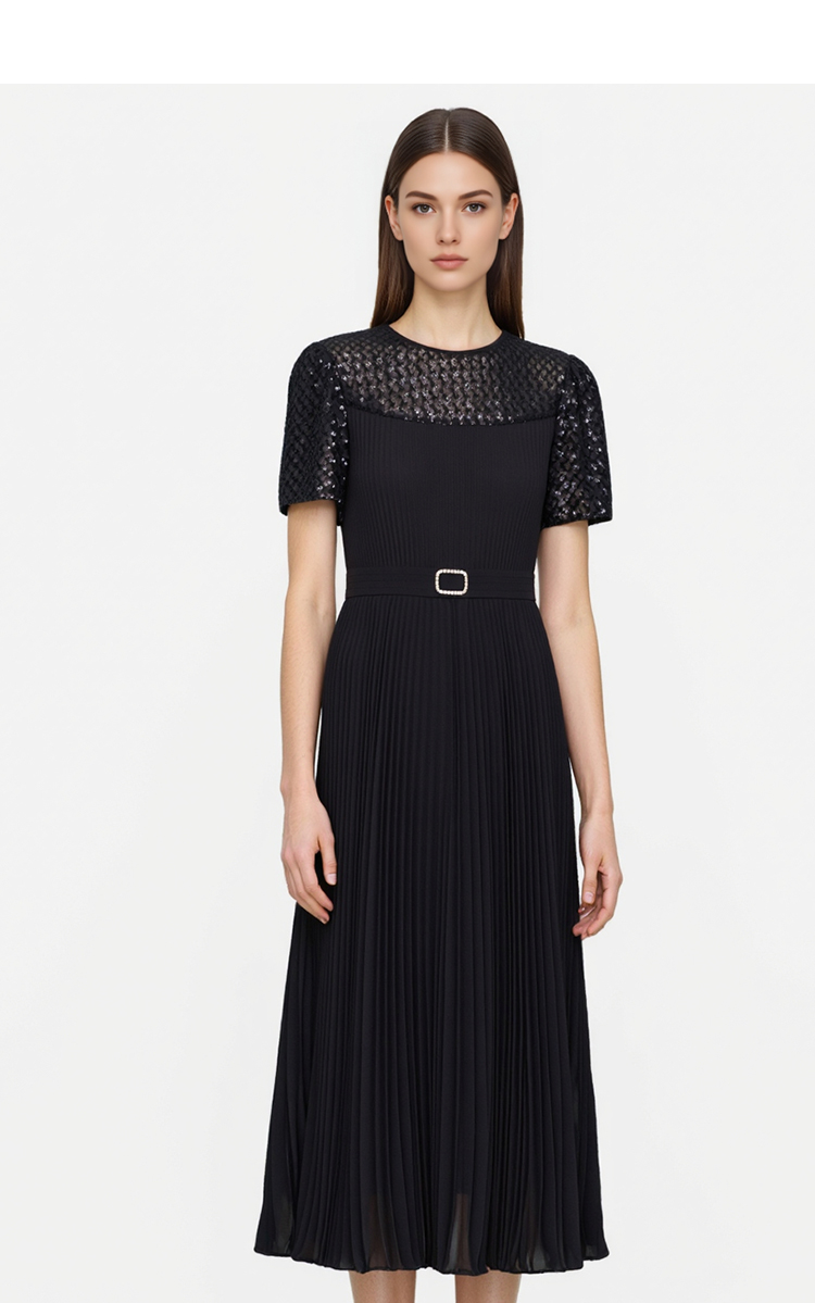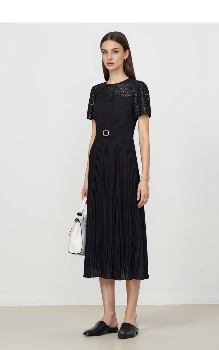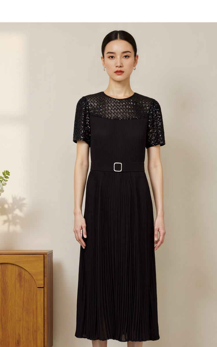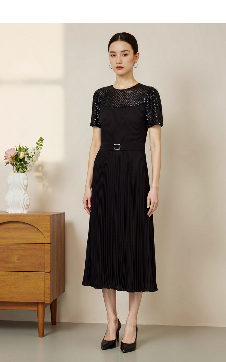 EITIE爱特爱夏季新款气质优雅设计感百褶无袖礼服连衣裙7877508