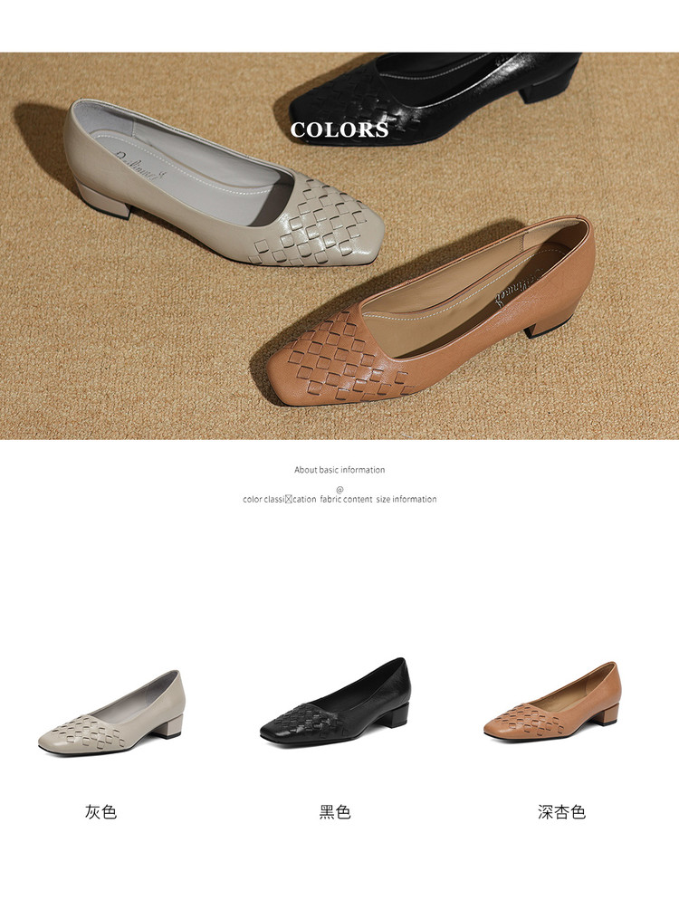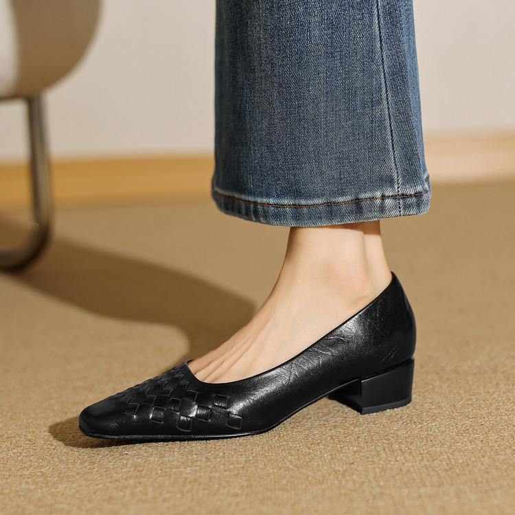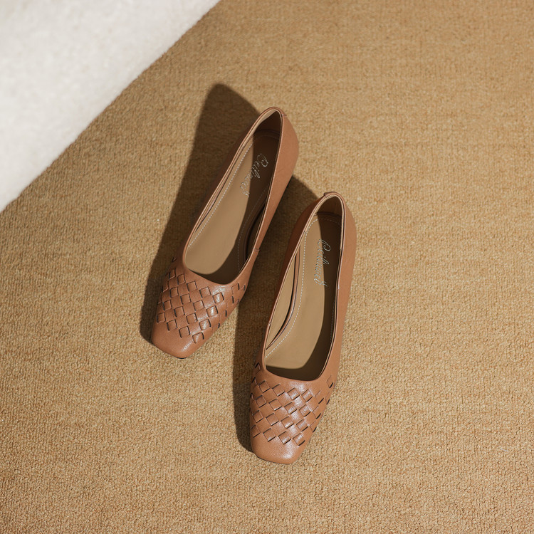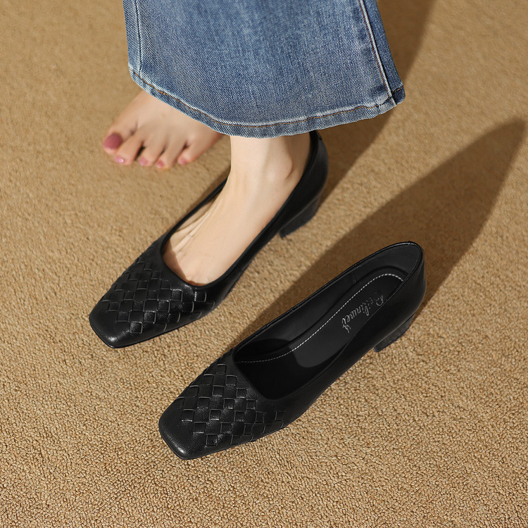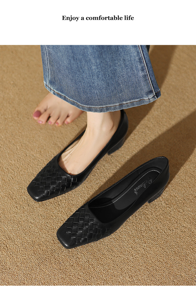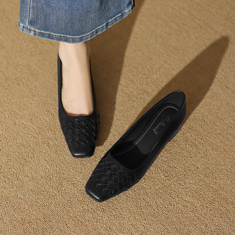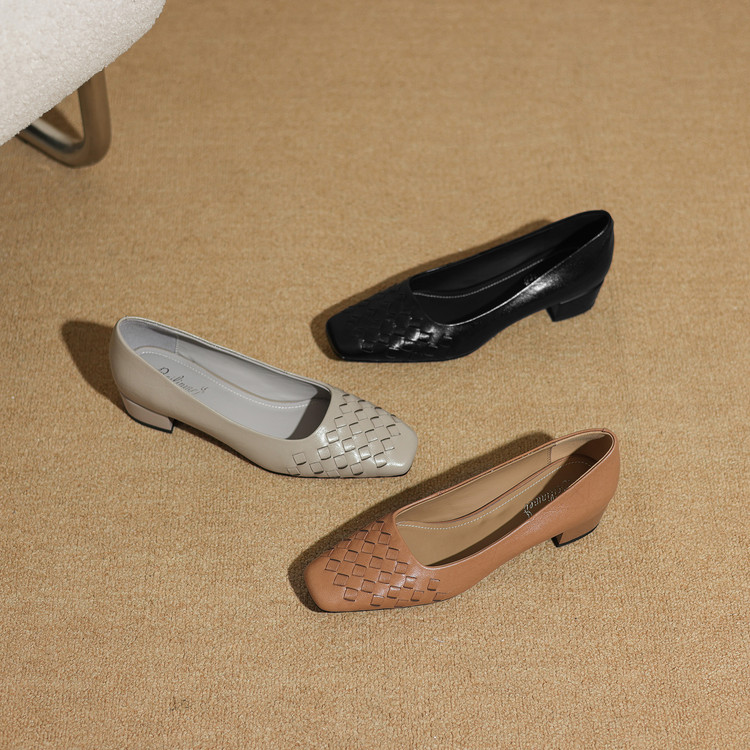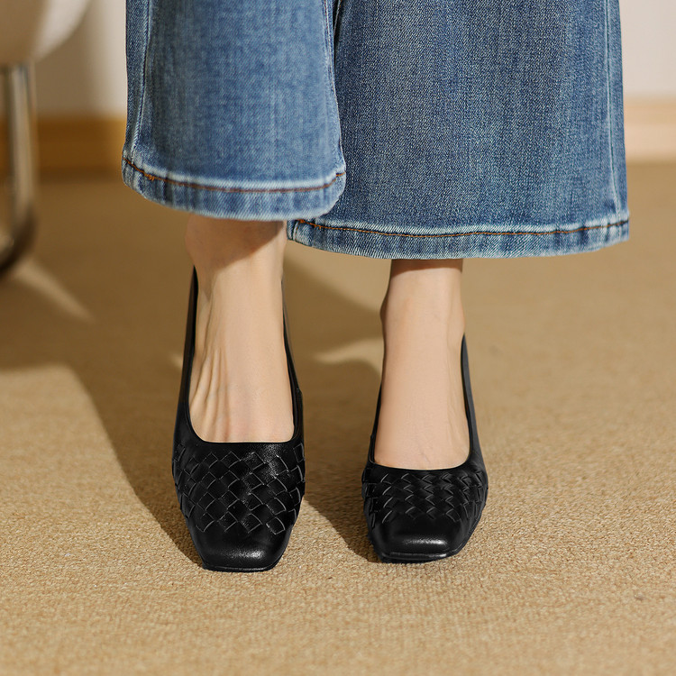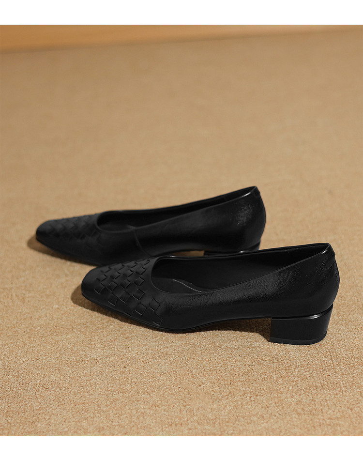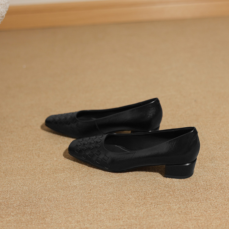 【预售5天】新款复古软皮编织低跟浅口单鞋女时尚百搭女士通勤工作鞋ZF&25186