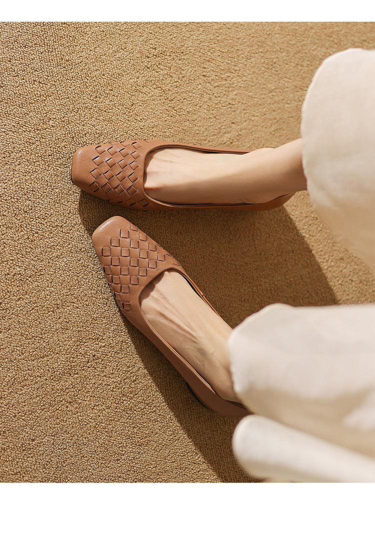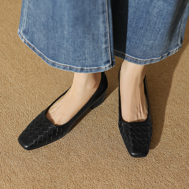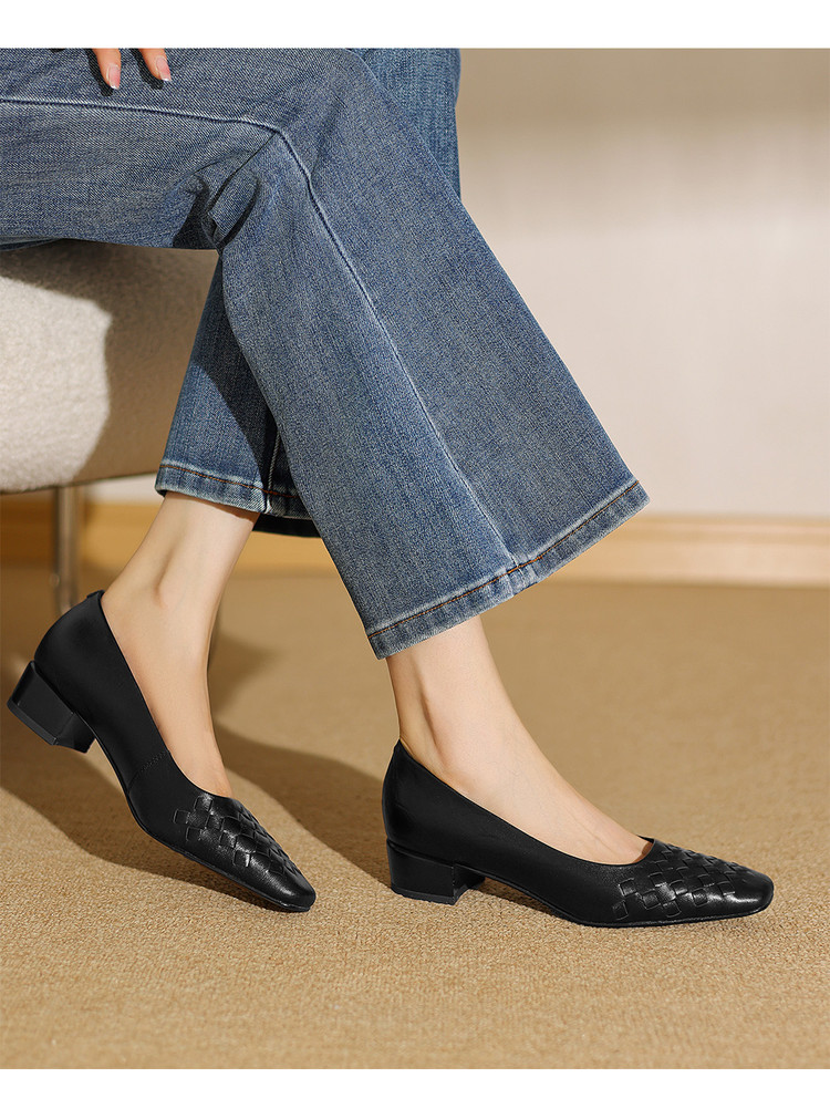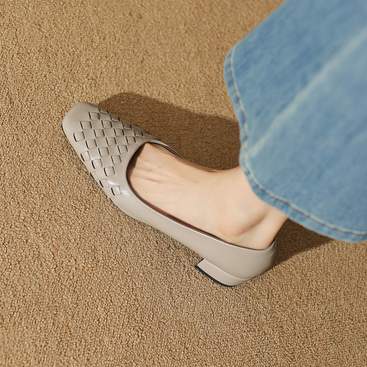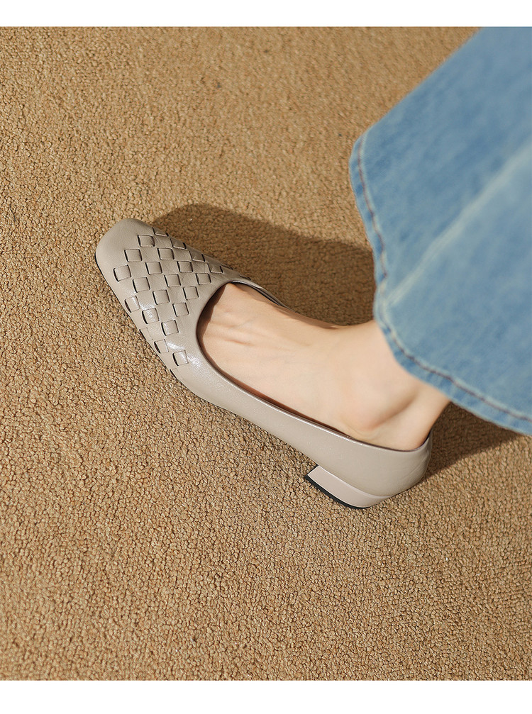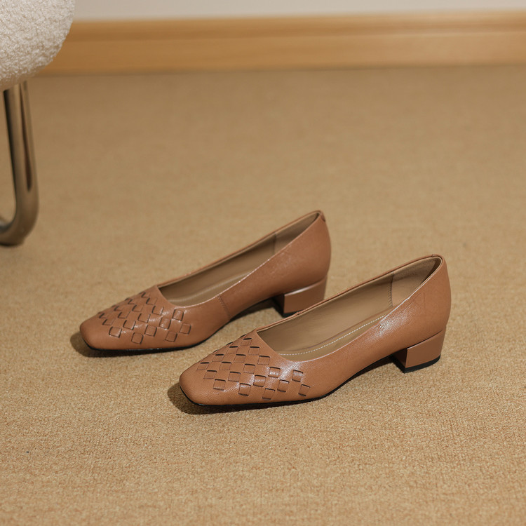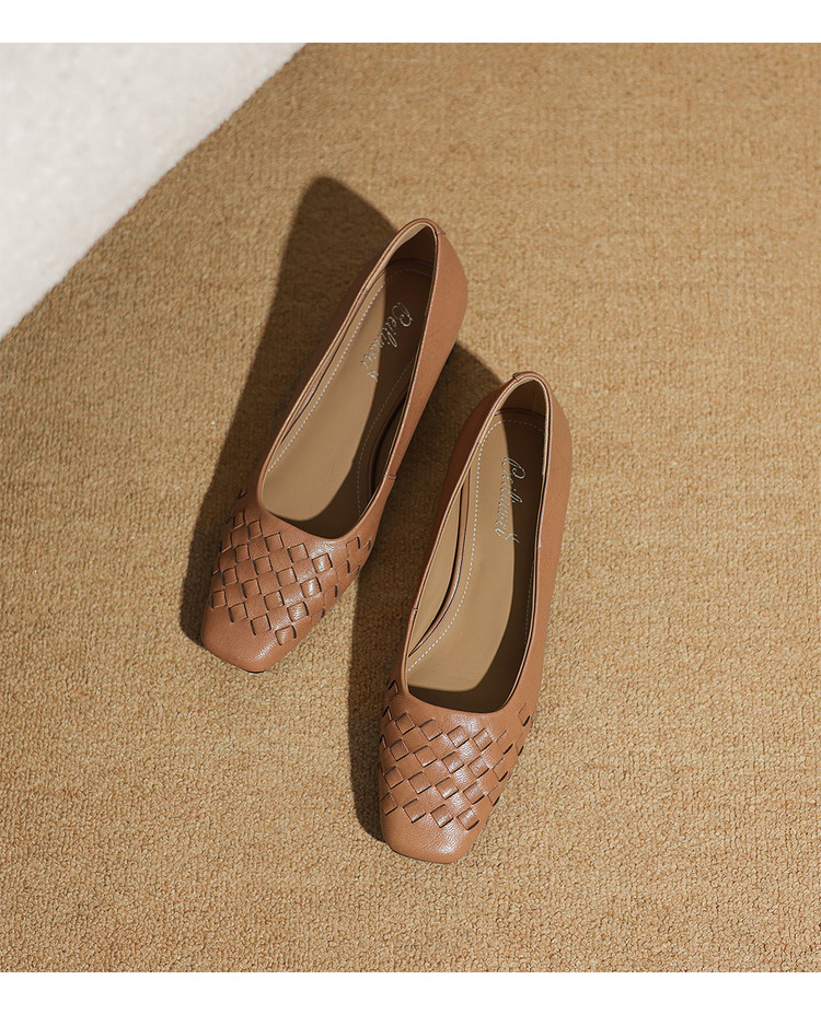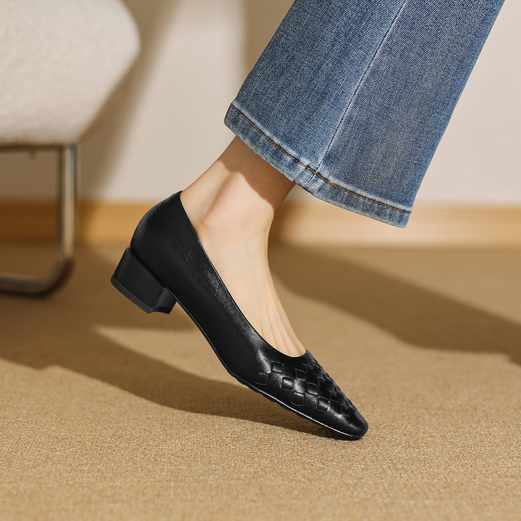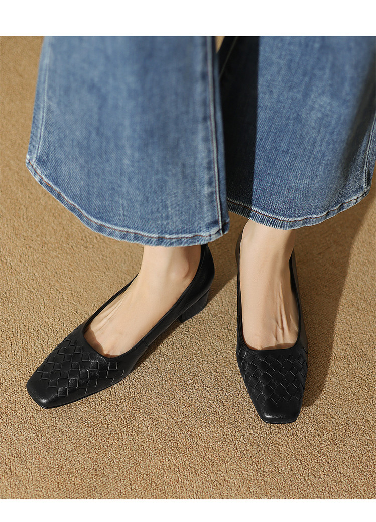 【预售5天】新款复古软皮编织低跟浅口单鞋女时尚百搭女士通勤工作鞋ZF&25186