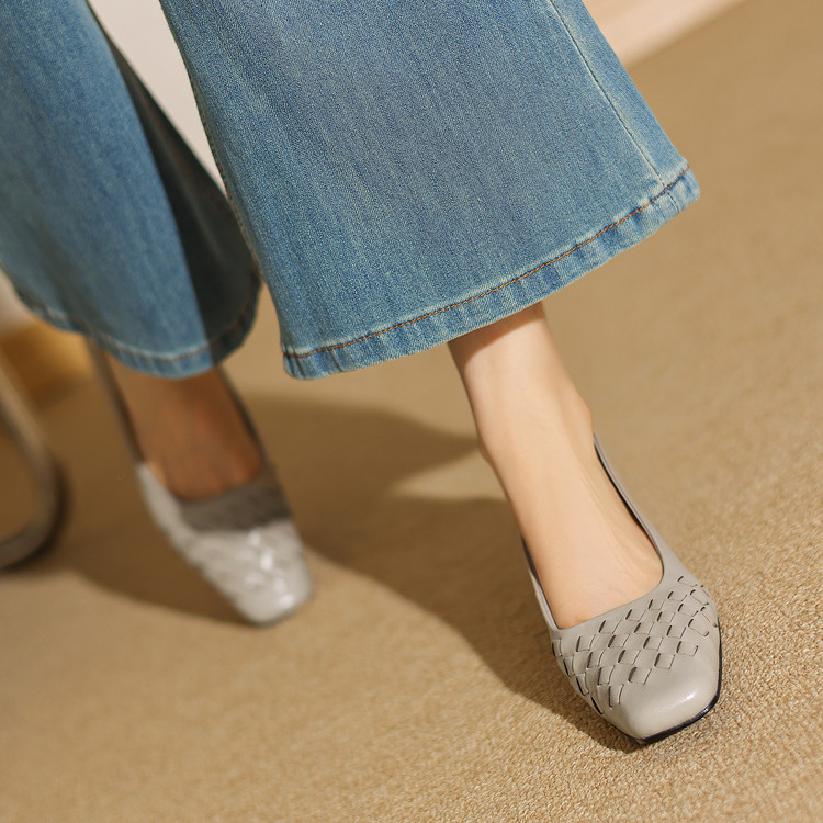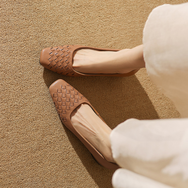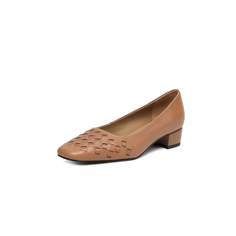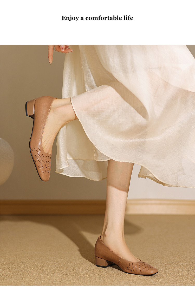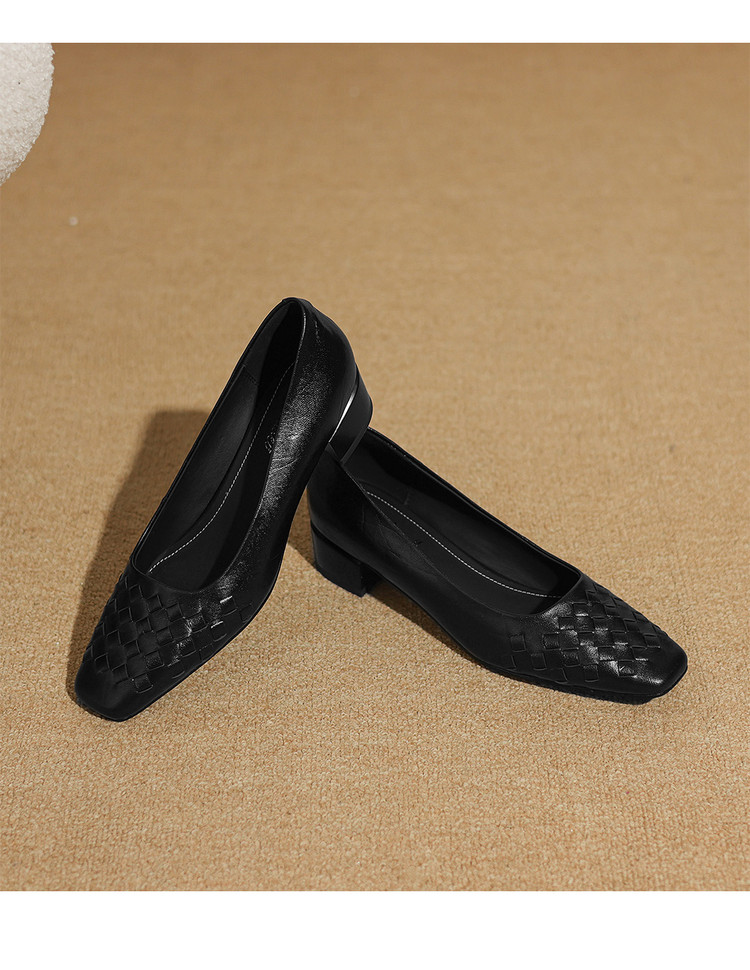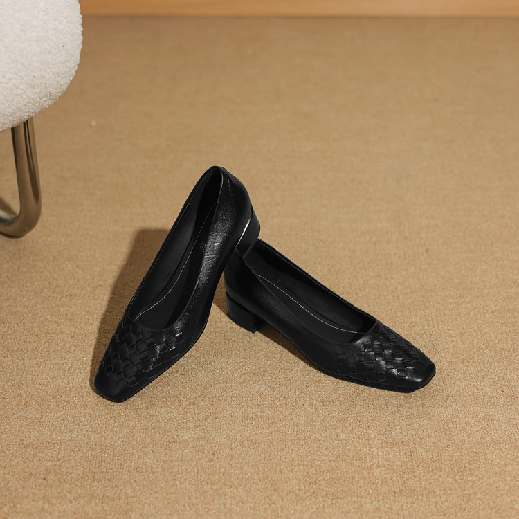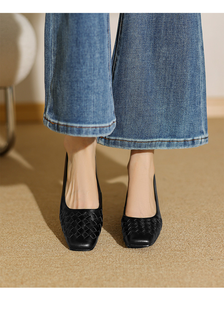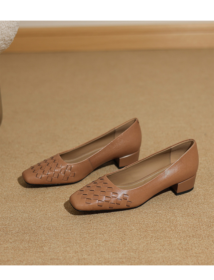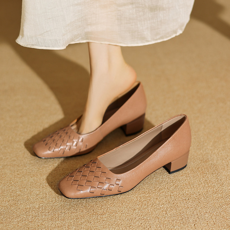 【预售5天】新款复古软皮编织低跟浅口单鞋女时尚百搭女士通勤工作鞋ZF&25186