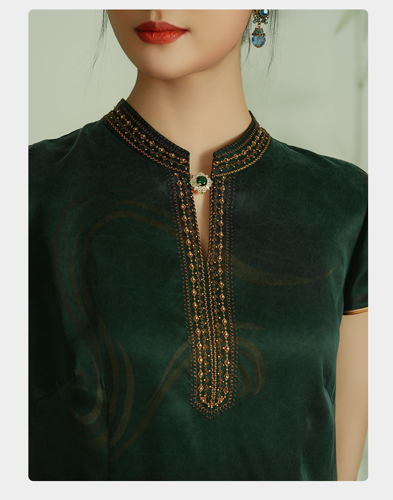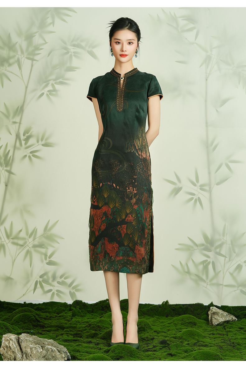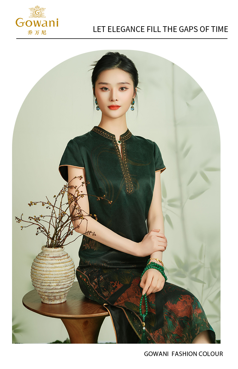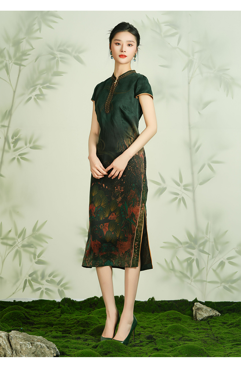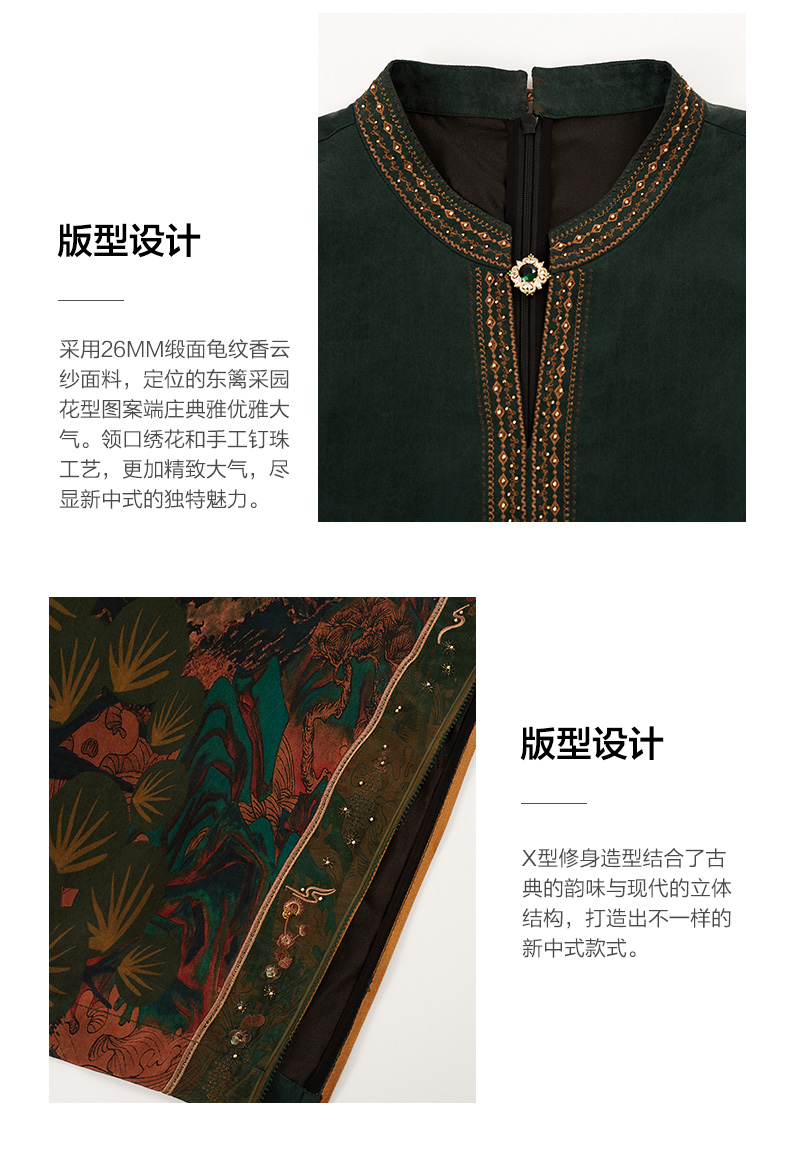【东篱采园图】【香云纱】乔万尼真丝连衣裙缎面龟纹重磅26mm桑蚕丝收腰气质富贵感ET2E281