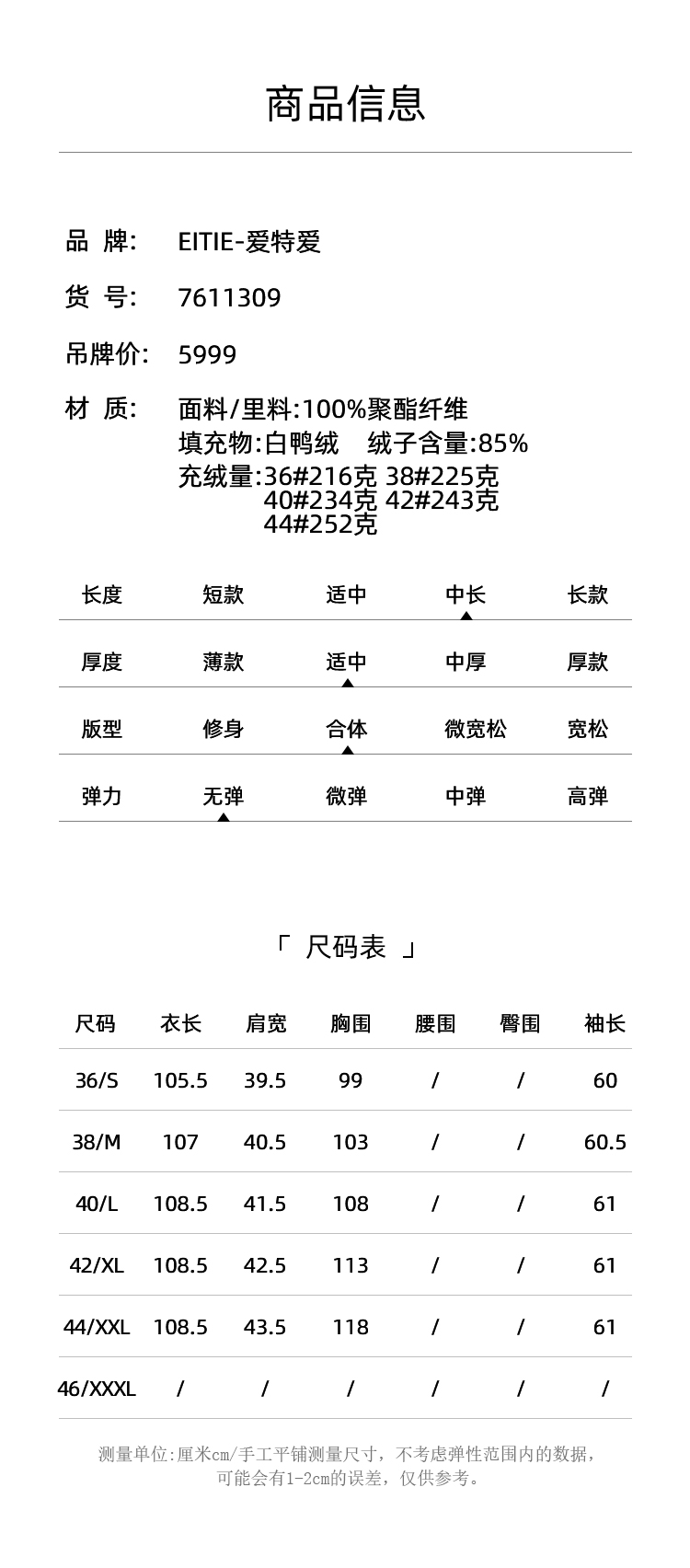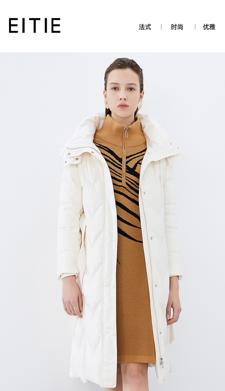 EITIE爱特爱冬季新款时尚加厚保暖连帽羽绒服长款外套7611309