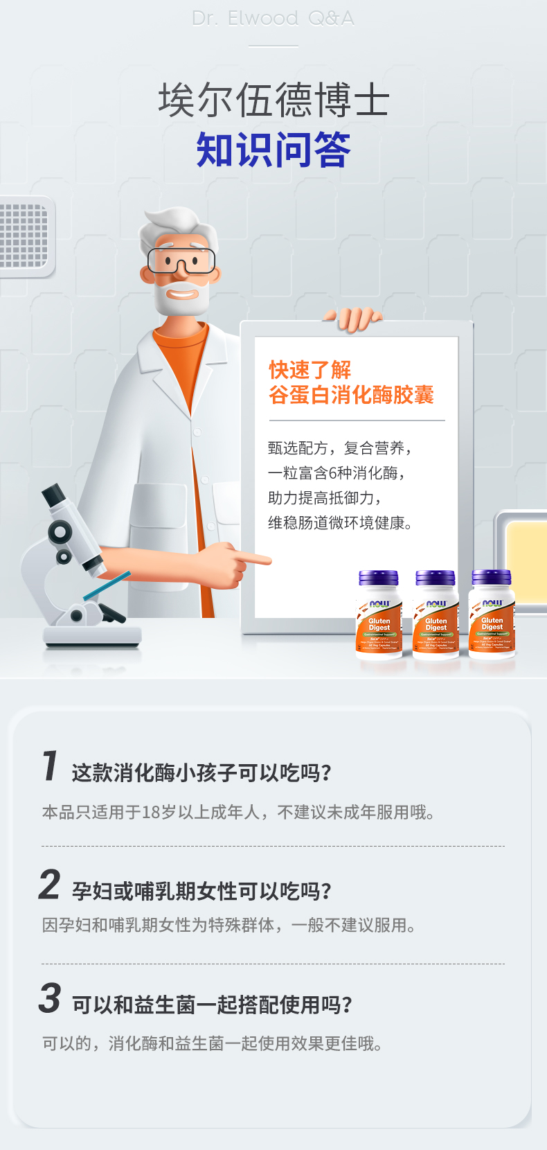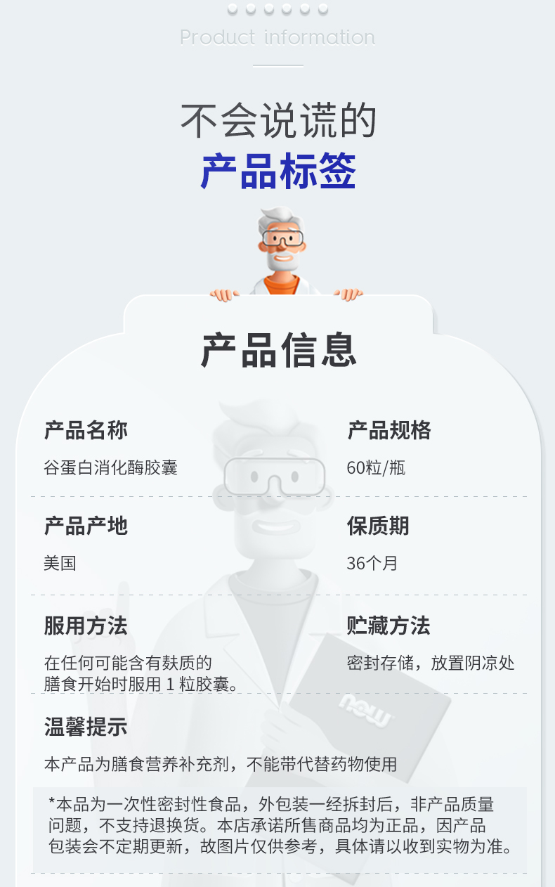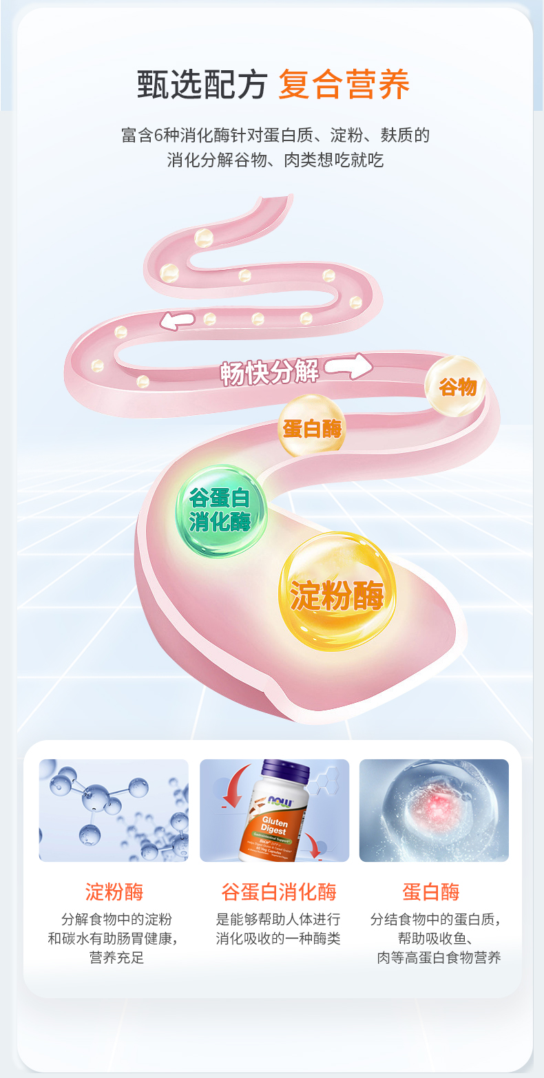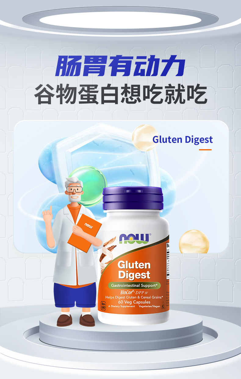 NOW诺奥谷蛋白消化酶60粒/瓶美国原装进口