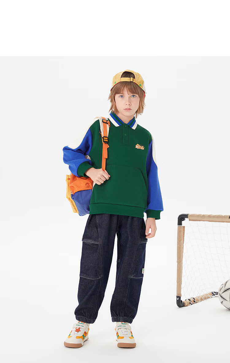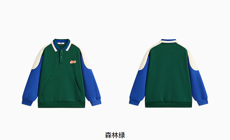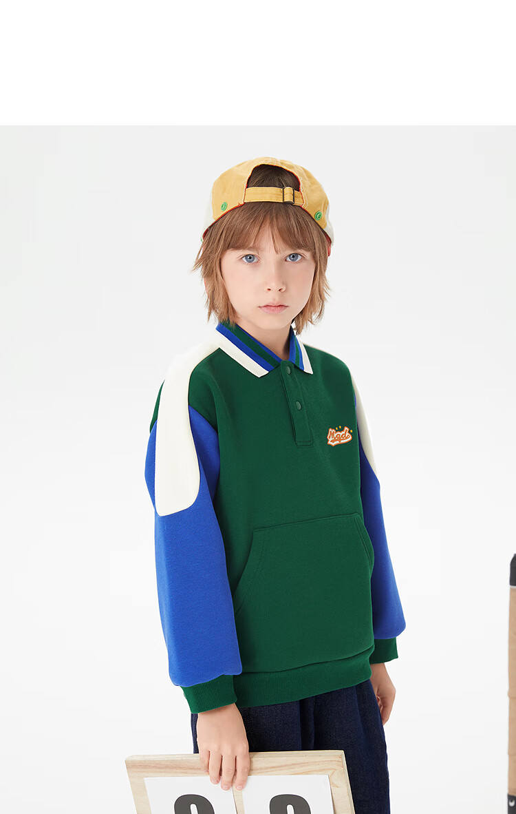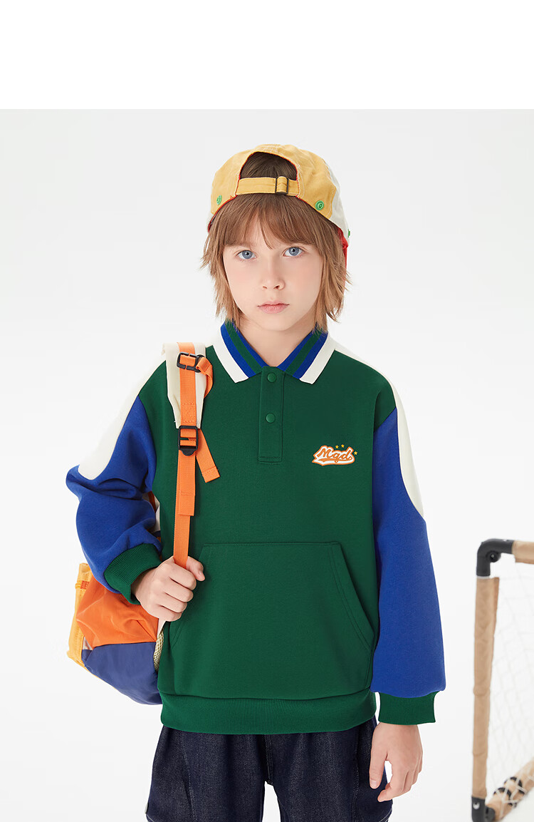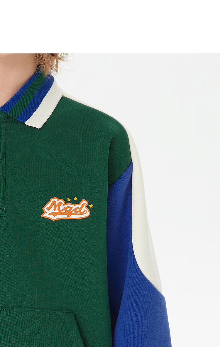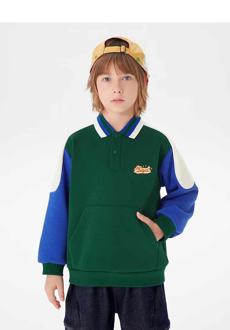【MQD】童装男大童冬学院风撞色运动加绒翻领卫衣