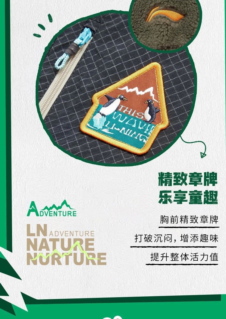 李宁男大童户外系列保暖宽松拼接休闲外套YFDU149