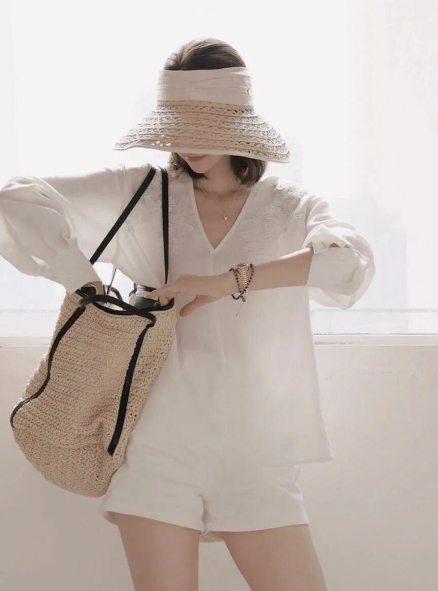 ✅仿苎麻面料,轻薄款式,夏天既可以当作防晒衫也可以做空调衫,搭配缎面吊带裙或者内搭一件小吊带。