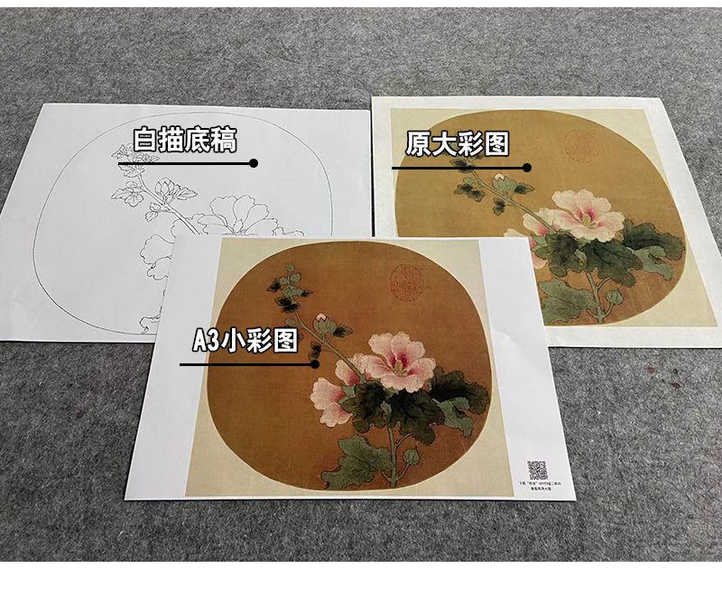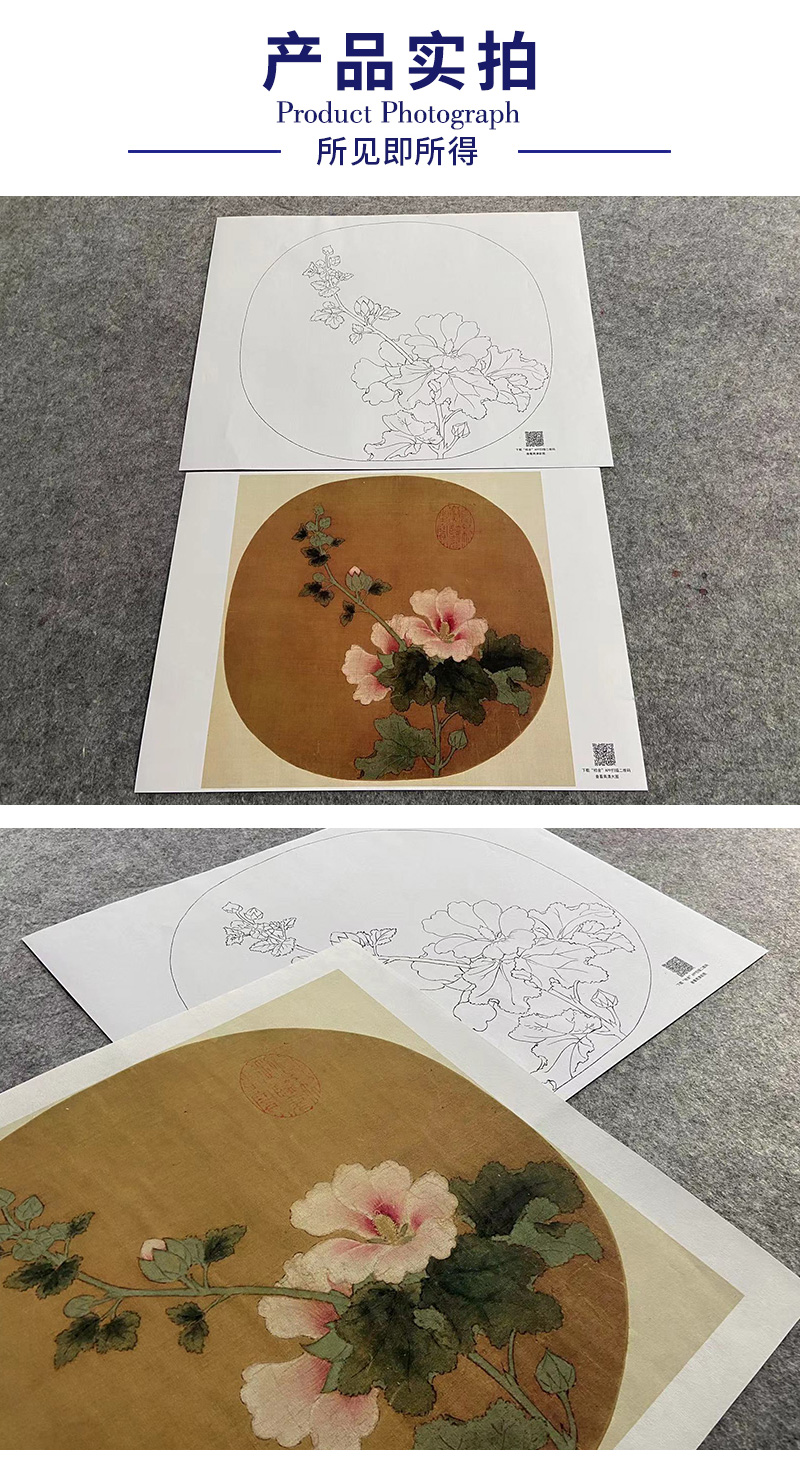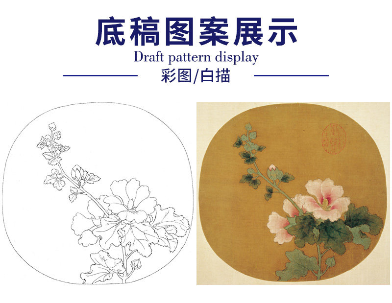 【大彩图】佚名工笔画白描底稿宋画小品《蜀葵图》临摹勾线花鸟线稿GH24