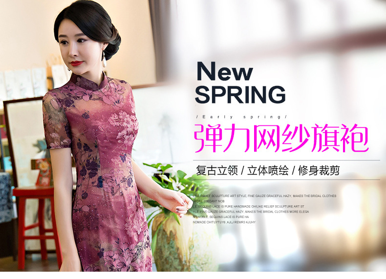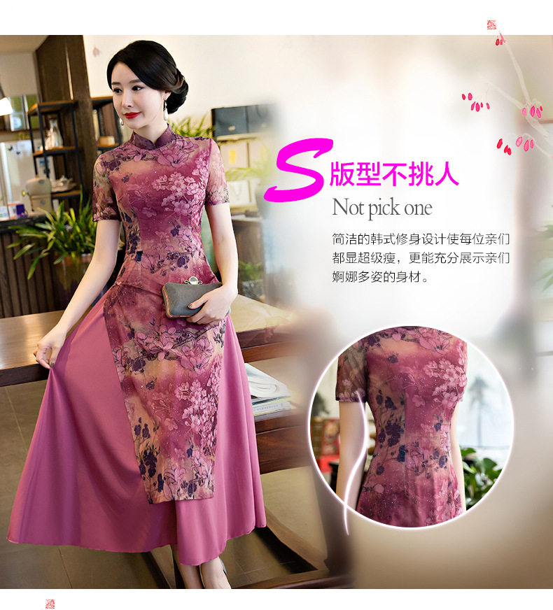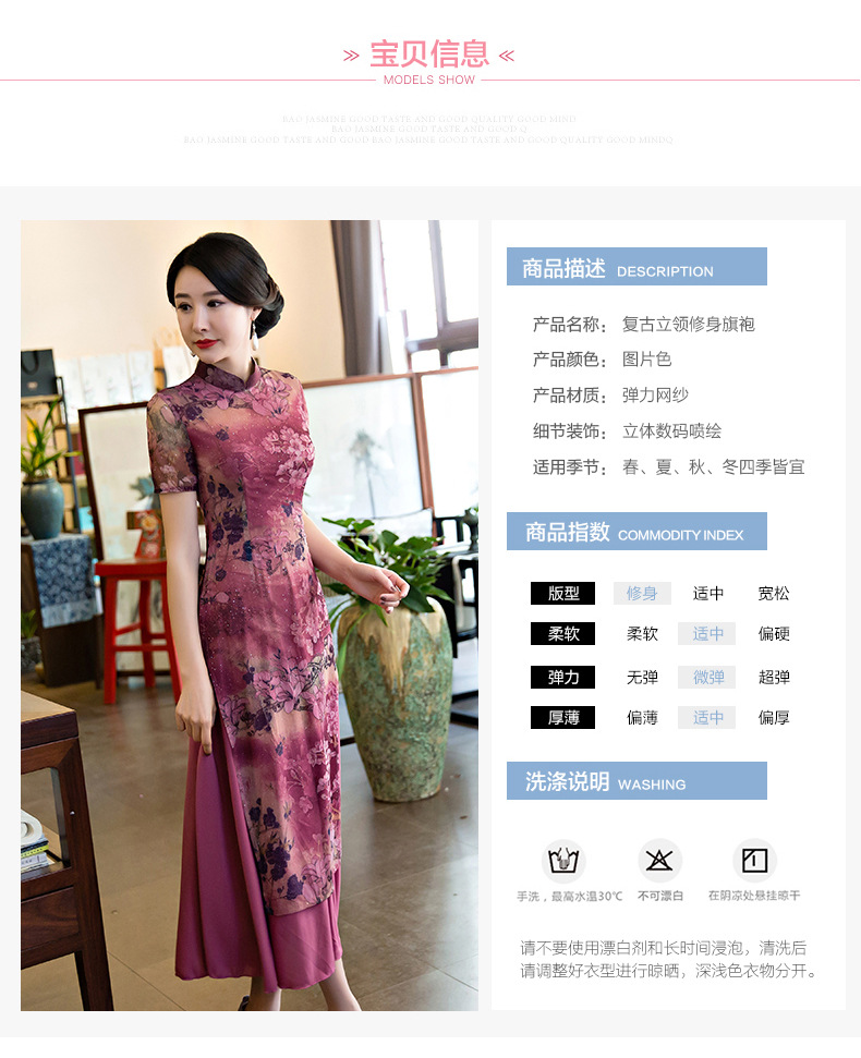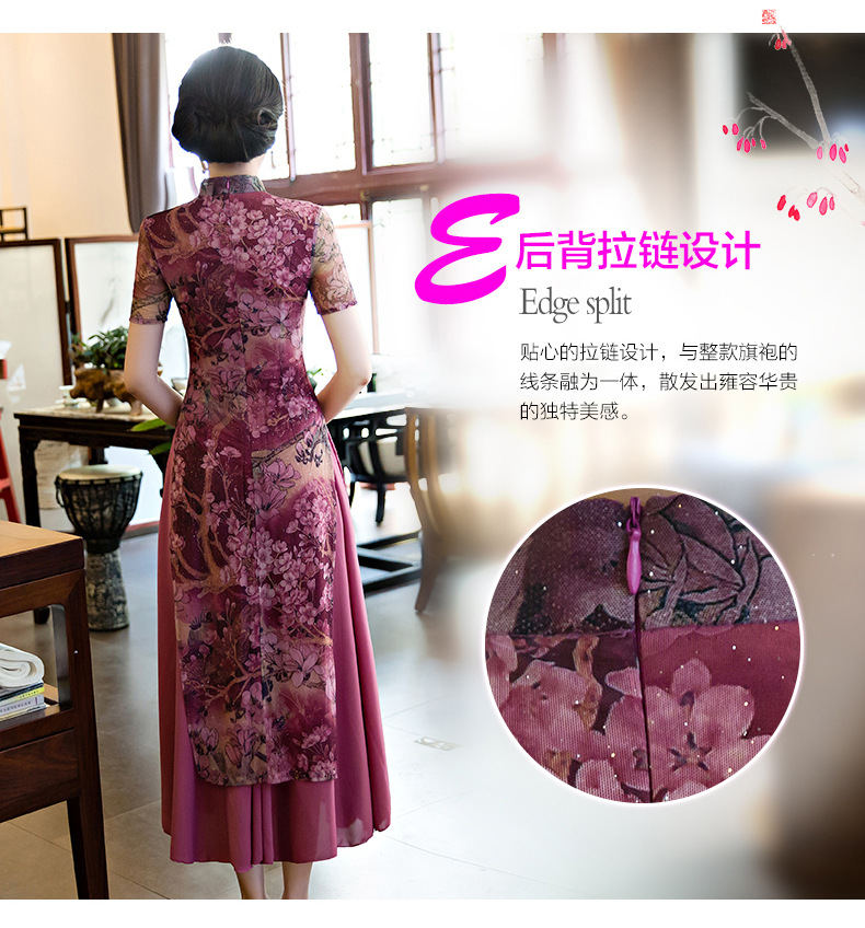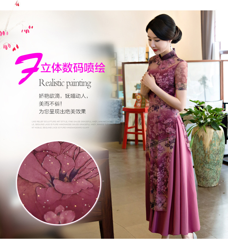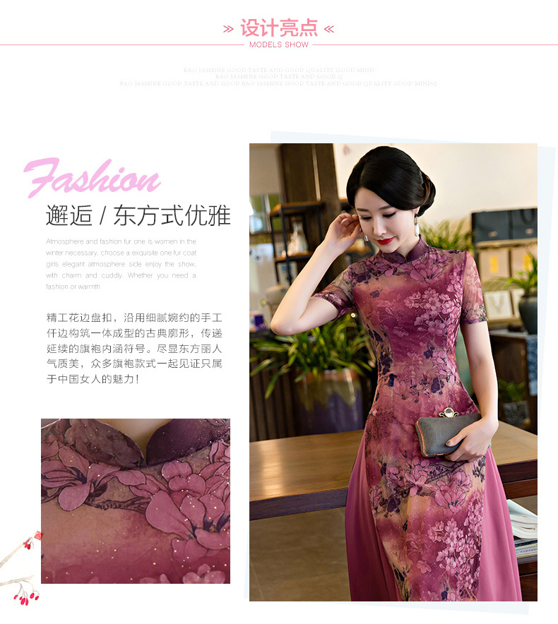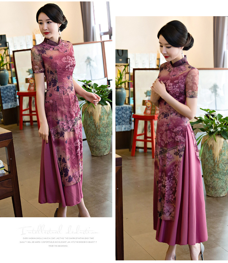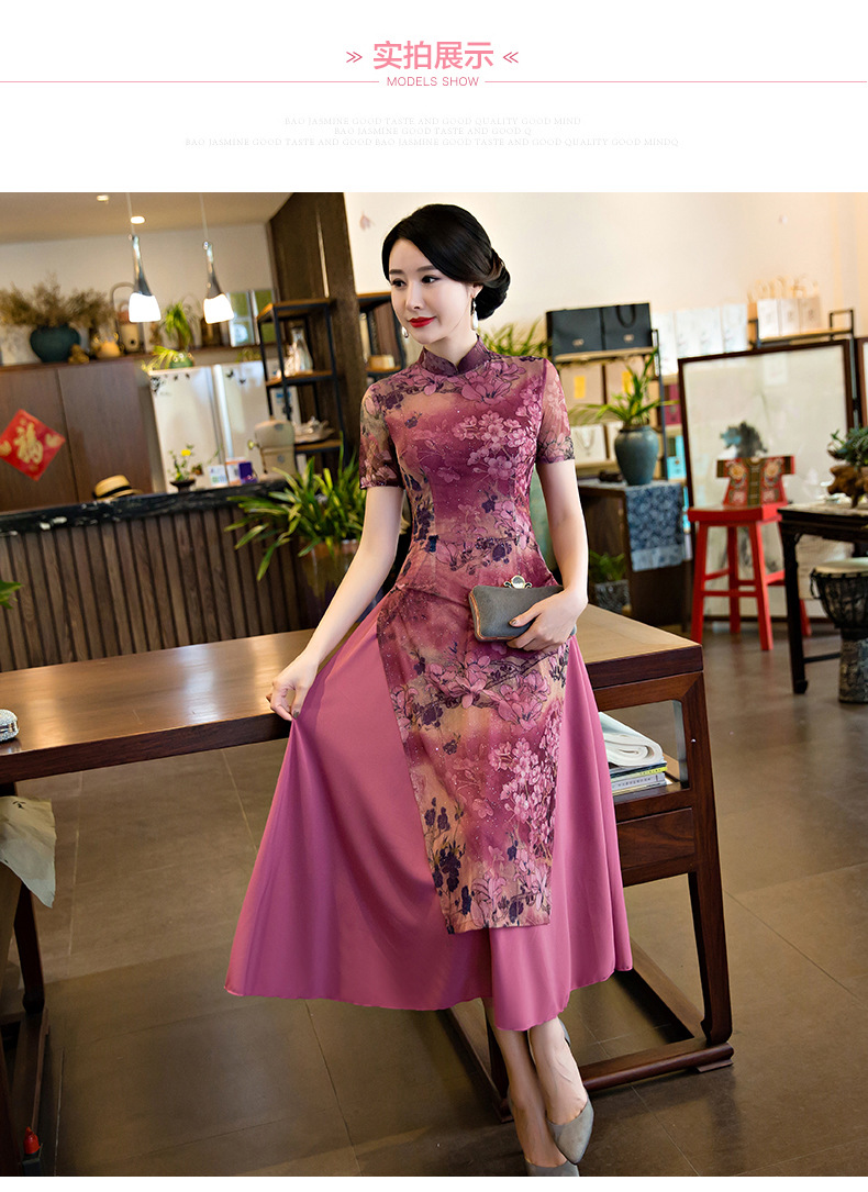 ZA1133中式改良旗袍连衣裙盘扣立领文艺复古双层蕾丝