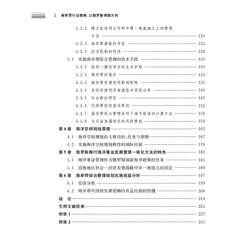 本书导论介绍海洋利用的一体化管理方法发展简史与前景,正文论述海岸带综合管理理论的基本原理、海岸带综合管理规划的发起与实施、海岸带综合管理体系运作机制与方法、海岸带综合管理规划实施效益分析。本书的特点是,对海岸带综合管理方法的实际运用予以特别的关注,详细探讨了行政策略、社会-经济策略等手段的运用,亦介绍了俄罗斯国内外海岸带综合管理诸要素在实际操作中积累的有益经验,理论与实际结合,内容丰富实用。为了培养本国海岸带综合管理领域的专门人材,本书将解决俄罗斯海岸带诸区域的现实问题作为主要研讨对象。本书是俄罗斯国立水文气象大学科学研究与教学委员会特别推荐的俄罗斯高等院校管理组织专业教程。