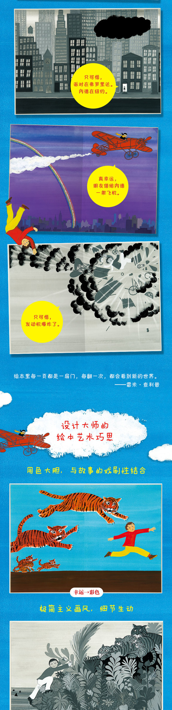 雷米·查利普巧妙利用翻页创造出一场离奇曲折的历险之旅。每一个“幸运”都大得惊人,每一个“倒霉”也几乎要命,戏剧性的演绎让小读者的心情如坐过山车般跌宕起伏,刺激过瘾!