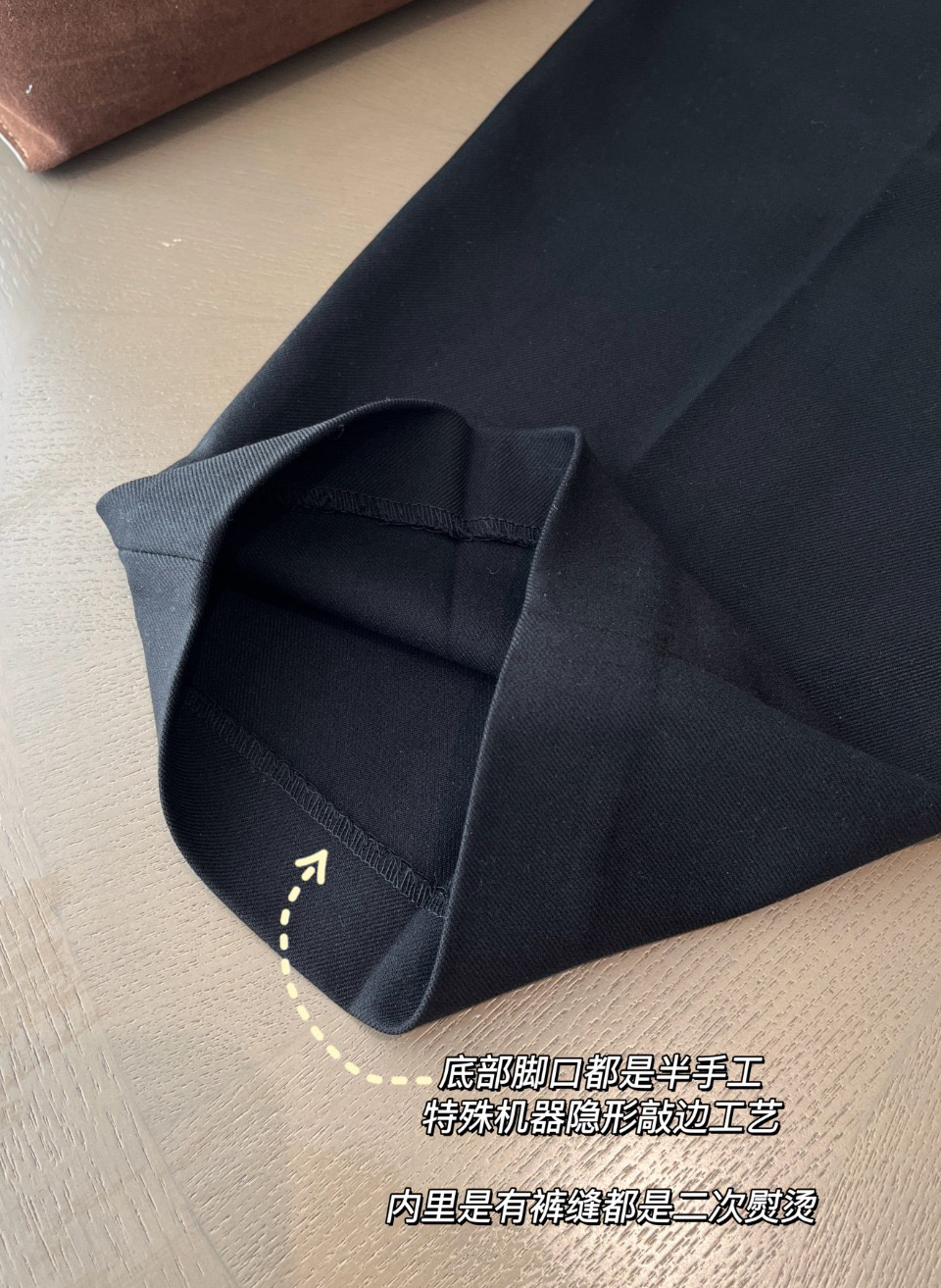 然后、正片腰部下方的褶裥工艺也是和Y版数据对着来的!别觉得这两处设计平平无奇,实际上西装裤显瘦很大一部分就靠这里!从腰头的捏褶、延伸到裤脚熨烫立体分割线,显长、显瘦、更显腿直!!!