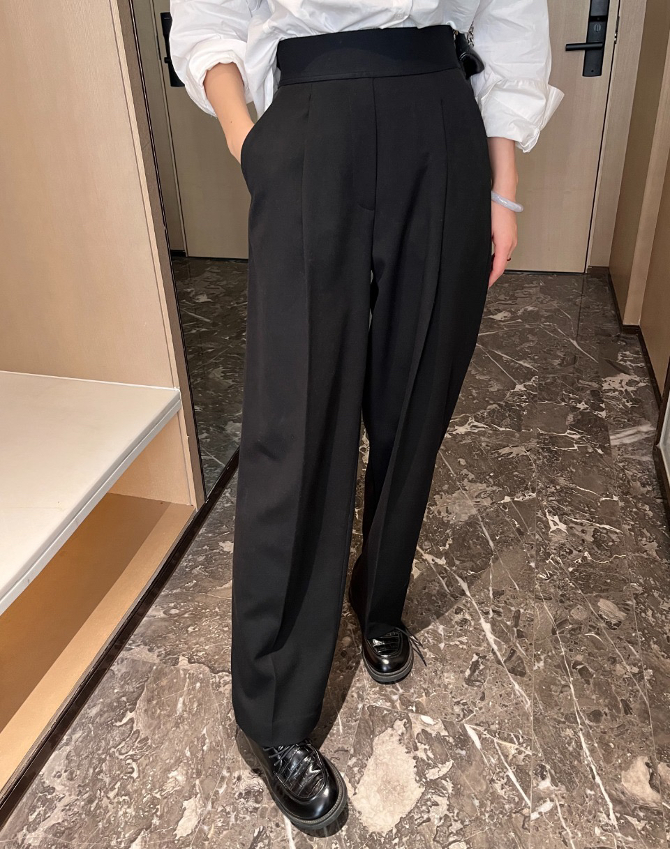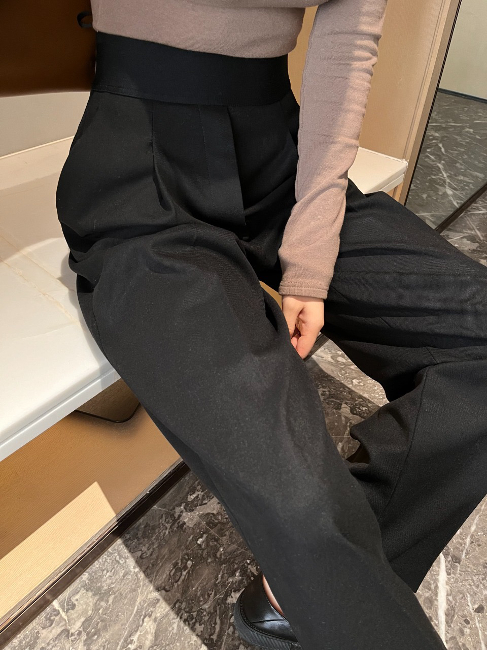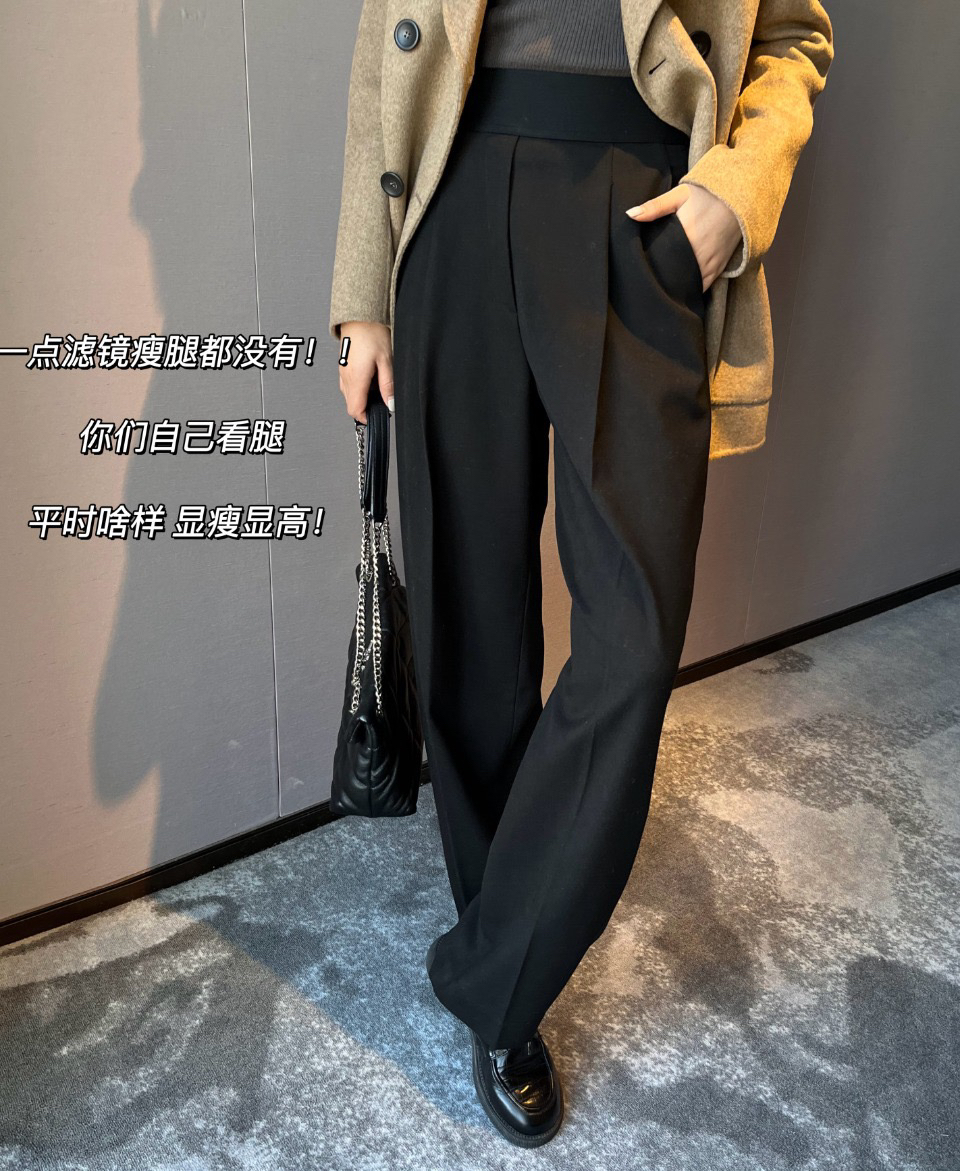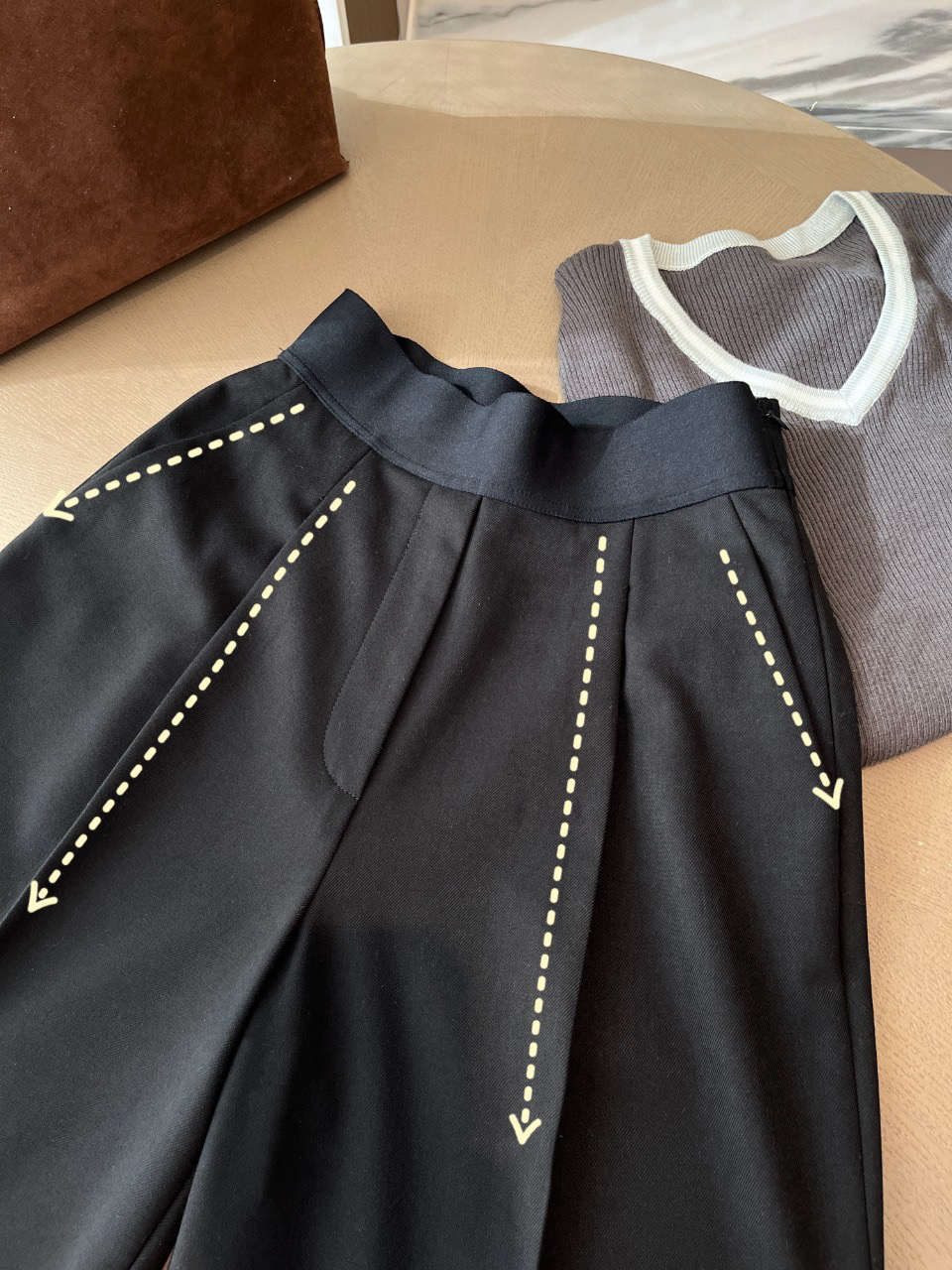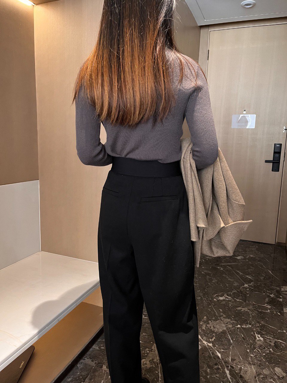 不是传统西裤腰头高腰!拼接加宽松紧织带、高度舒适不勒肉,遮藏小腹,也比传统腰袢更平整,基本不挑人穿~
