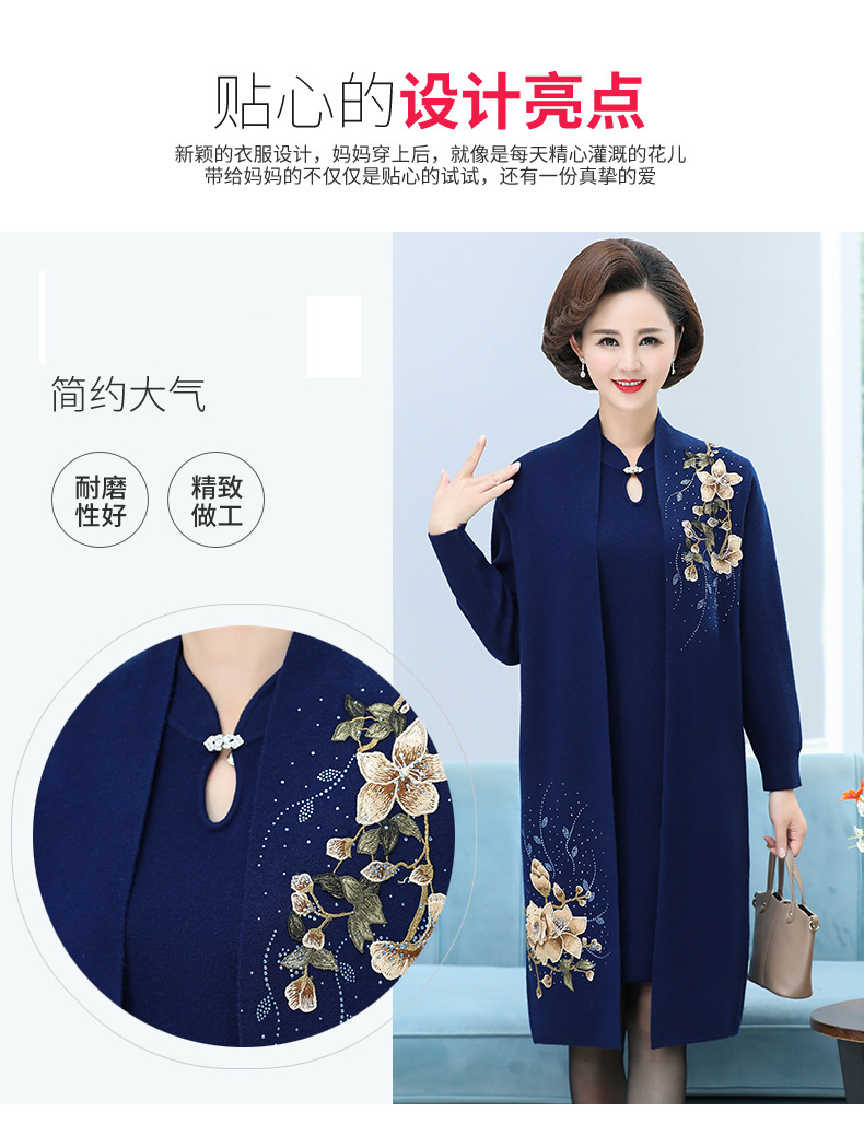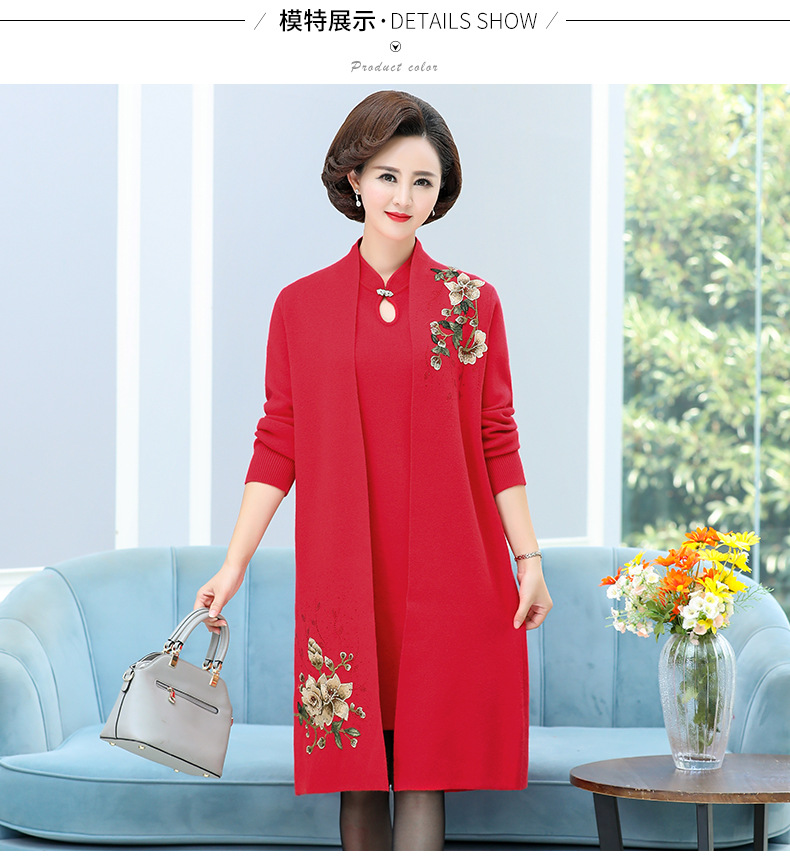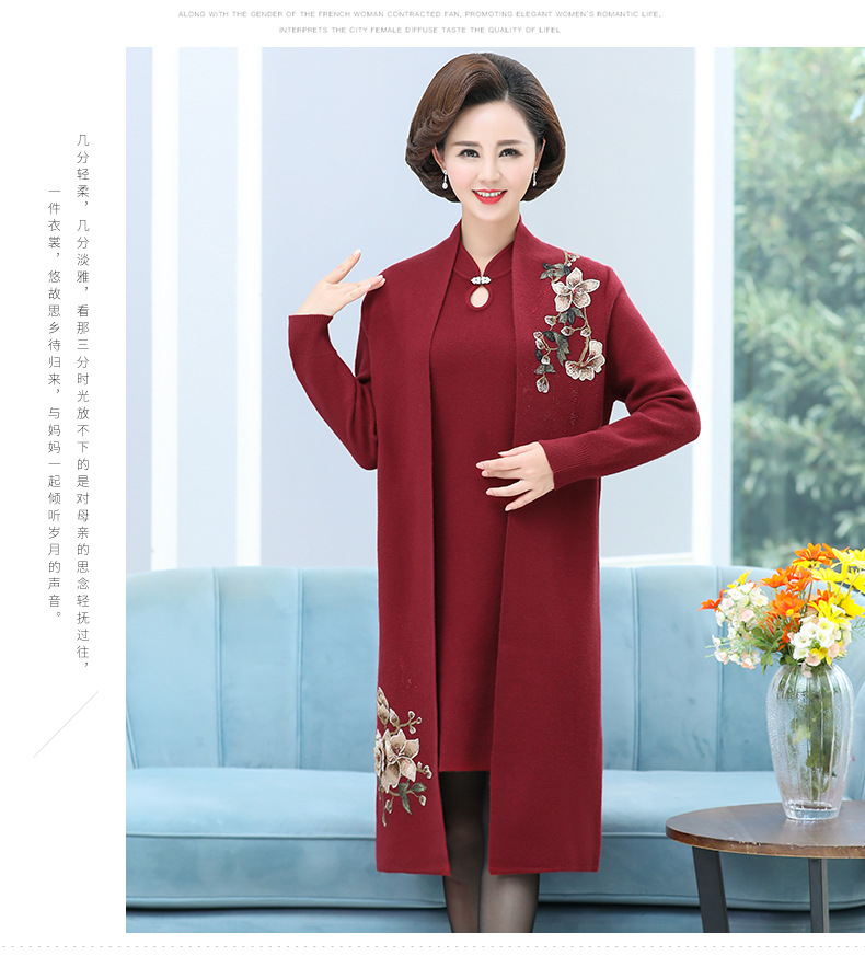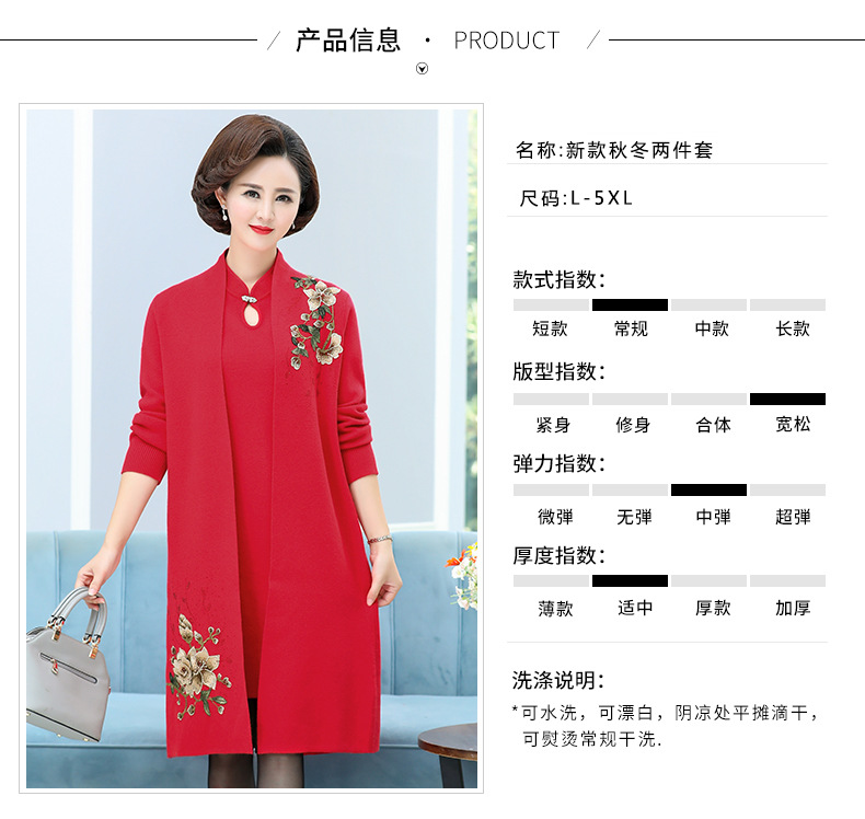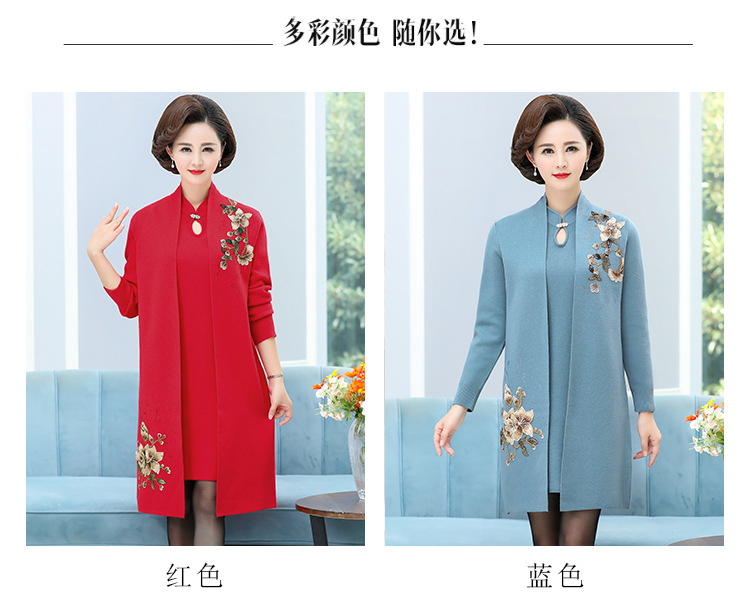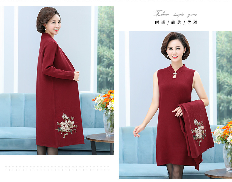 婚礼妈妈秋冬新款,喜婆婆宴礼服阔太太旗袍刺绣连衣裙两件套CC-86093