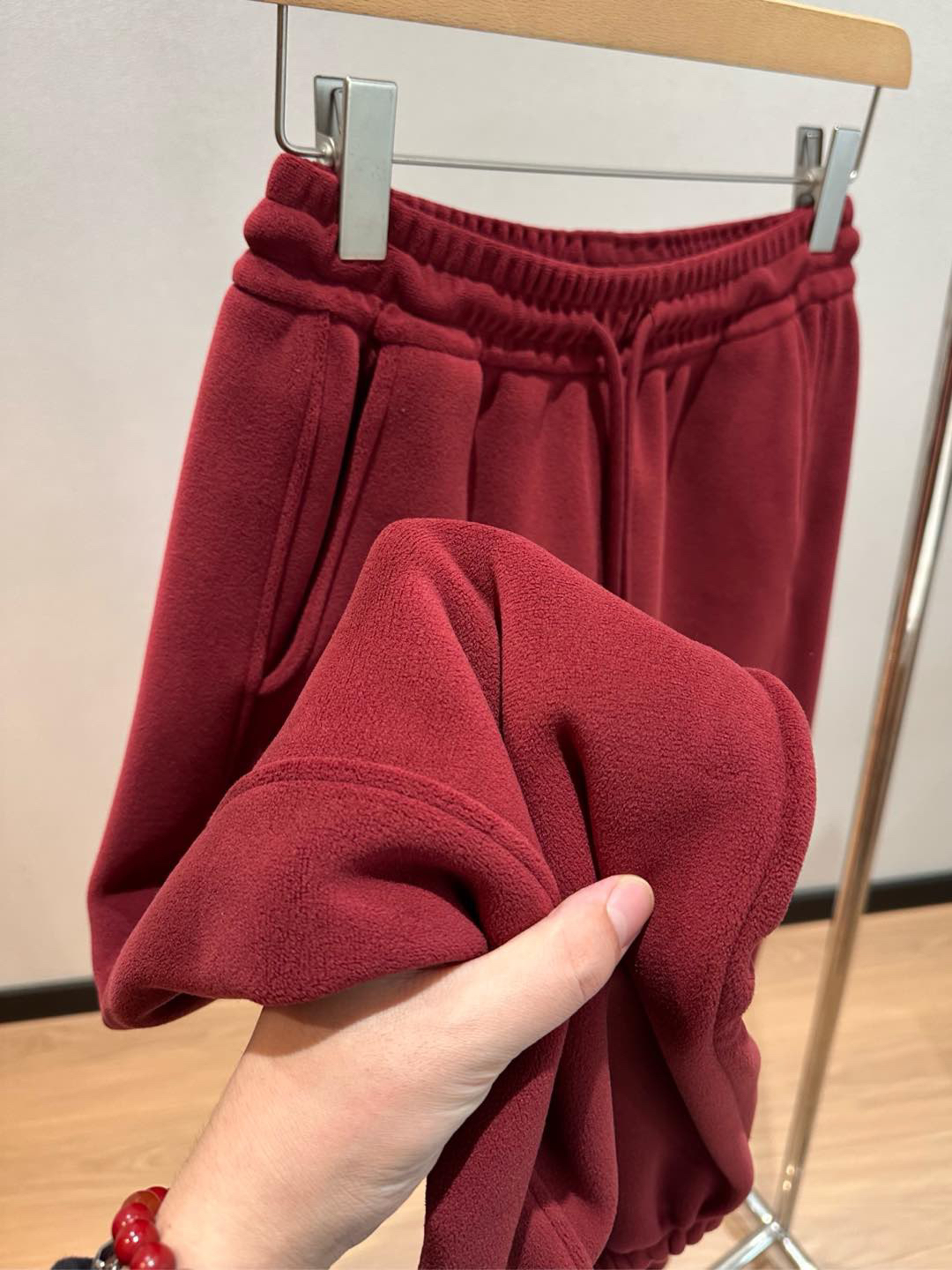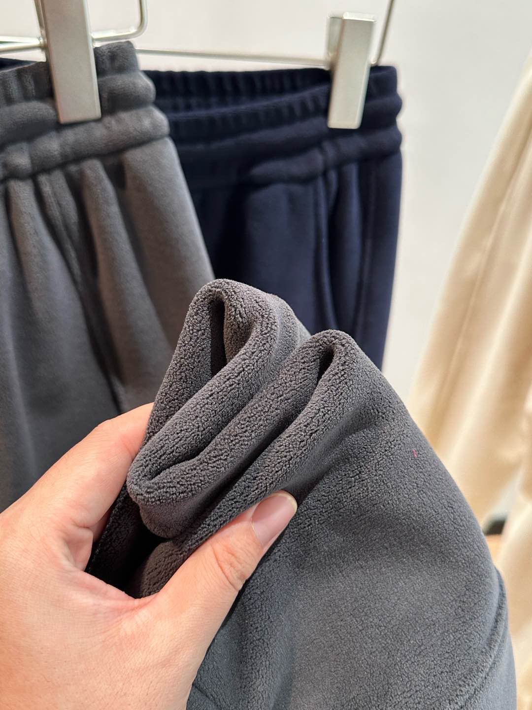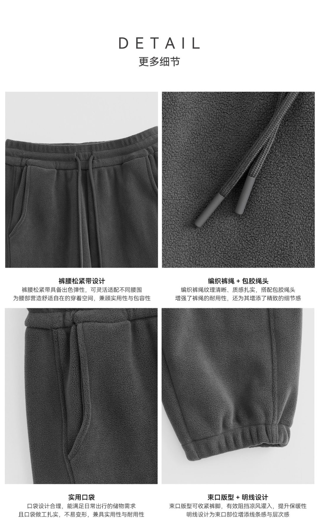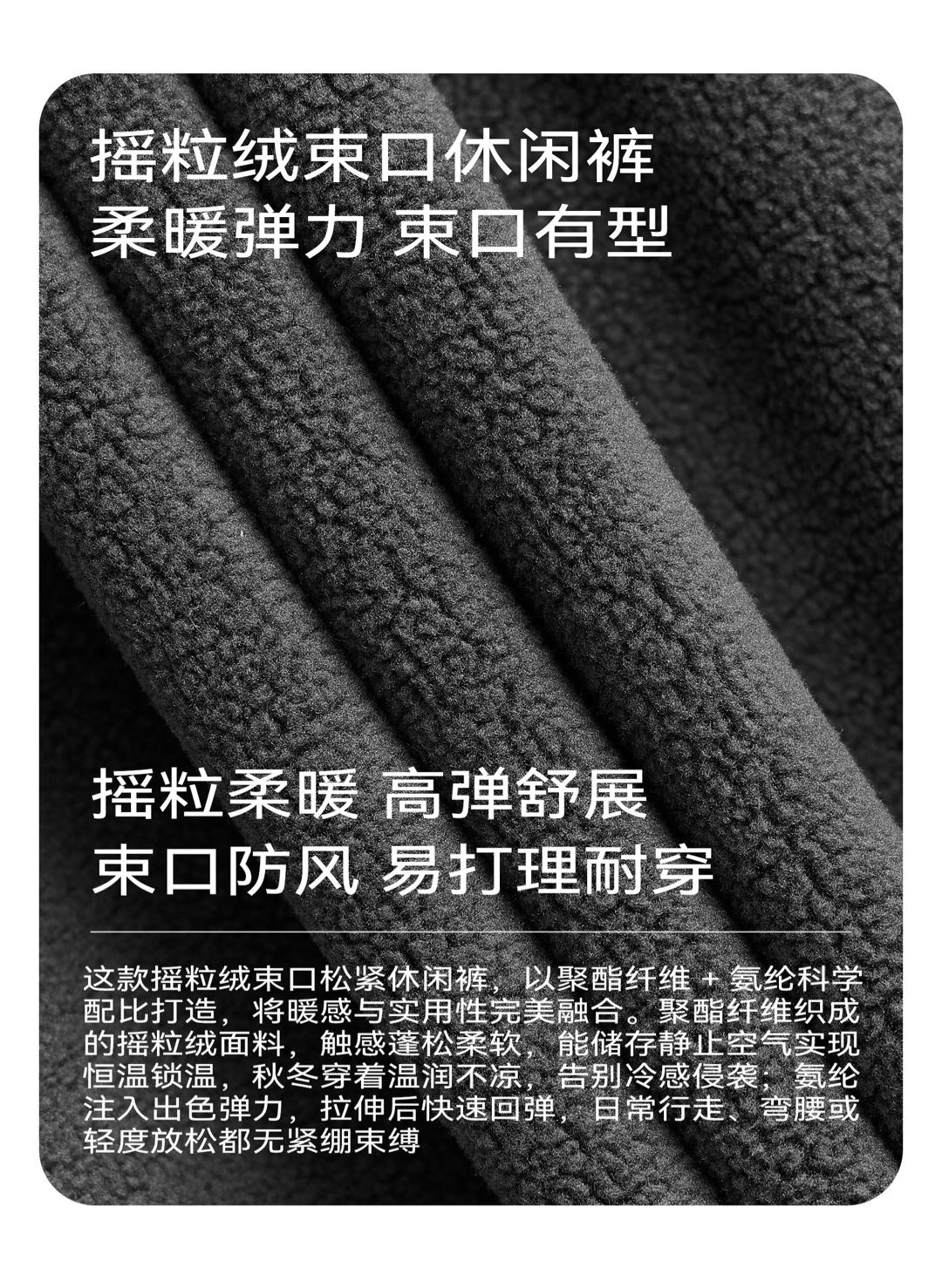 聚酯纤维摇粒绒面料蓬松密集,能储存静止空气实现恒温锁温,比普通面料暖感更持久,贴肤柔软无糙感。与厚重保暖裤相比,它依托摇粒绒高效锁温特性,无需增厚即可实现柔暖体验,穿着轻盈不臃肿,通勤穿搭更显利落。整体在保暖性、实用性与穿搭颜值上远超传统休闲裤,是秋冬日常的高性价比之选。