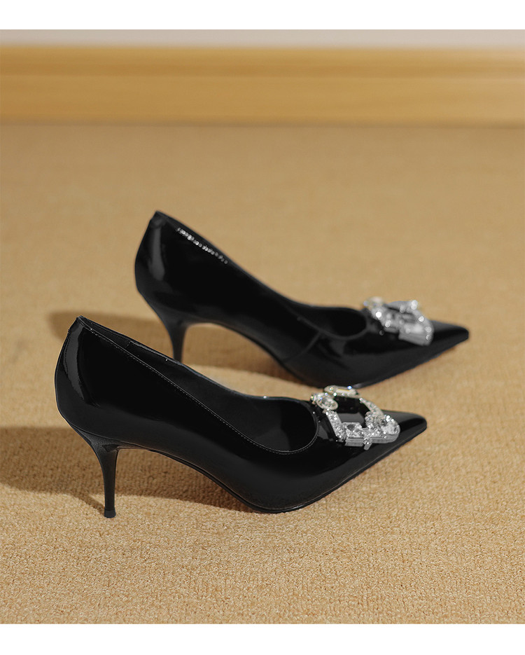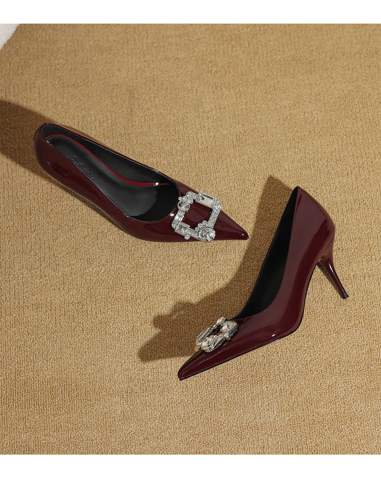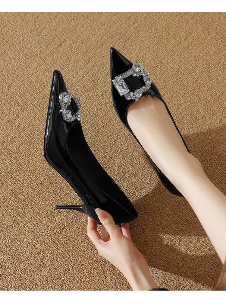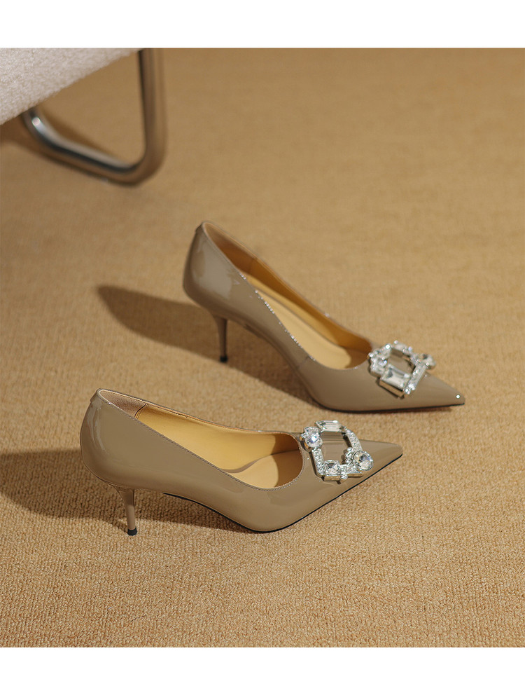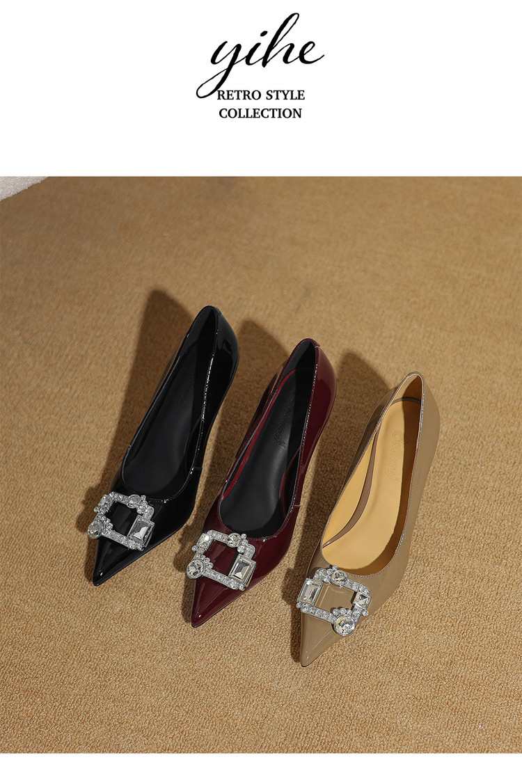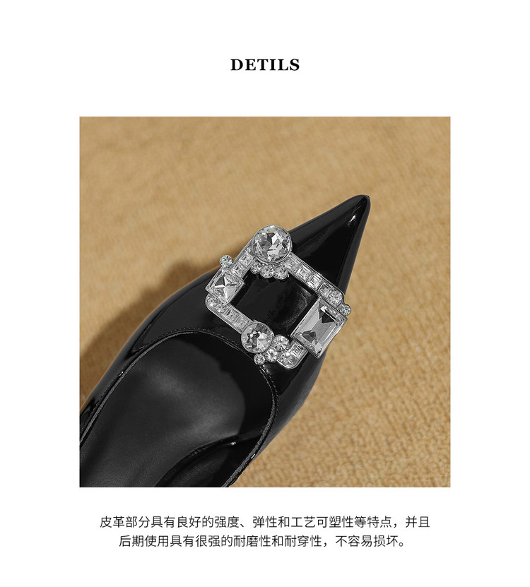 货号:25069帮面材质: 头层牛漆皮内里材质:羊皮鞋垫材质:羊皮鞋底材质:牛筋底颜色:黑色/车厘子红/杏色跟高:8CM掌宽:8CM尺码:34-39