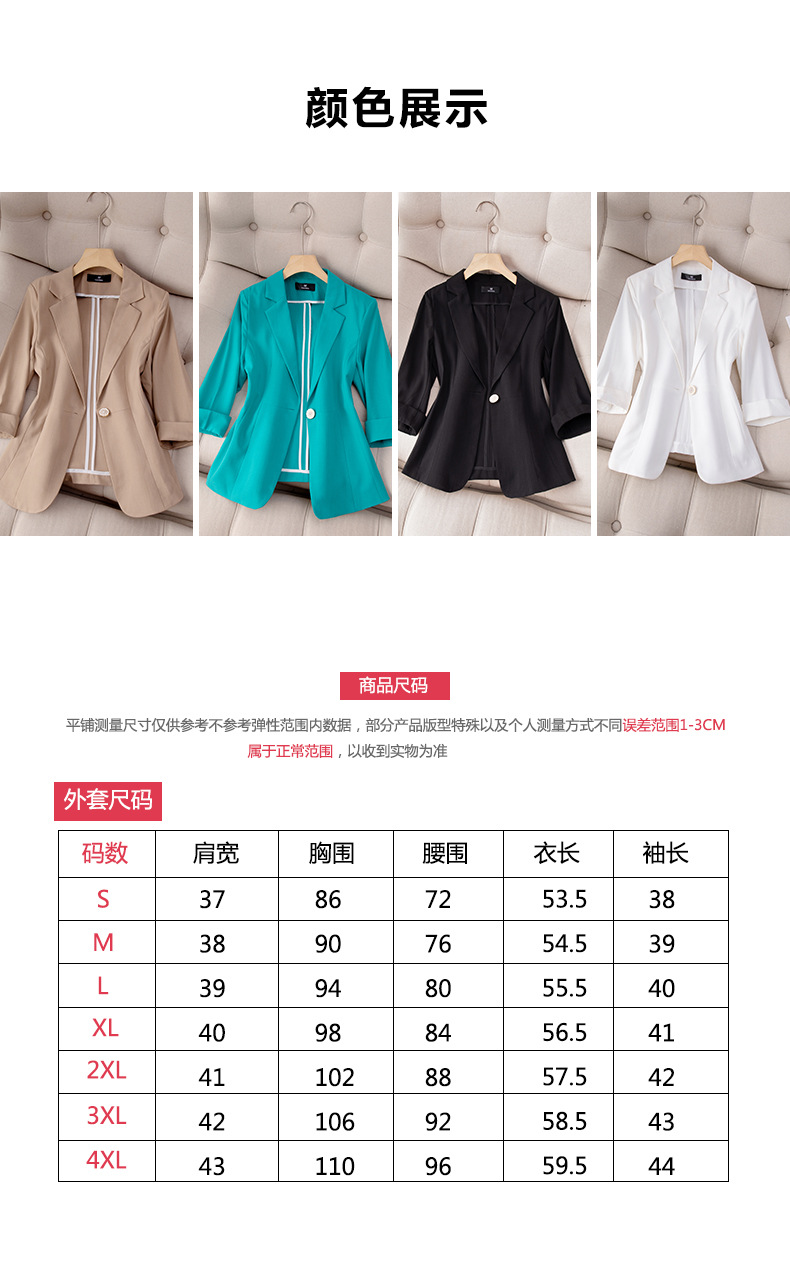时尚休闲,七分袖西装外套女小个子新款春夏气质短款小西服上衣QL-6316