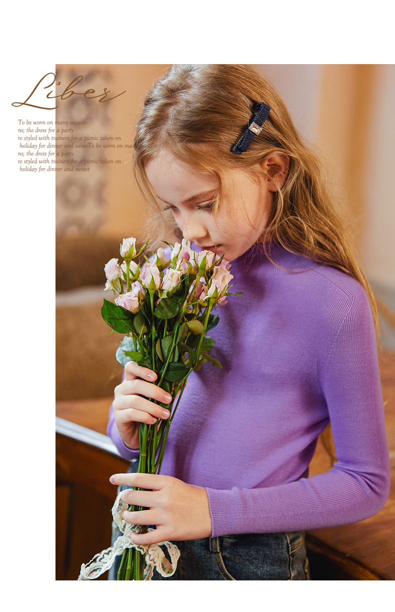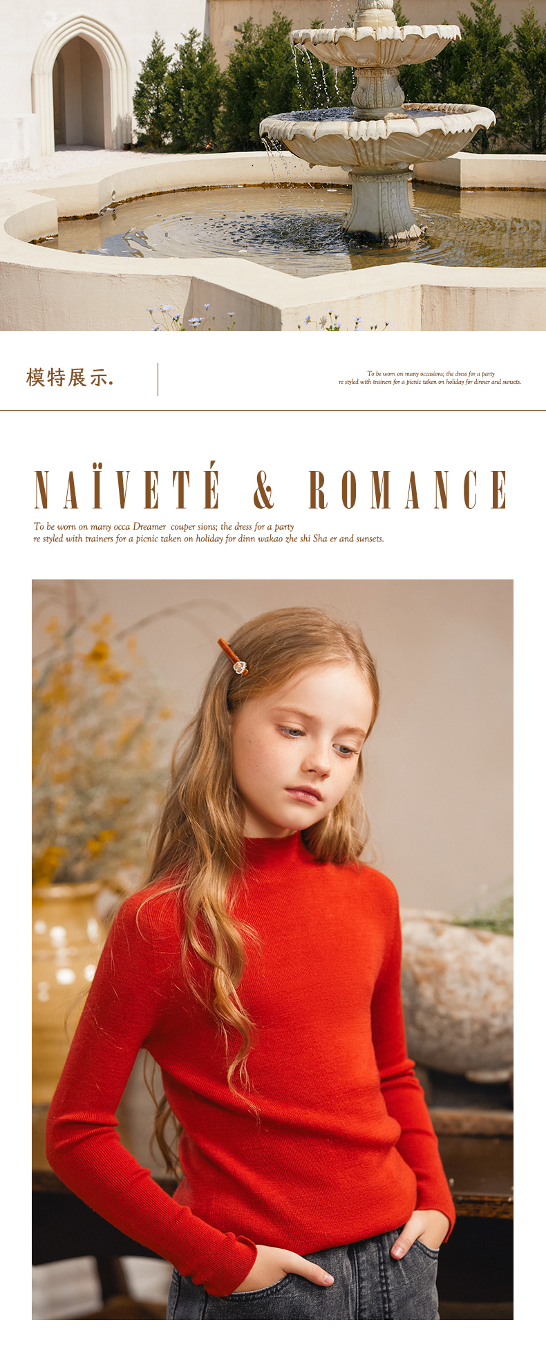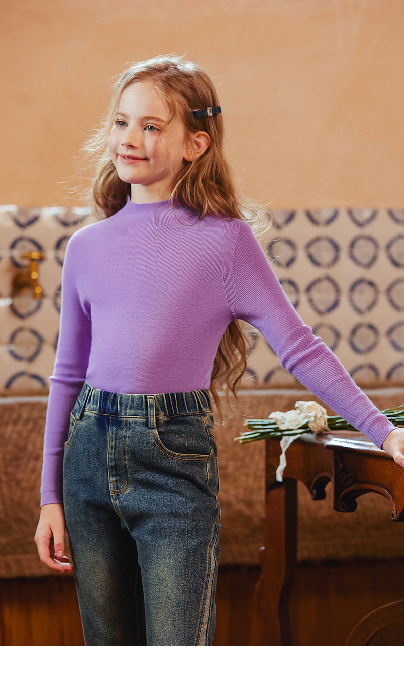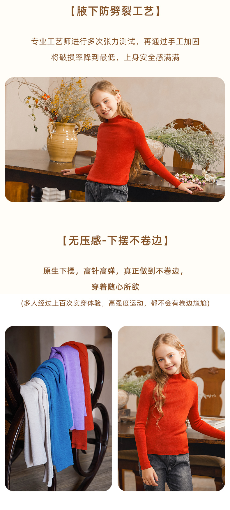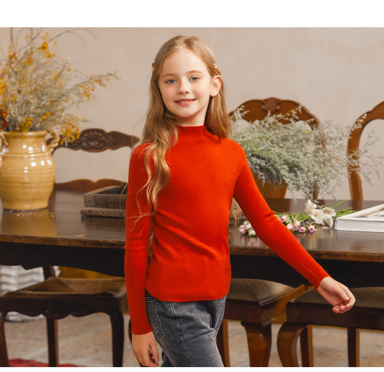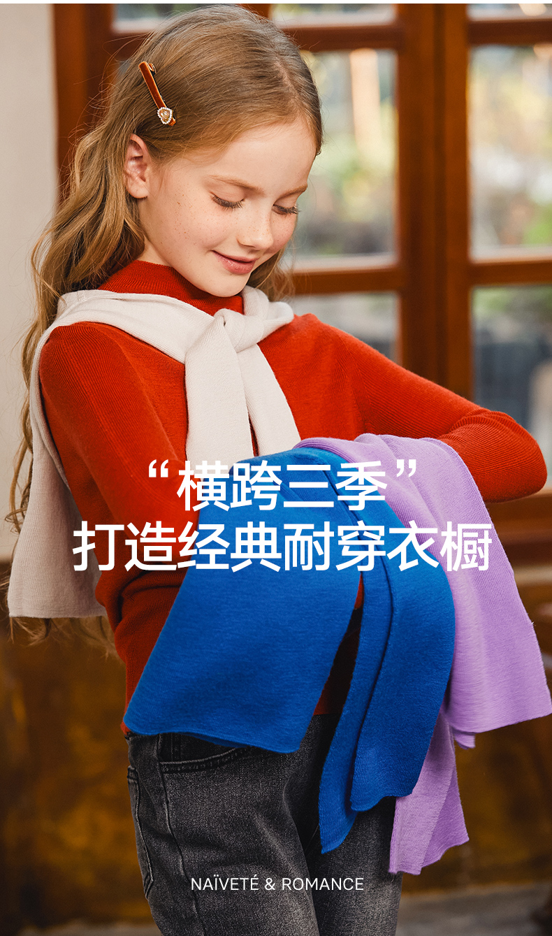 LittleNaive秋冬款女童针织衫无缝一体大童毛衣半高领儿童羊毛衫