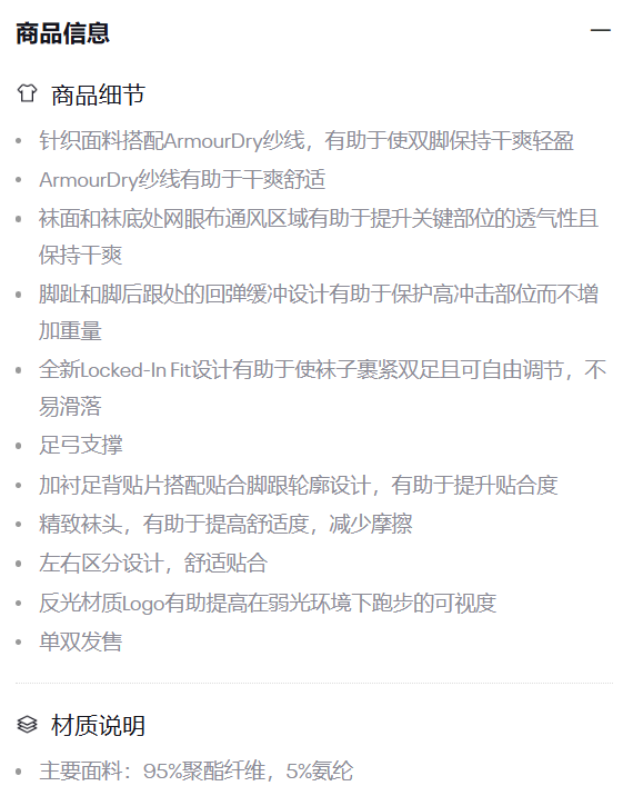 【12.21圣诞专享礼遇】 安德玛男女同款UA ArmourDry跑步浅口袜1376075-001