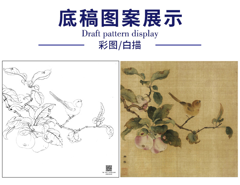 【大彩图】林椿工笔画白描底稿宋画小品《果熟来禽图》桃枝临摹勾线花鸟线稿GH08