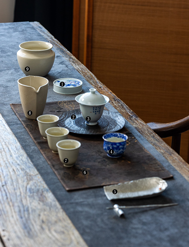 茶香记晴山素华岁寒三友盖置景德镇陶瓷手绘配件镇纸赏玩摆件