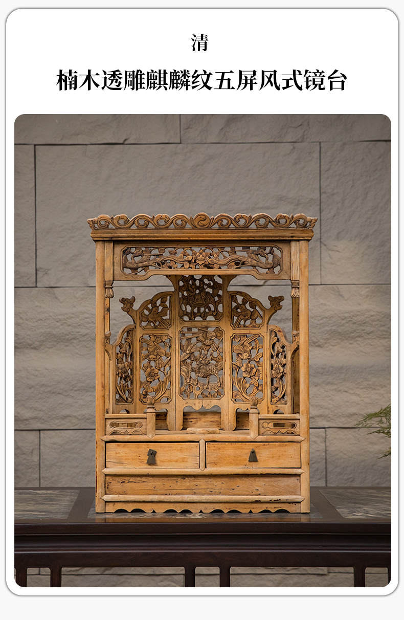清 楠木透雕麒麟纹五屏风式镜台