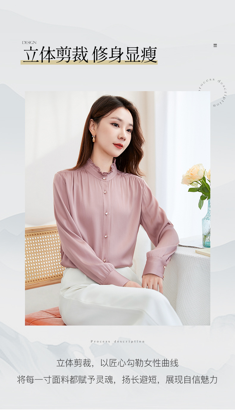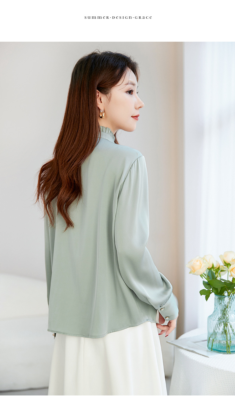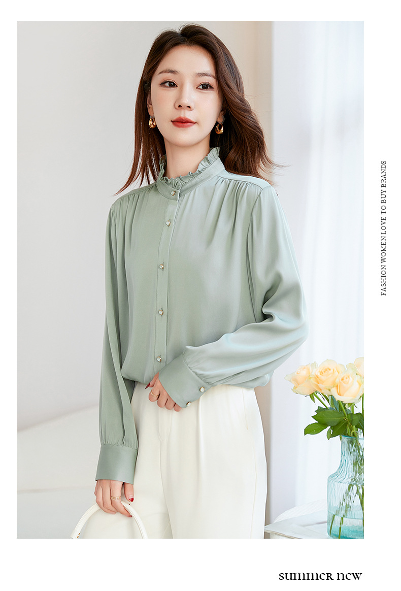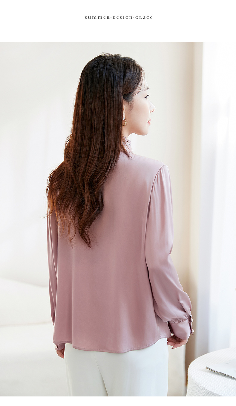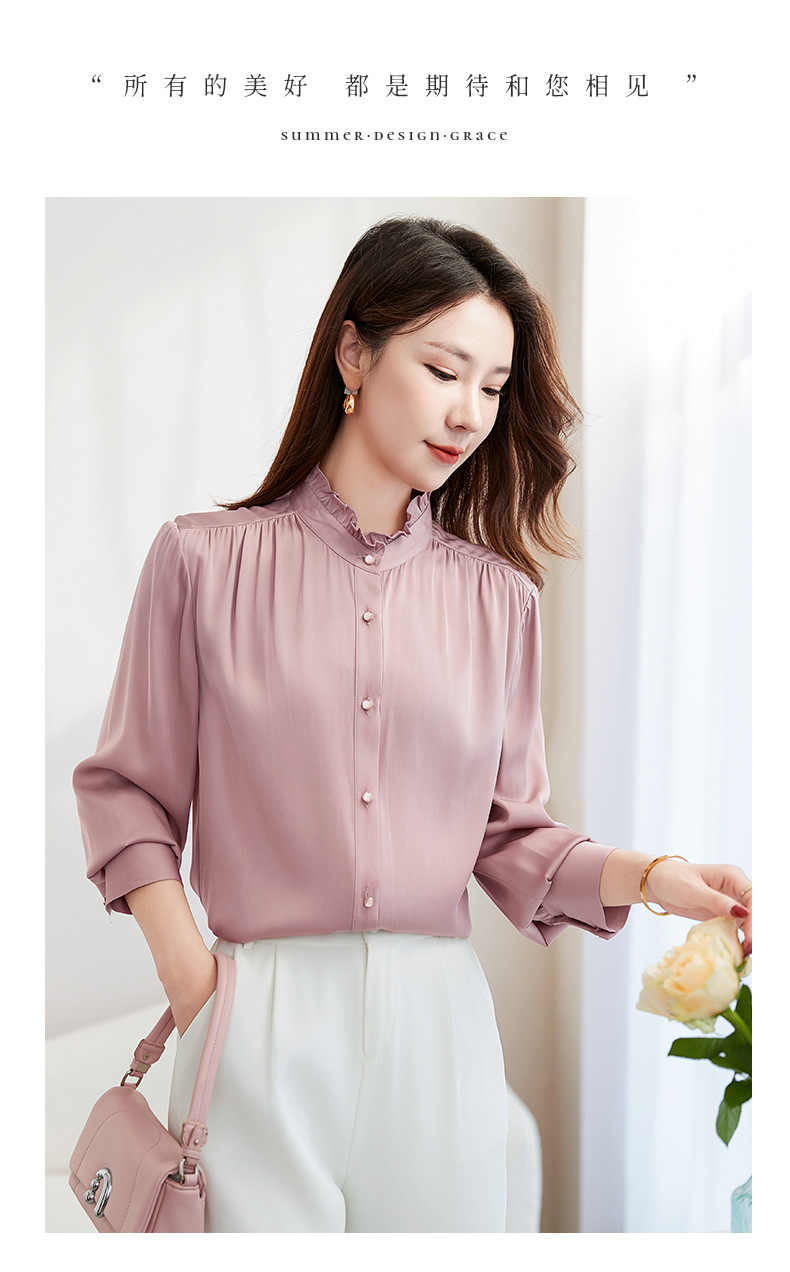 QS-22599630原创春夏新款长袖真丝衬衫女桑蚕丝显瘦衬衣女22599630