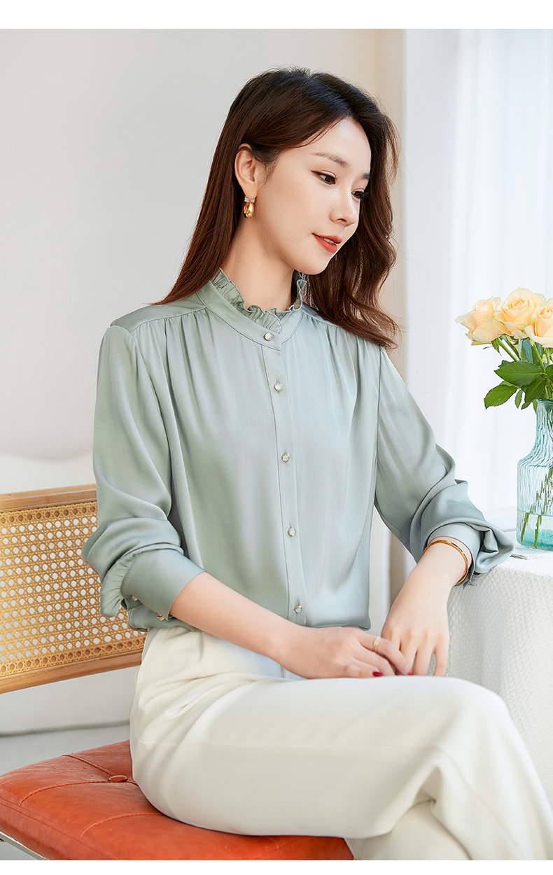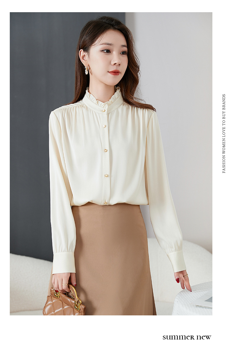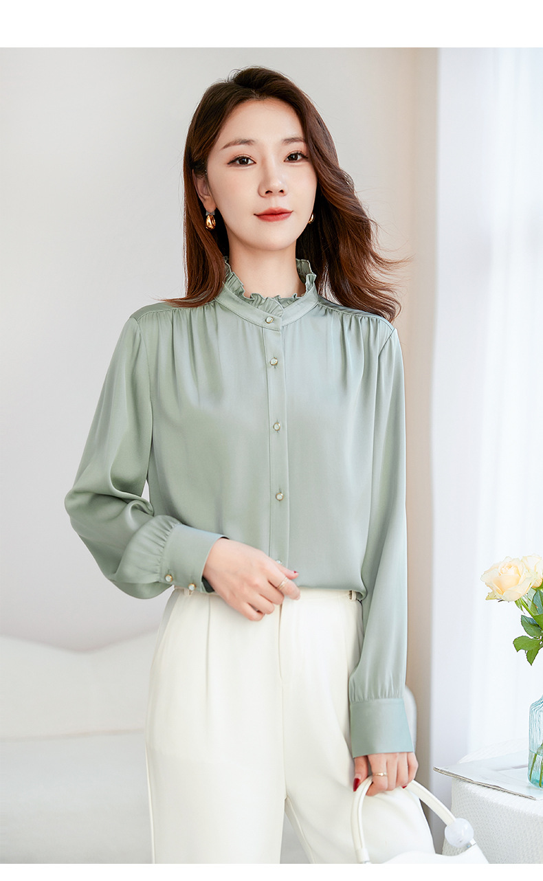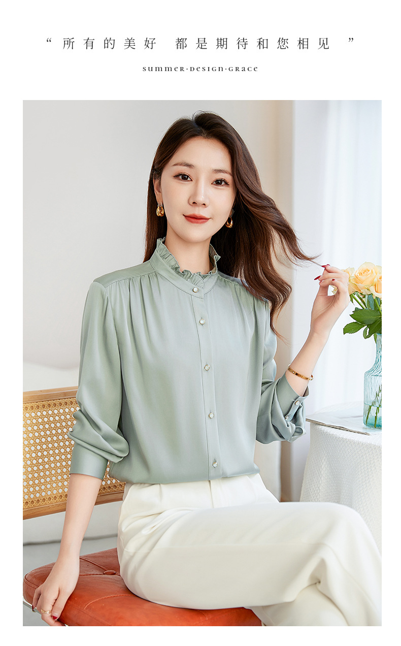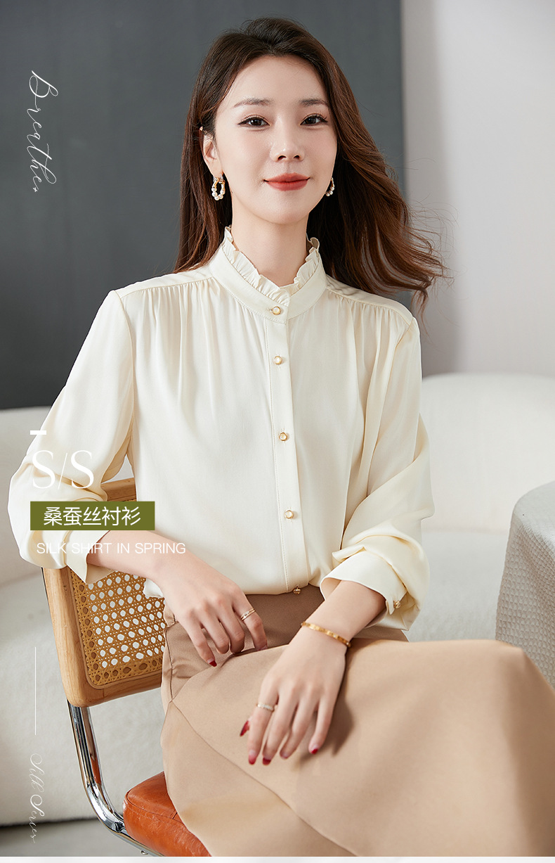 QS-22599630原创春夏新款长袖真丝衬衫女桑蚕丝显瘦衬衣女22599630