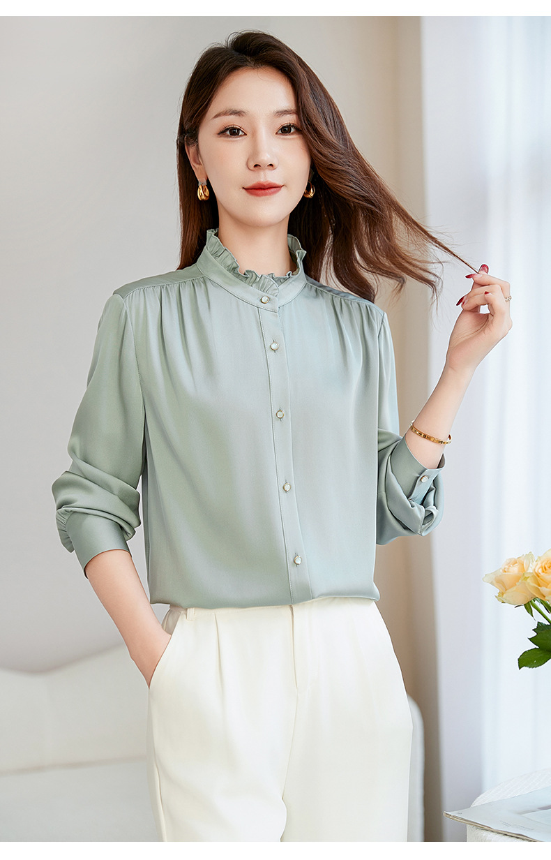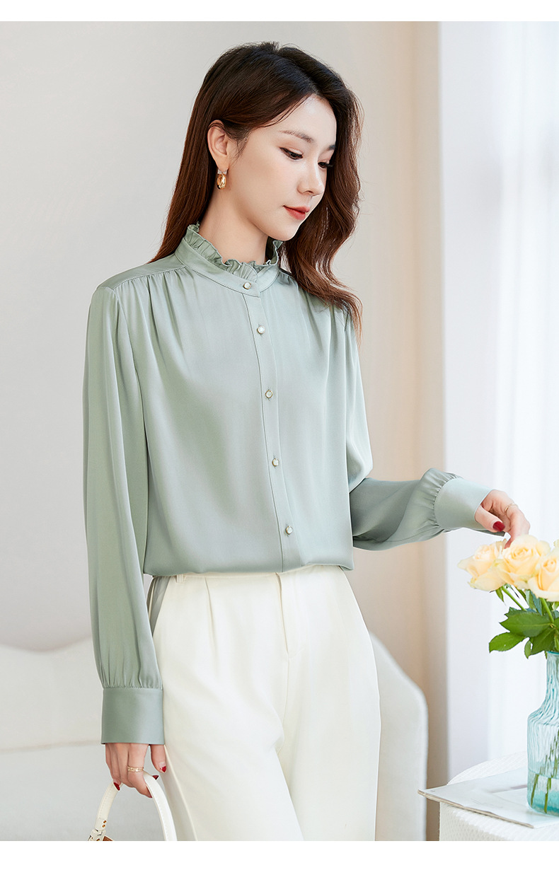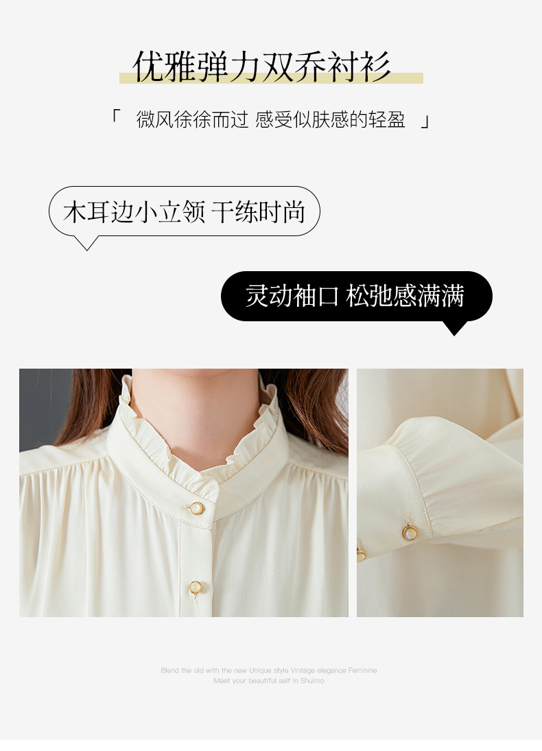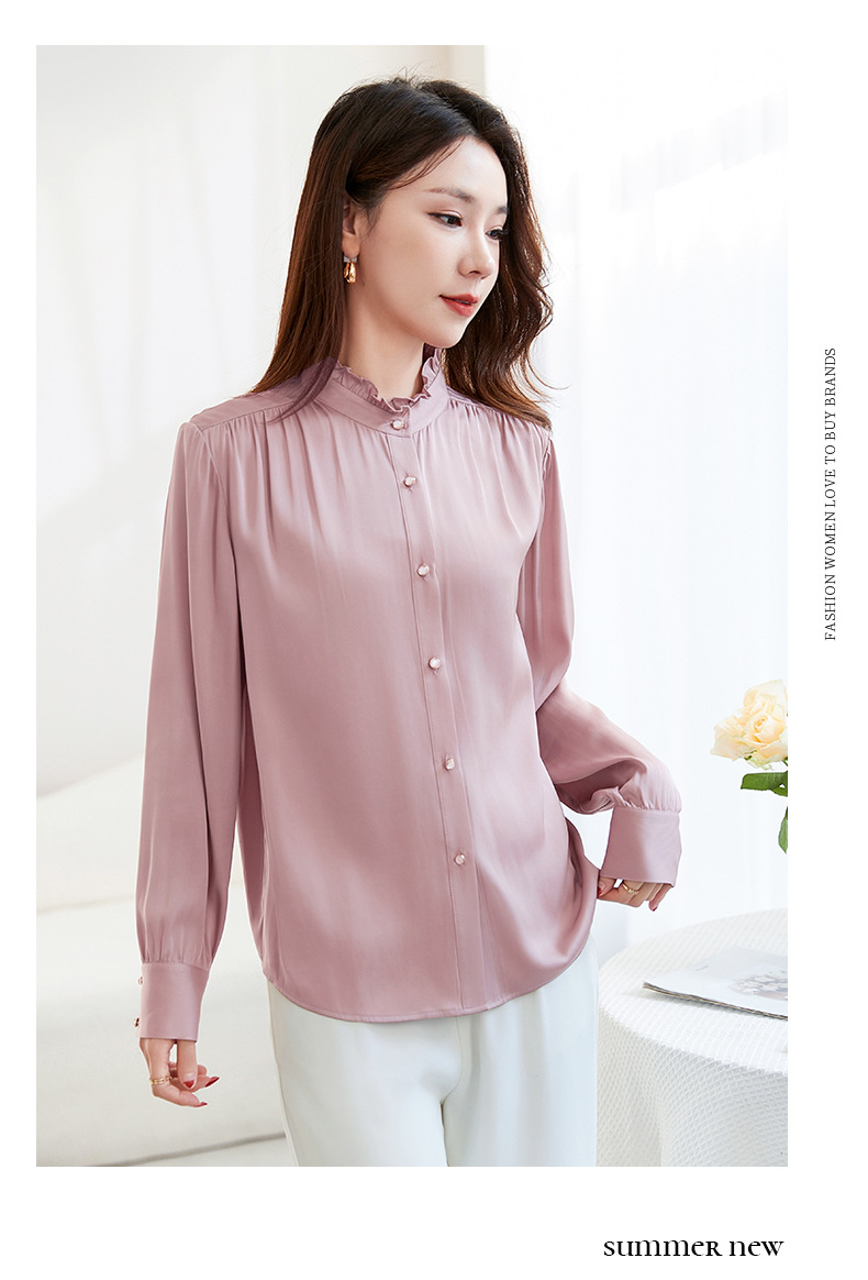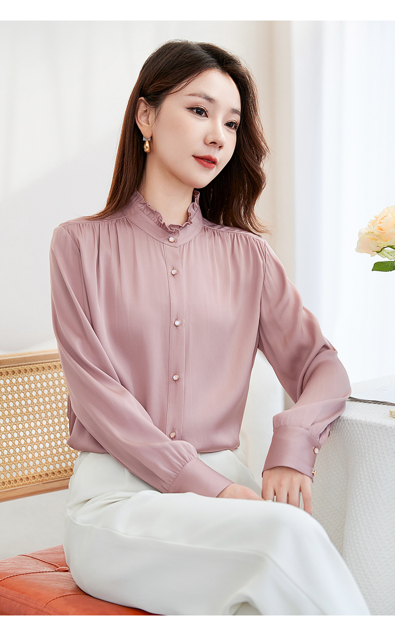 QS-22599630原创春夏新款长袖真丝衬衫女桑蚕丝显瘦衬衣女22599630