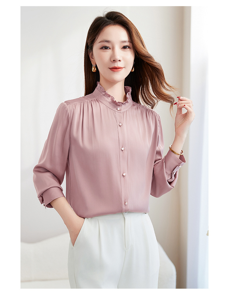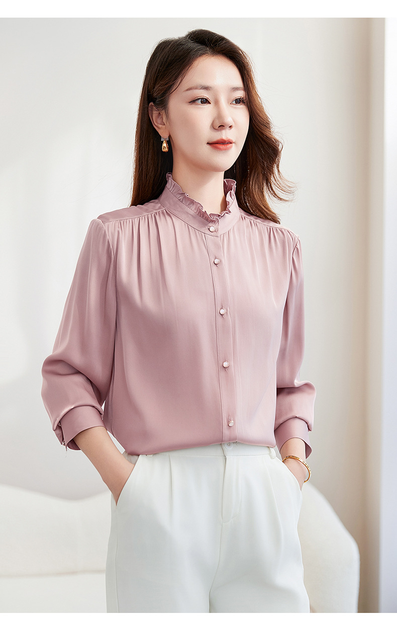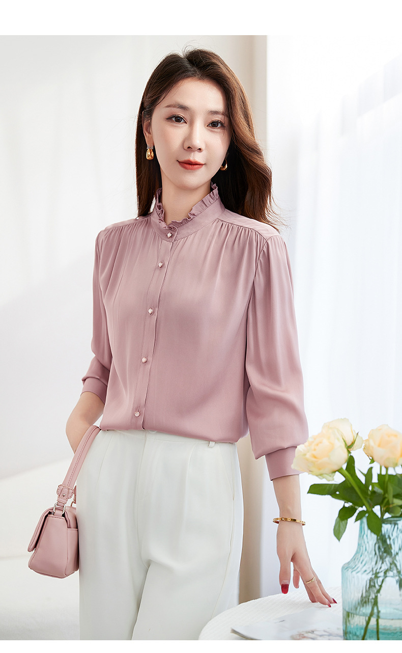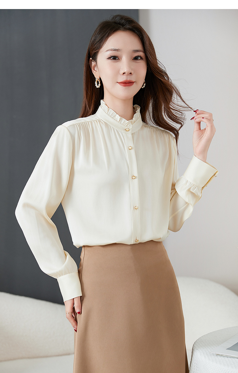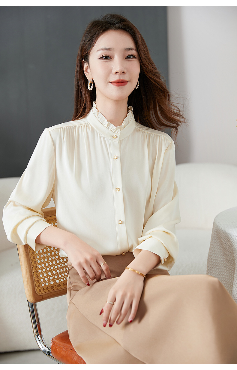 QS-22599630原创春夏新款长袖真丝衬衫女桑蚕丝显瘦衬衣女22599630