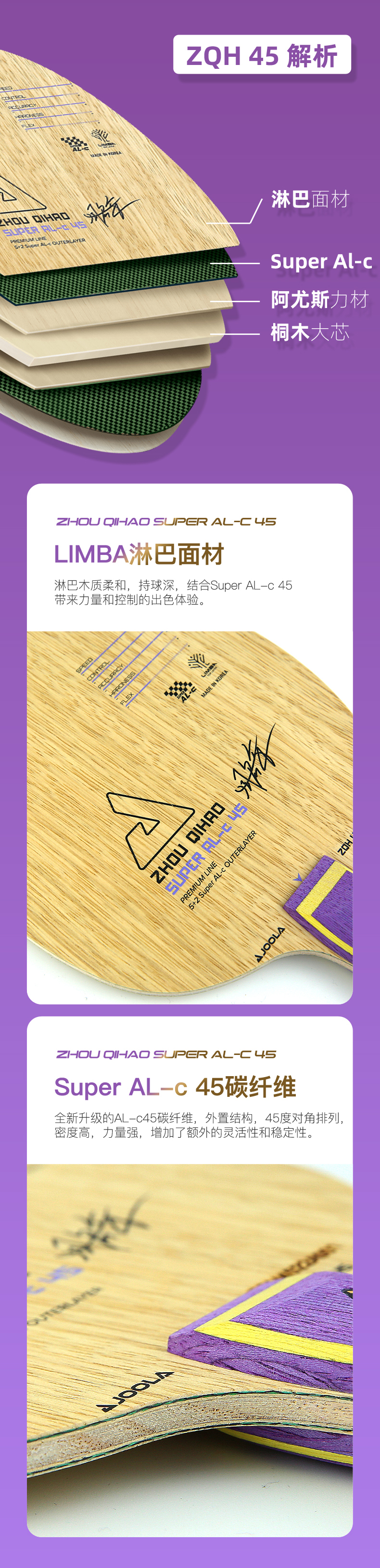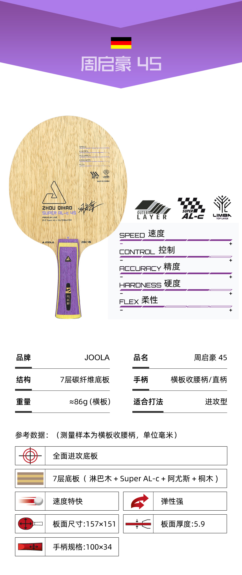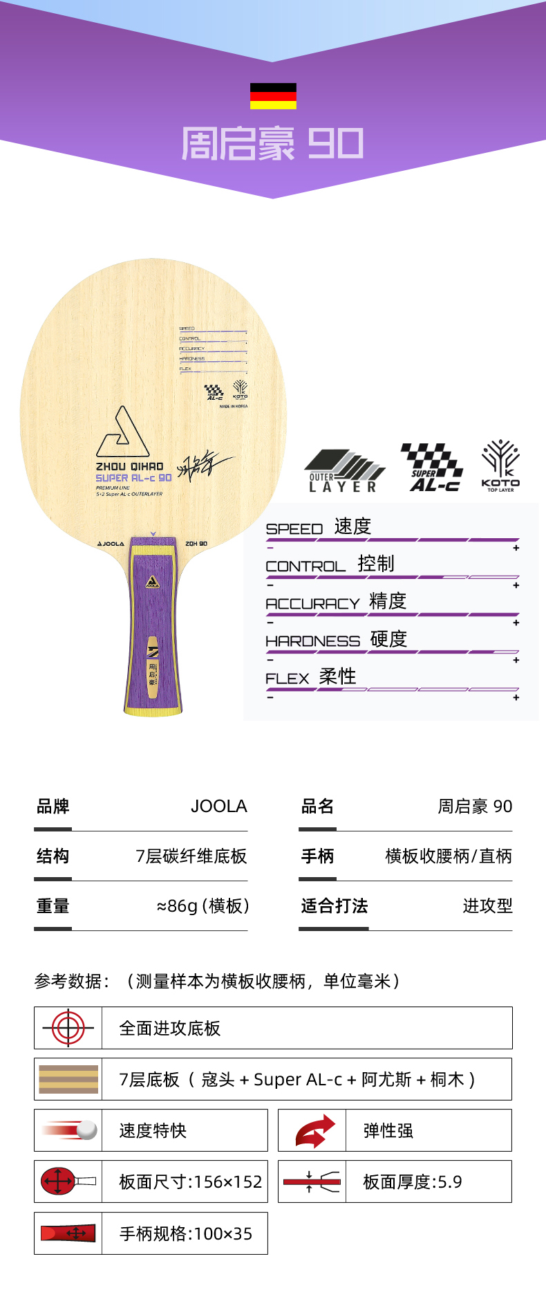 JOOLA优拉尤拉专业乒乓球底板7层周启豪款ZQH9045碳素纤维ALC