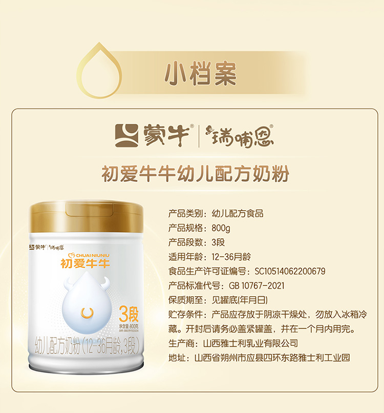 蒙牛初爱牛牛3段幼儿配方奶粉800g