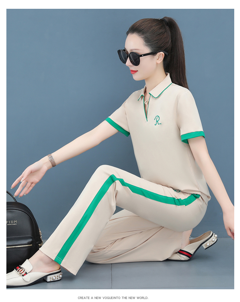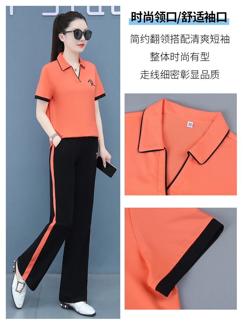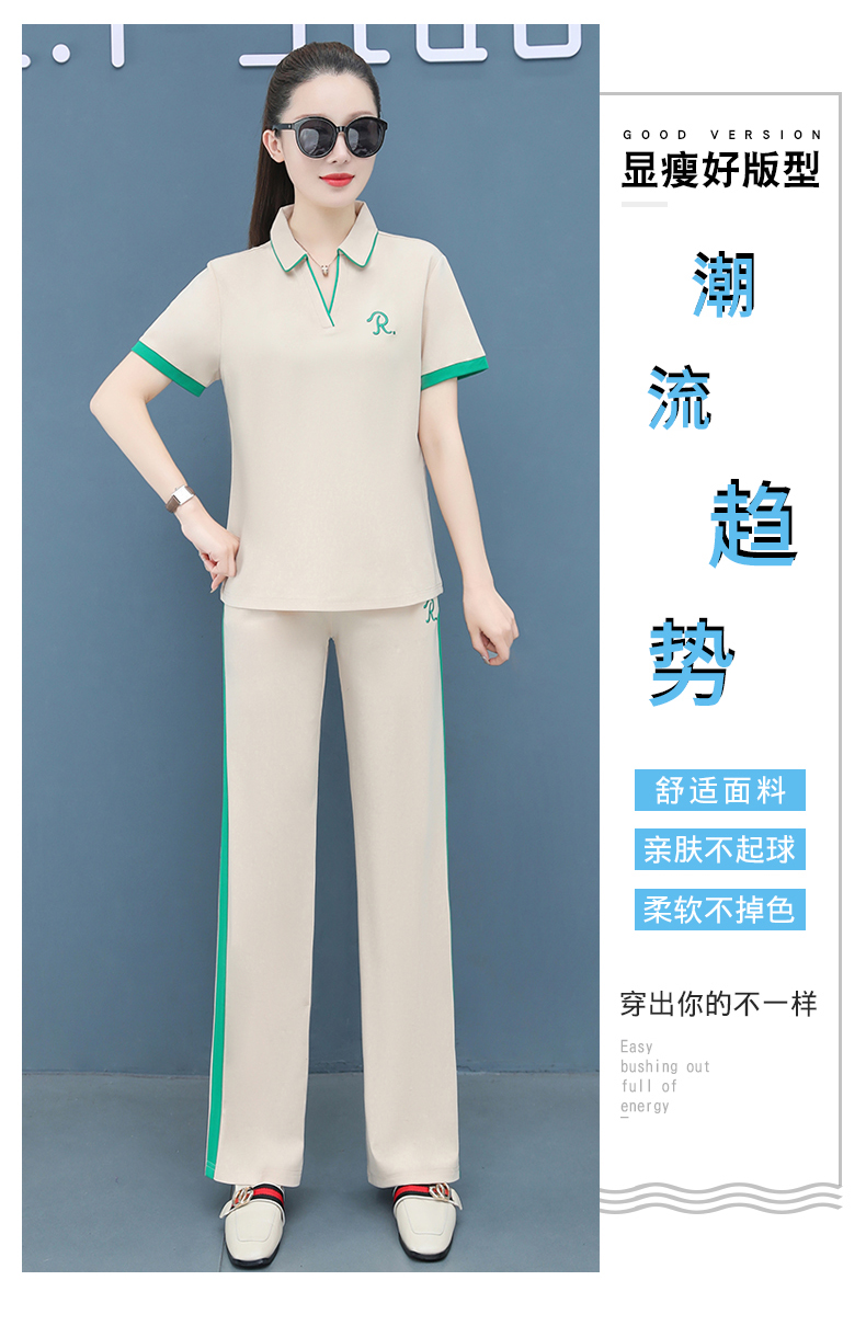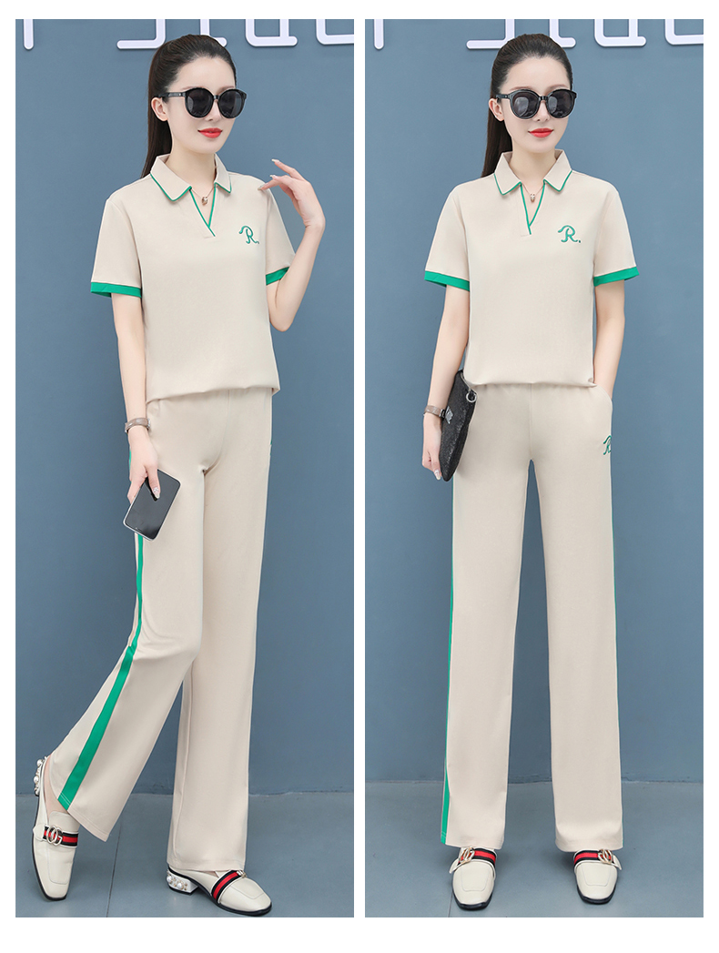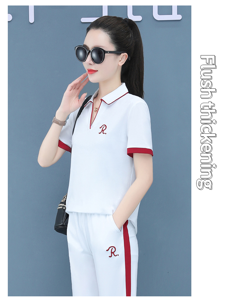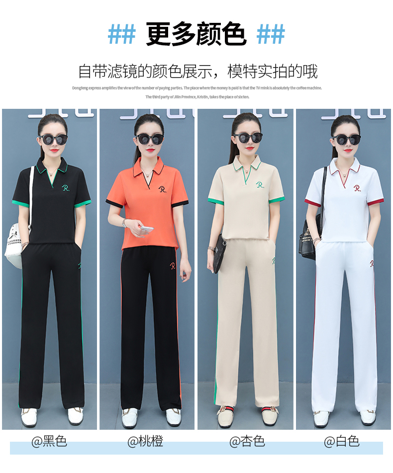 SP-103-23119X翻领休闲运动服套装女士2023年夏季新款刺绣减龄白色阔腿裤两件套