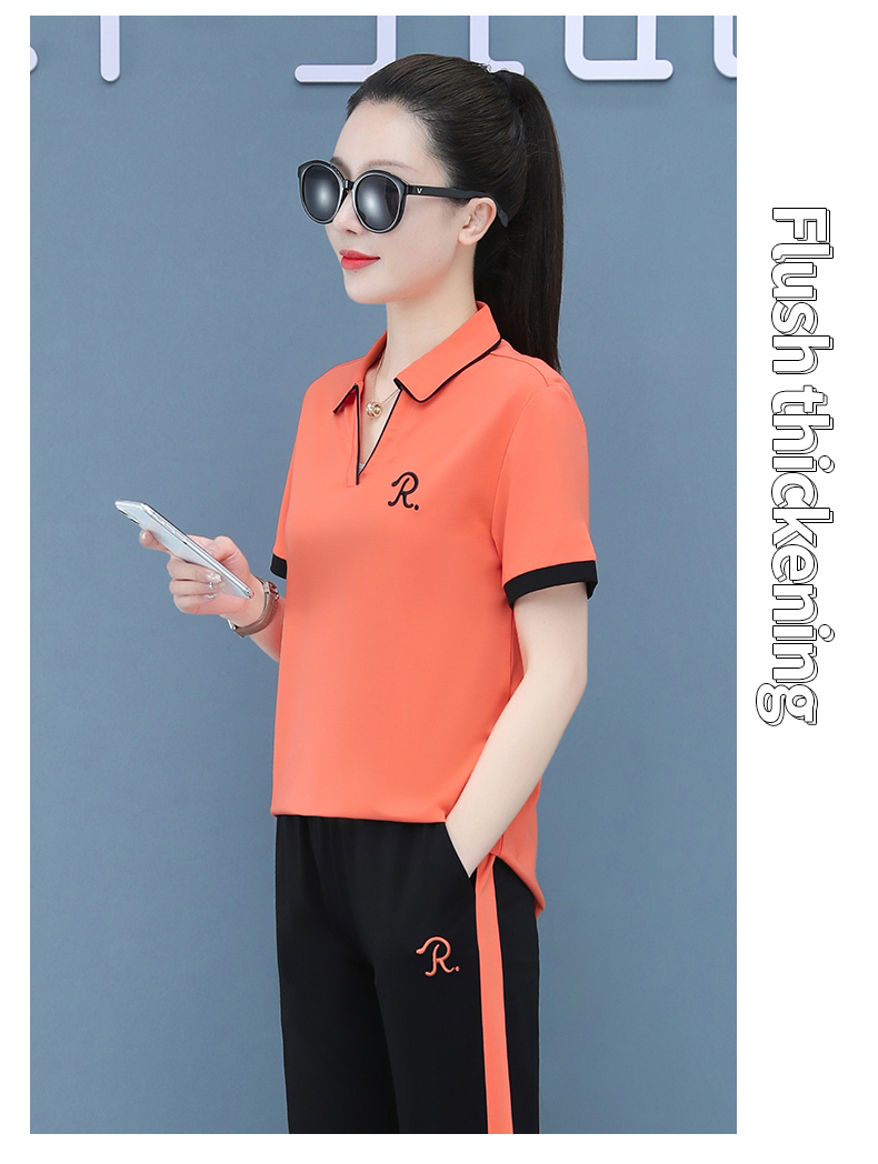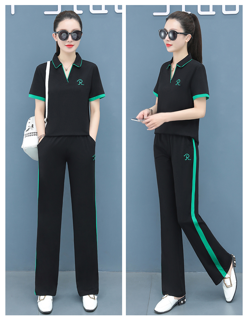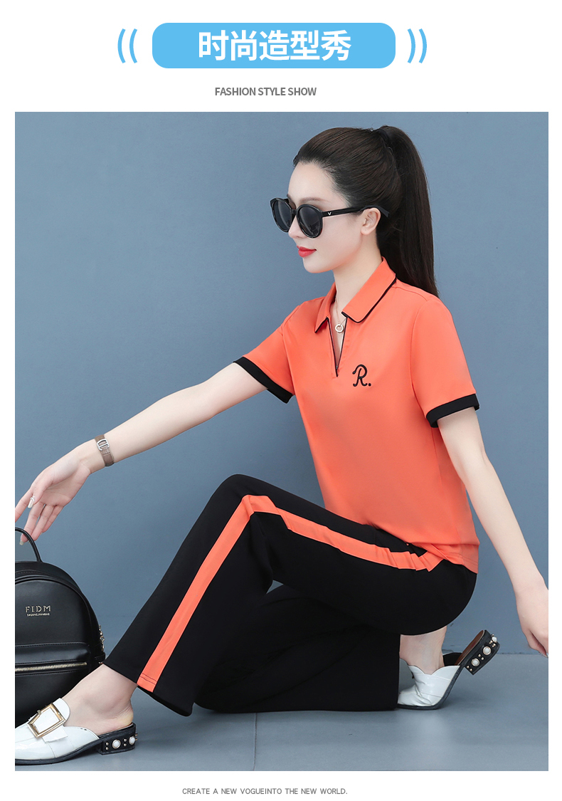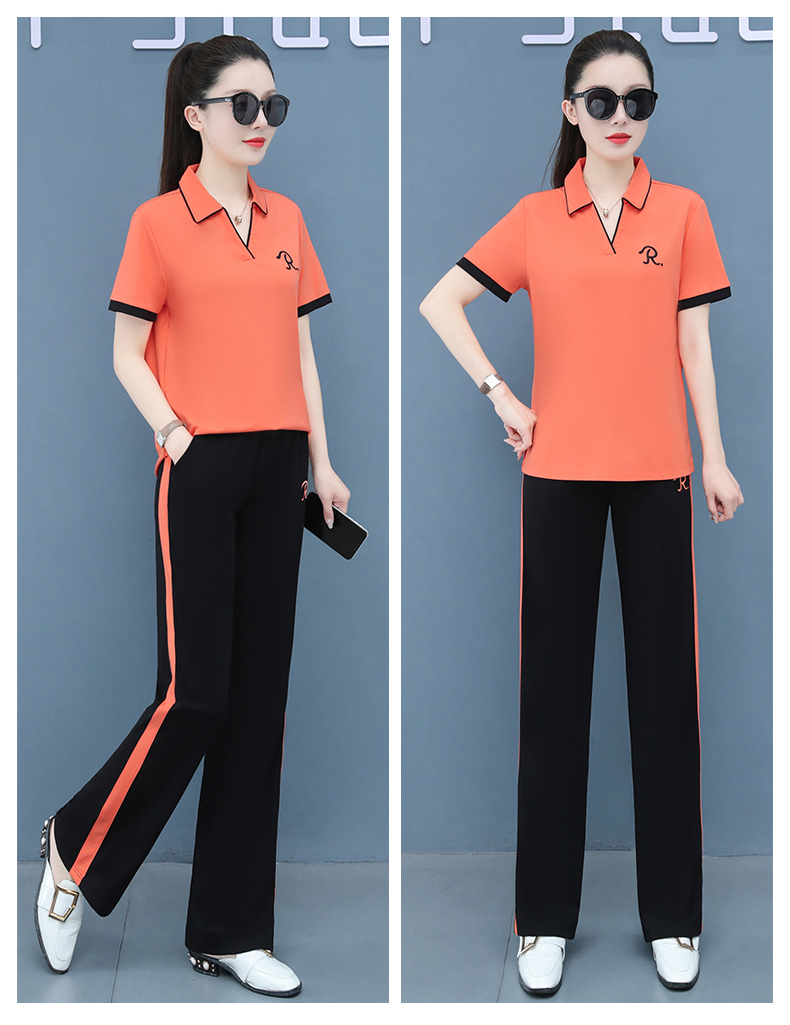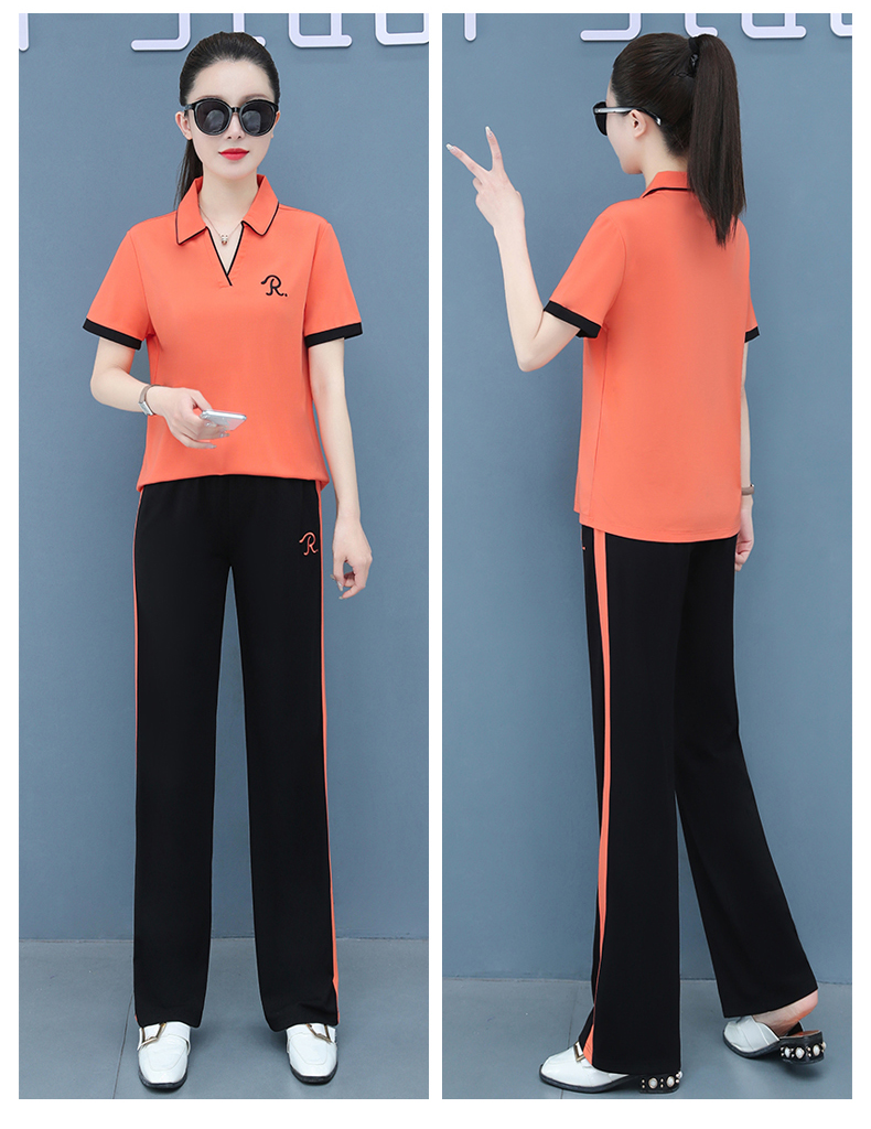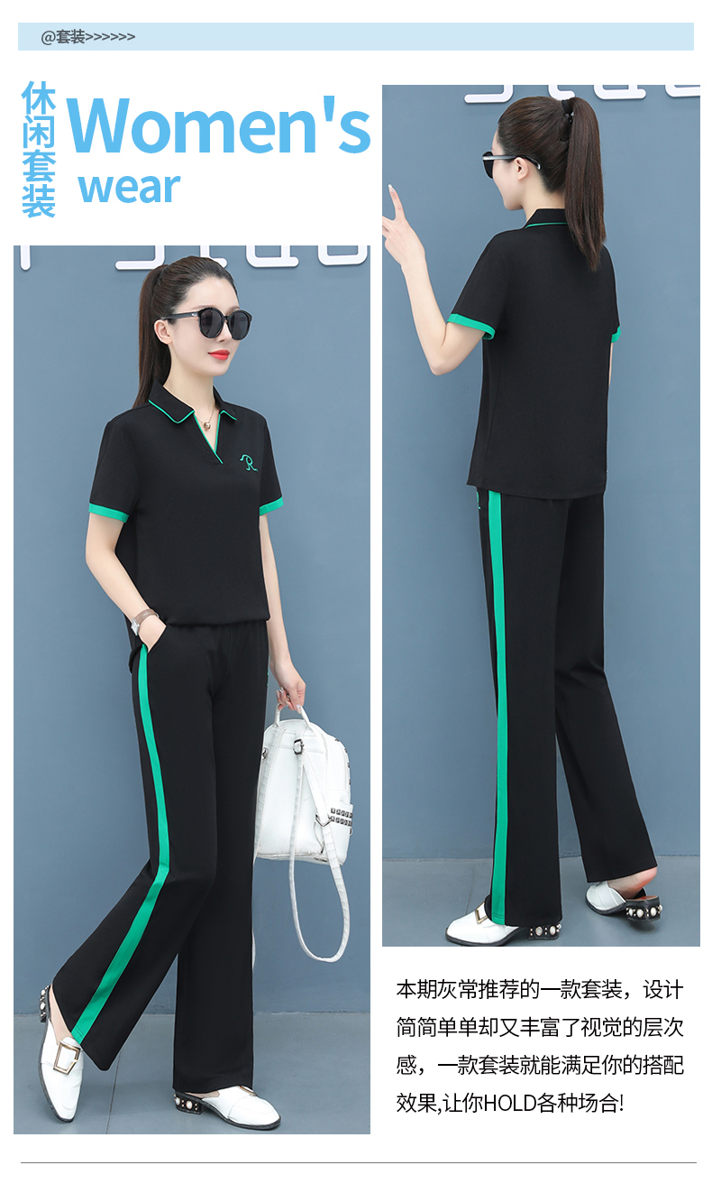 SP-103-23119X翻领休闲运动服套装女士2023年夏季新款刺绣减龄白色阔腿裤两件套
