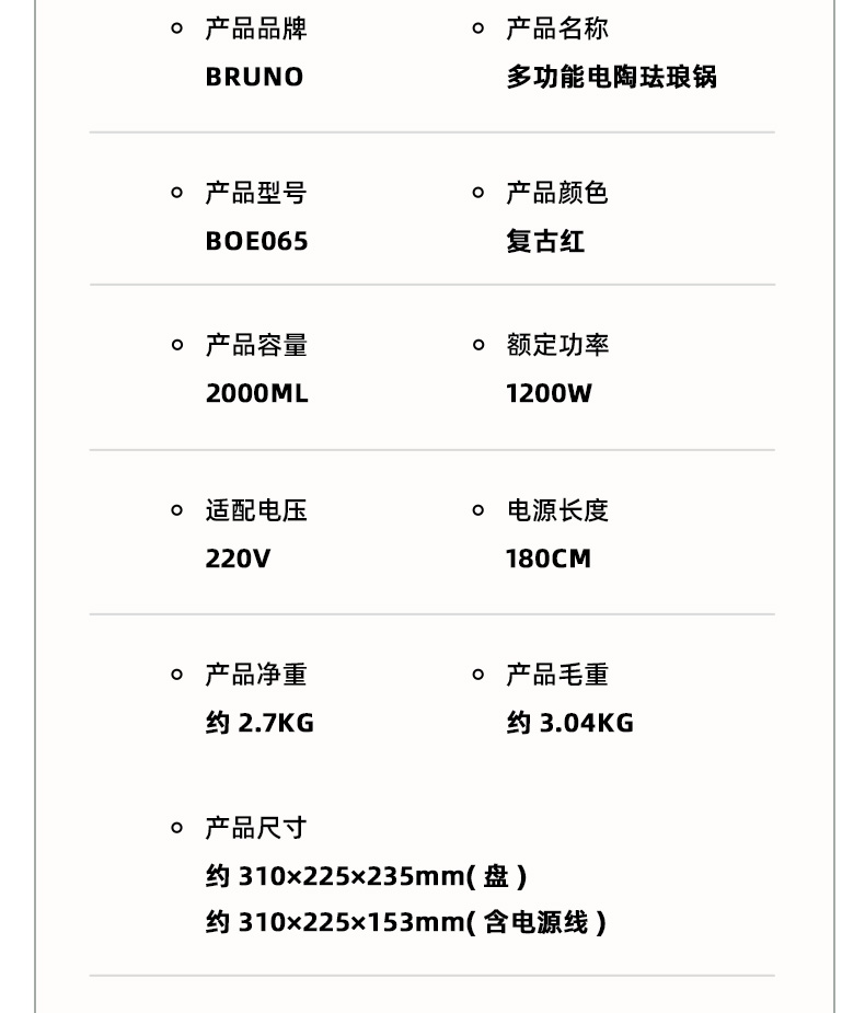 日本BRUNO博鲁诺电陶珐琅锅BOE065