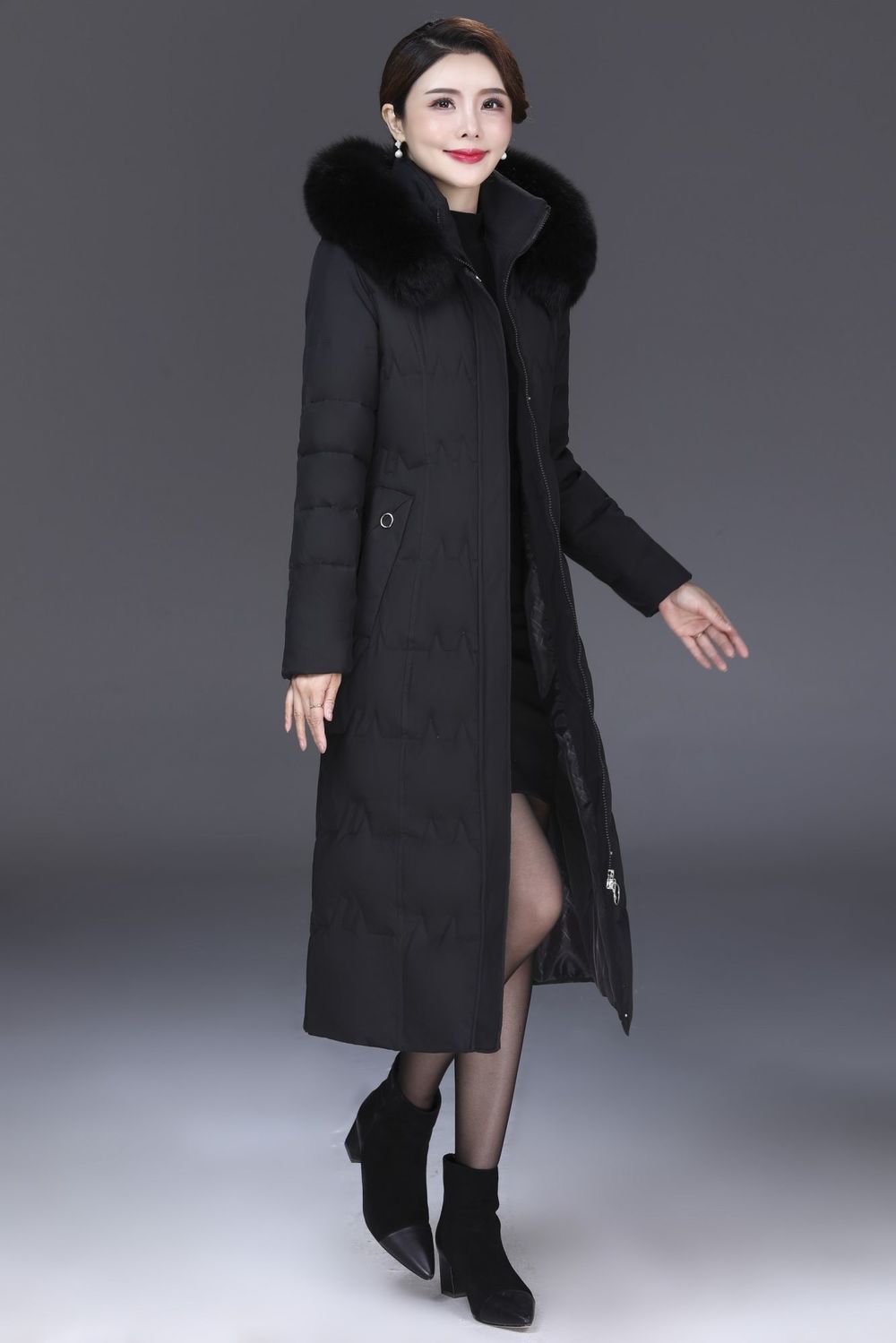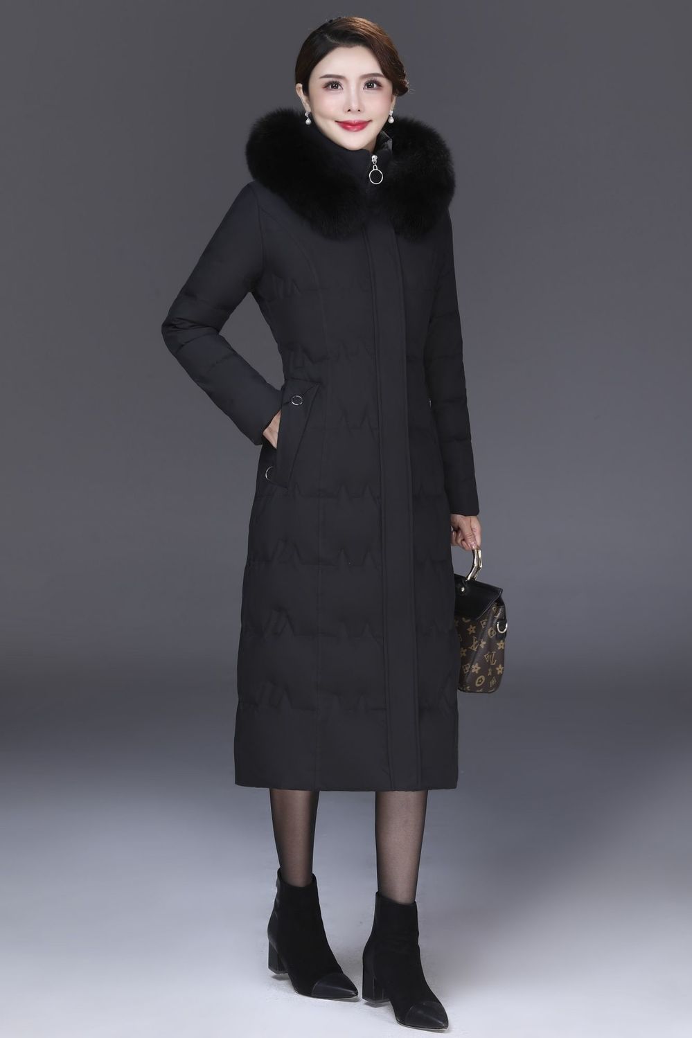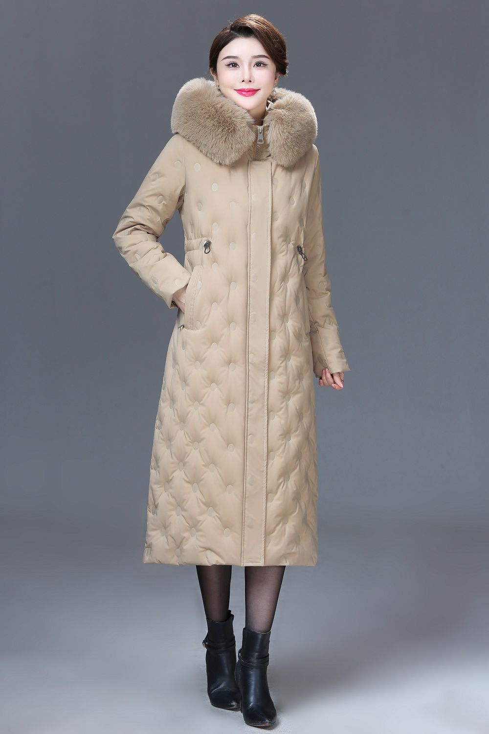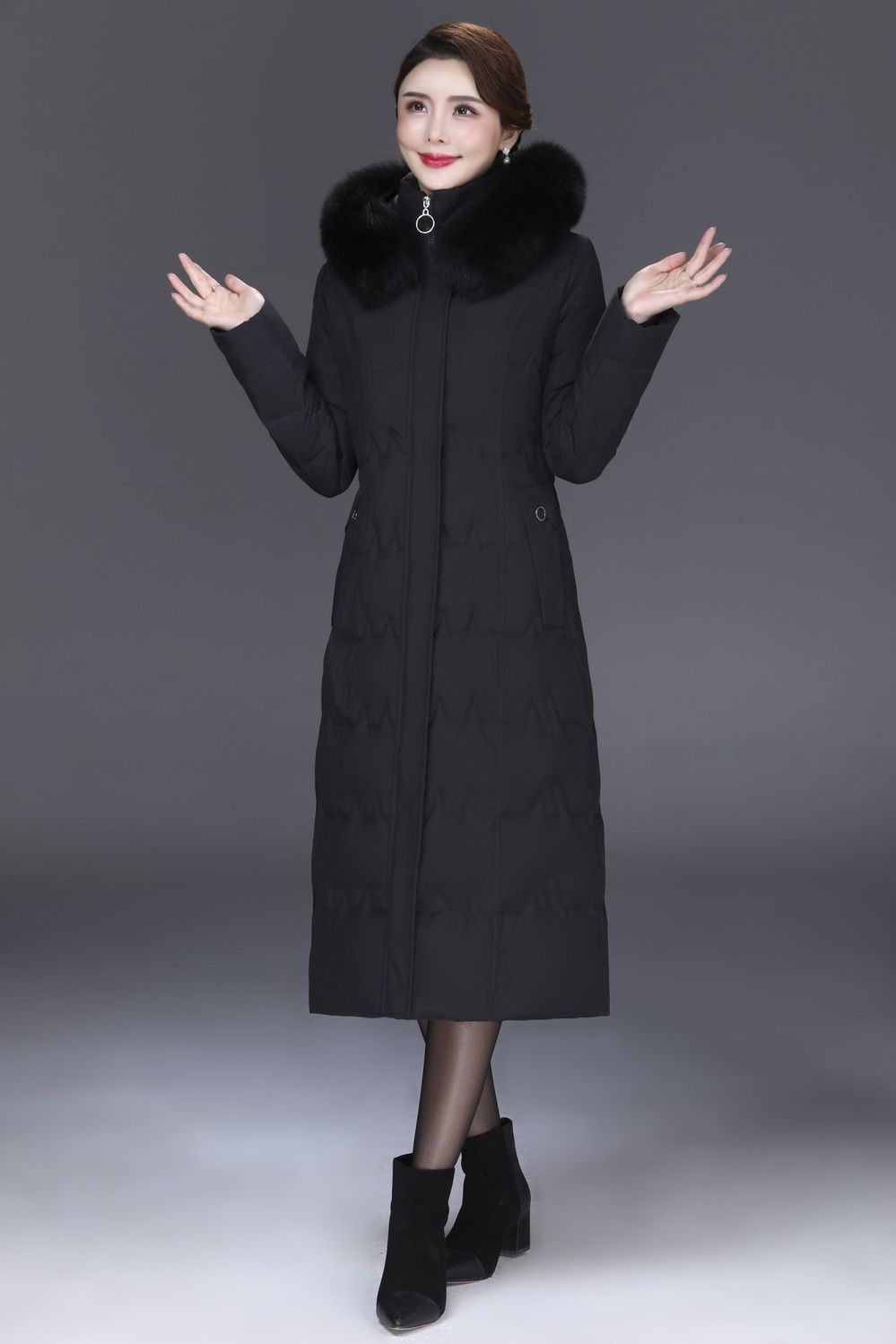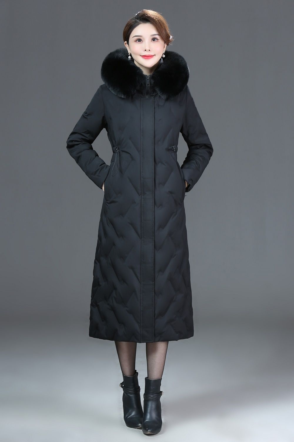 DD-景飒岚特专柜大毛领加厚加长款加肥加大码羽绒服