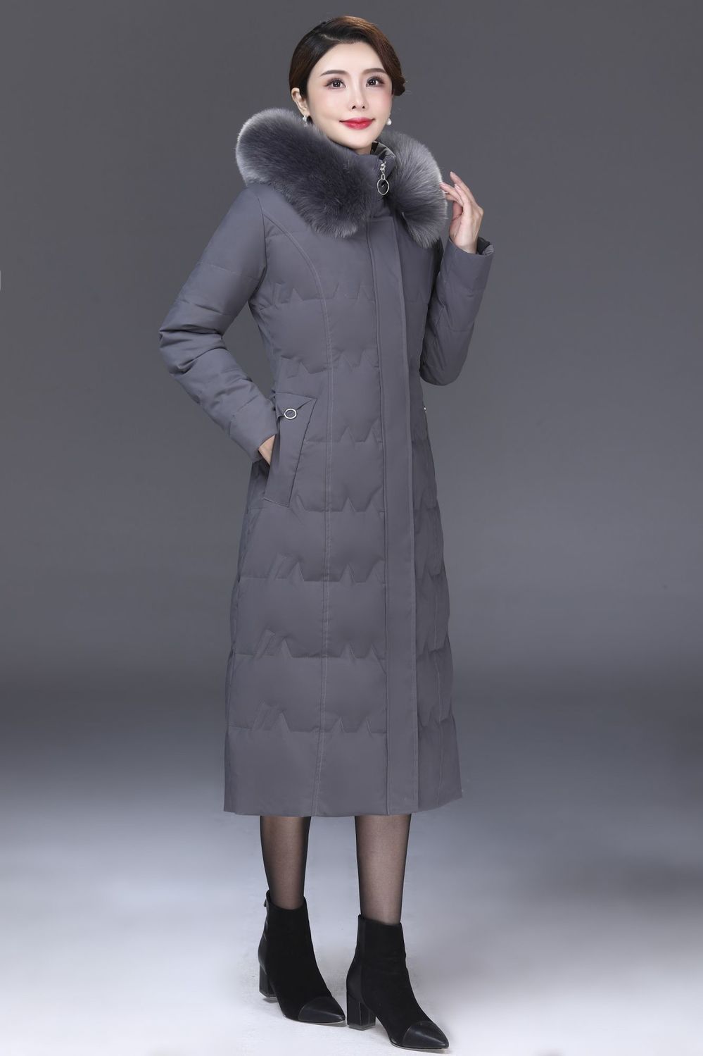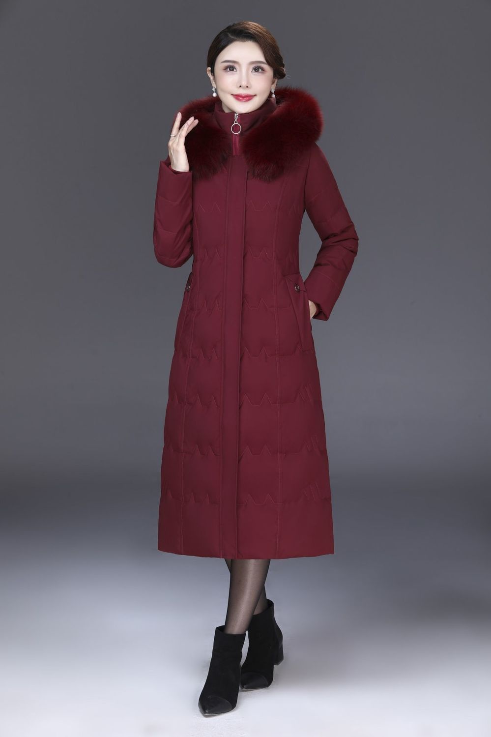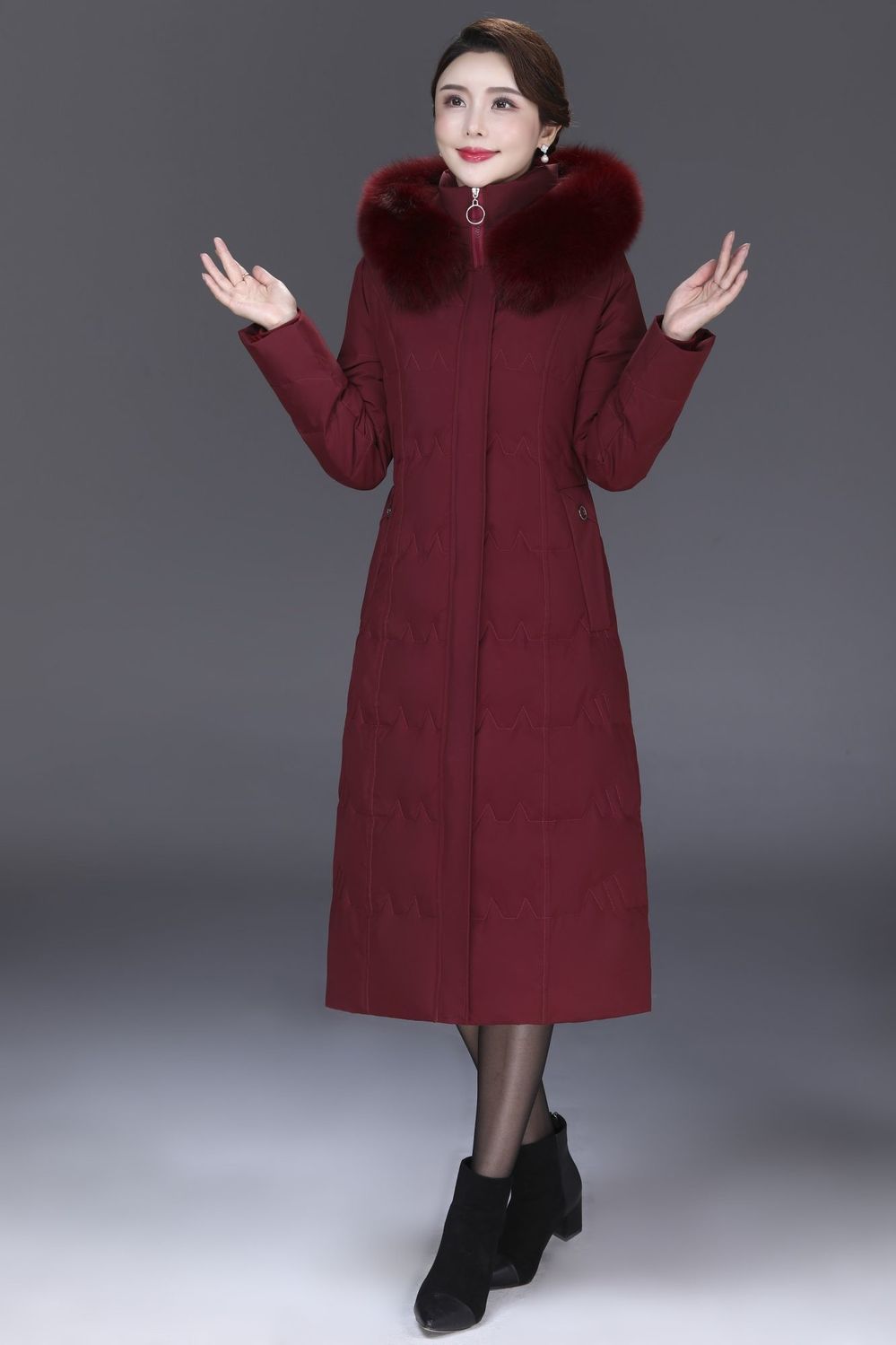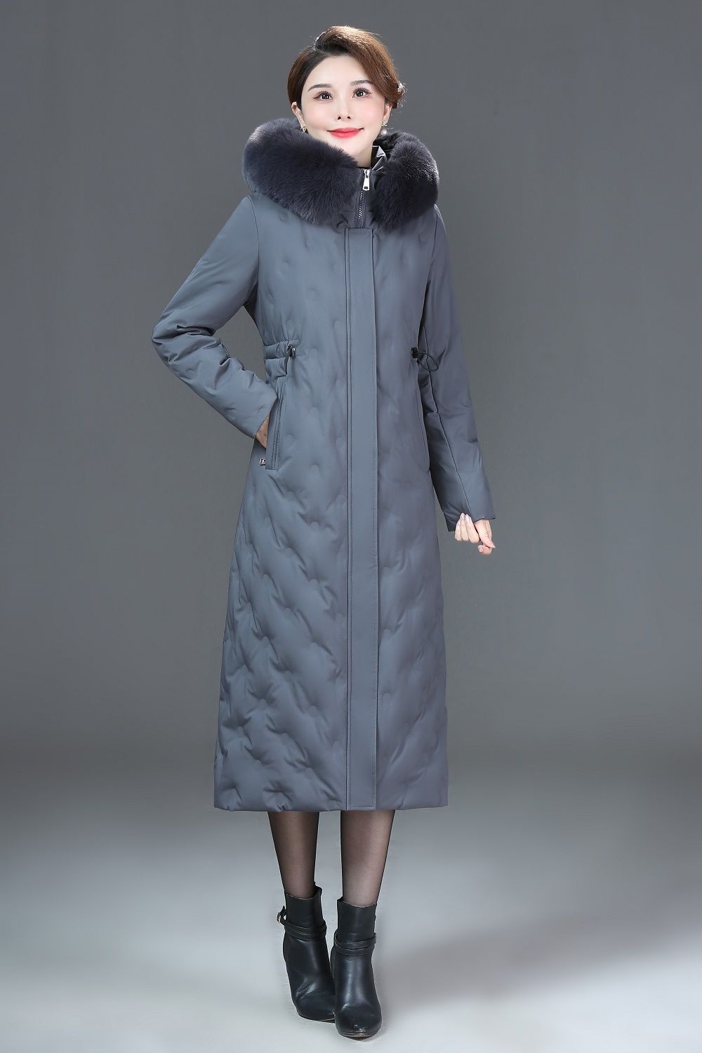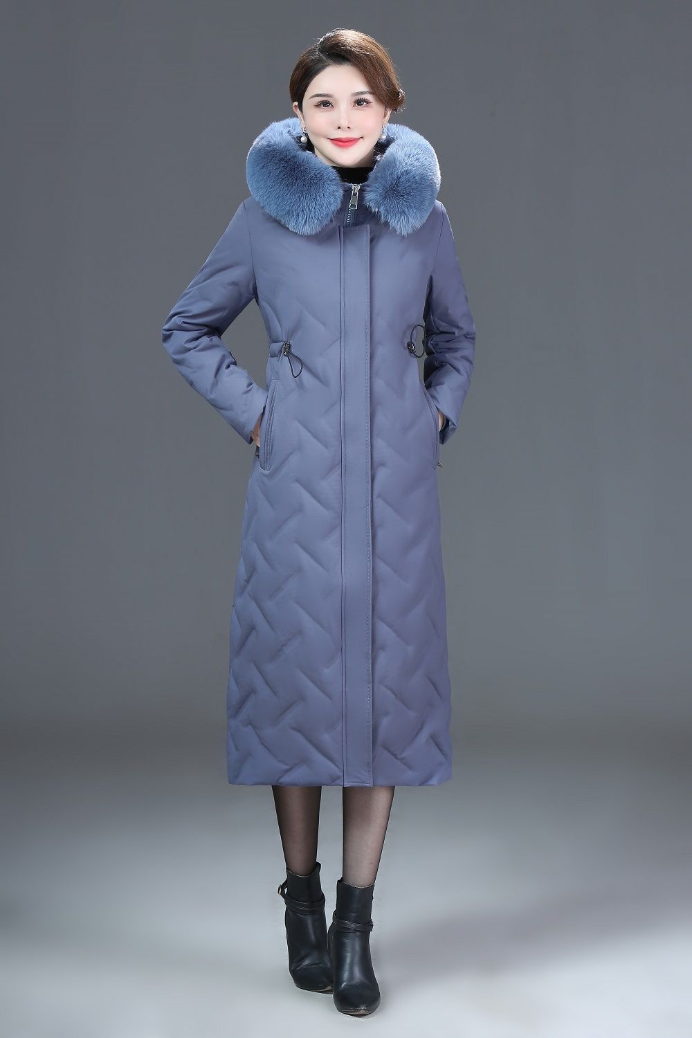 DD-景飒岚特专柜大毛领加厚加长款加肥加大码羽绒服