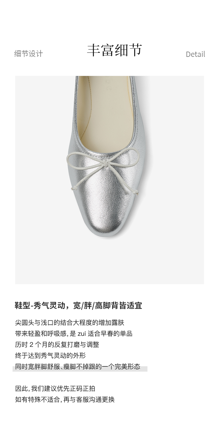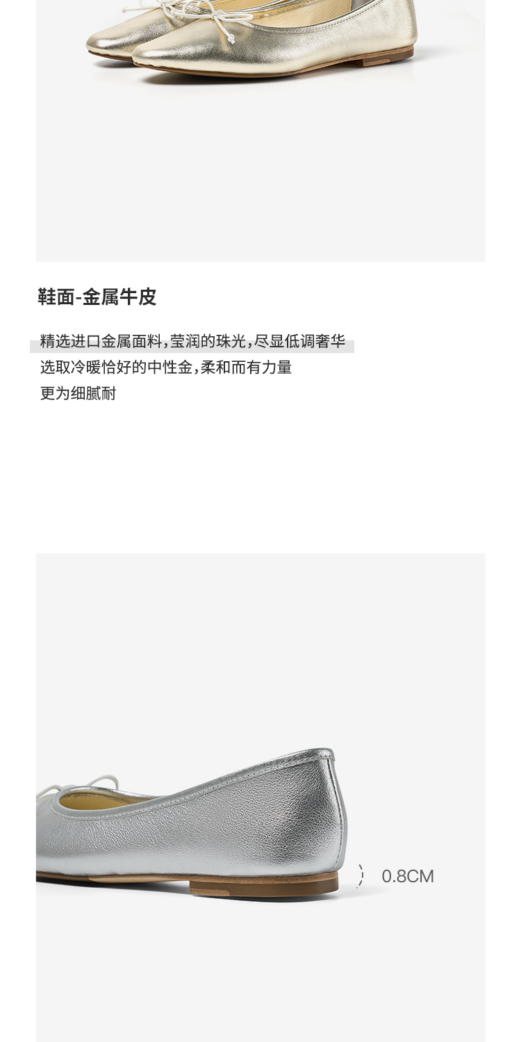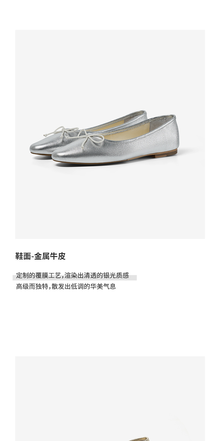 FAYTOBE 金属亮面芭蕾鞋春日牛皮尖圆头手工鞋复古浅口单鞋时髦平底