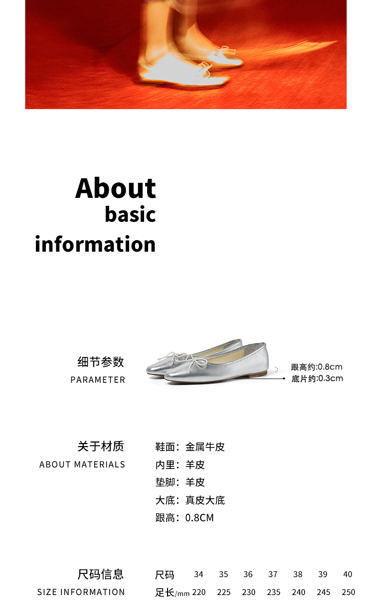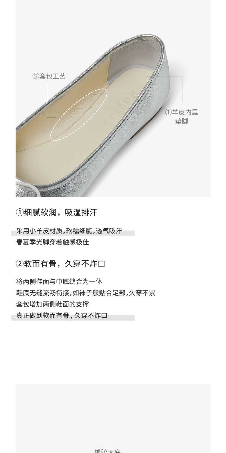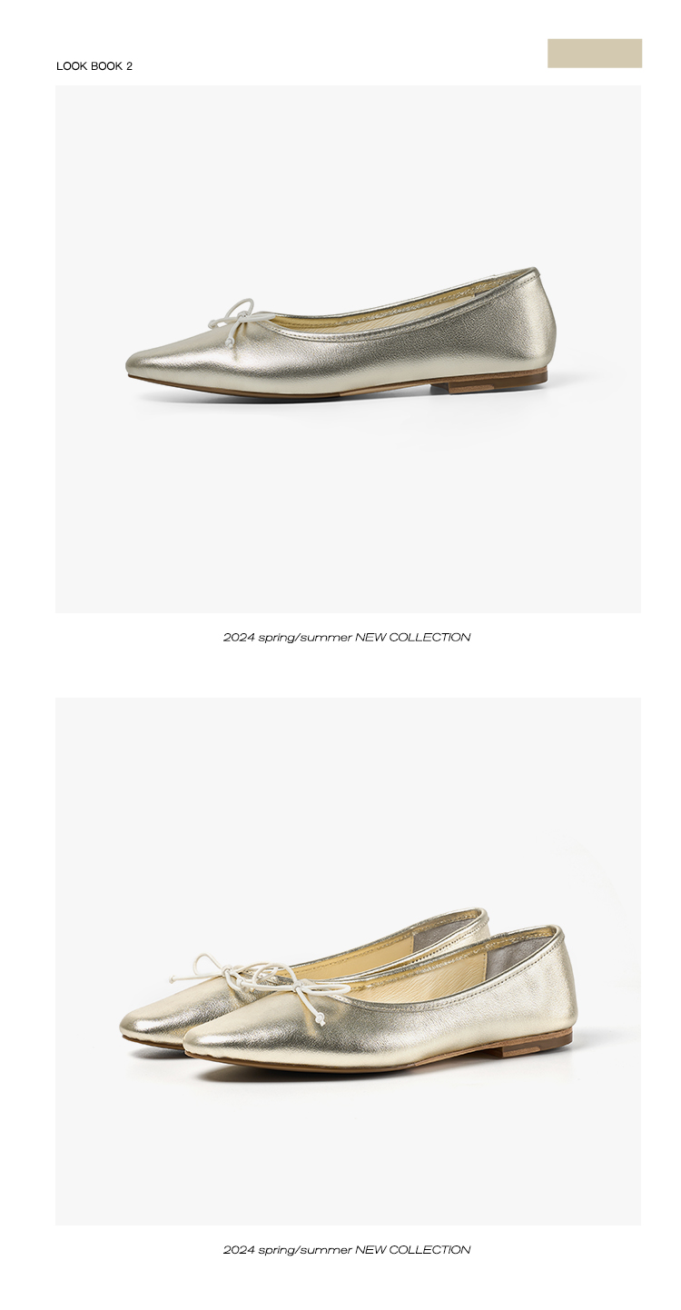 FAYTOBE 金属亮面芭蕾鞋春日牛皮尖圆头手工鞋复古浅口单鞋时髦平底
