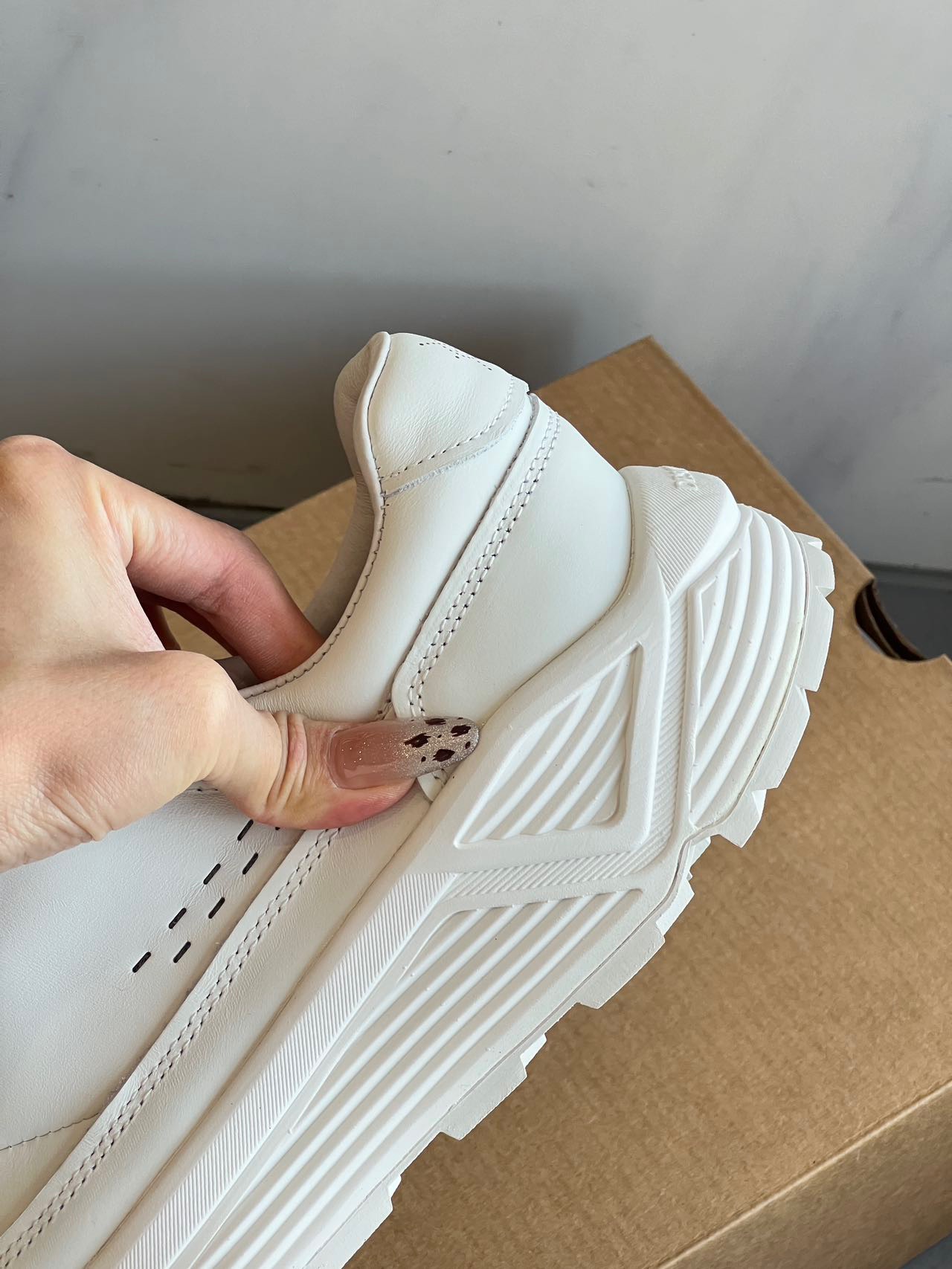 鞋身是哑光牛皮皮质,皮面的质地和光泽感都不错